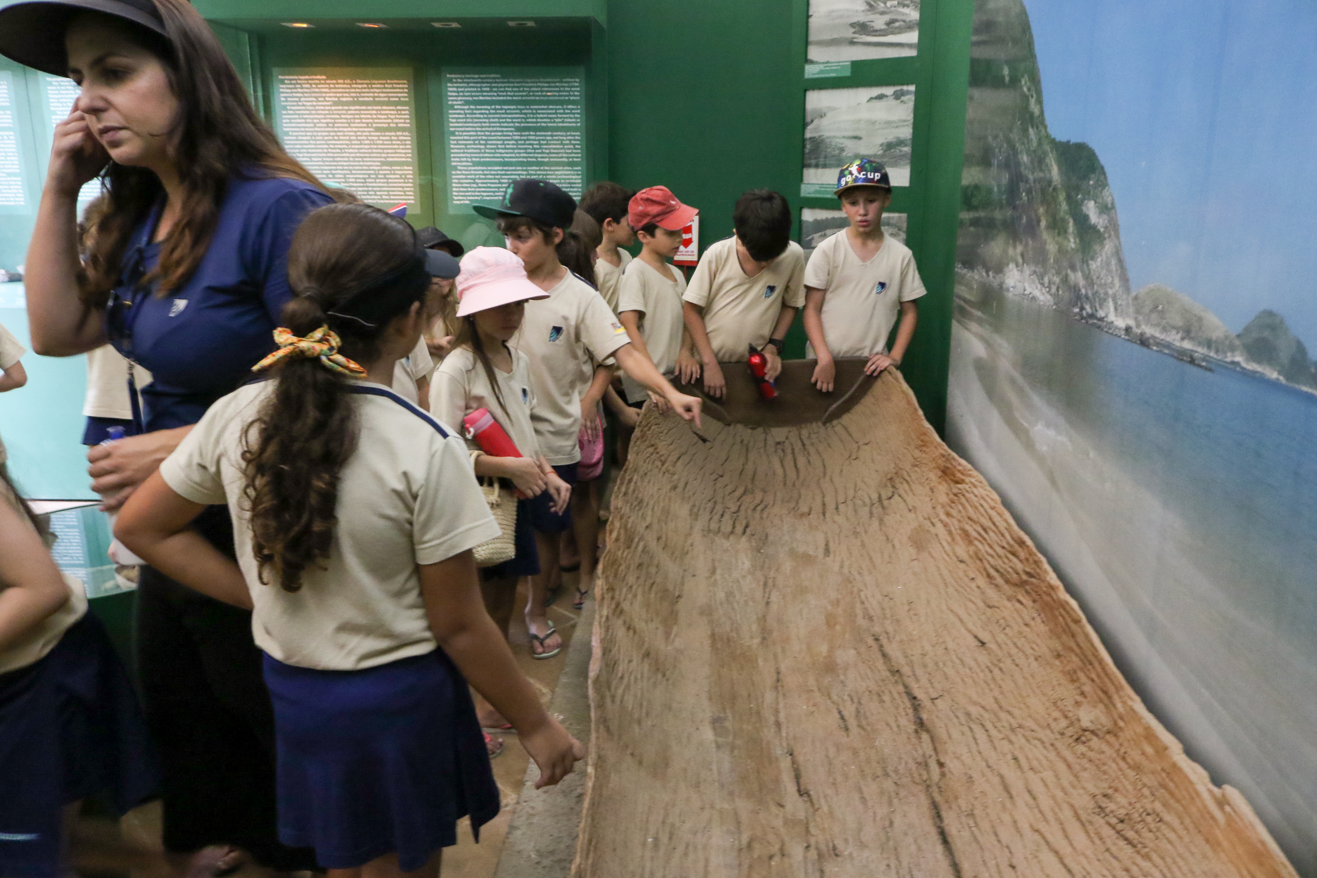 Na visita, os alunos tiveram uma grata surpresa: a praia estava limpa e conservada! Eles puderam conhecer o trabalho dos pescadores da região e visitar o Museu Arqueológico, que fica no local, descobrindo mais sobre a história da região e dos sambaquis, primeiros moradores da praia.