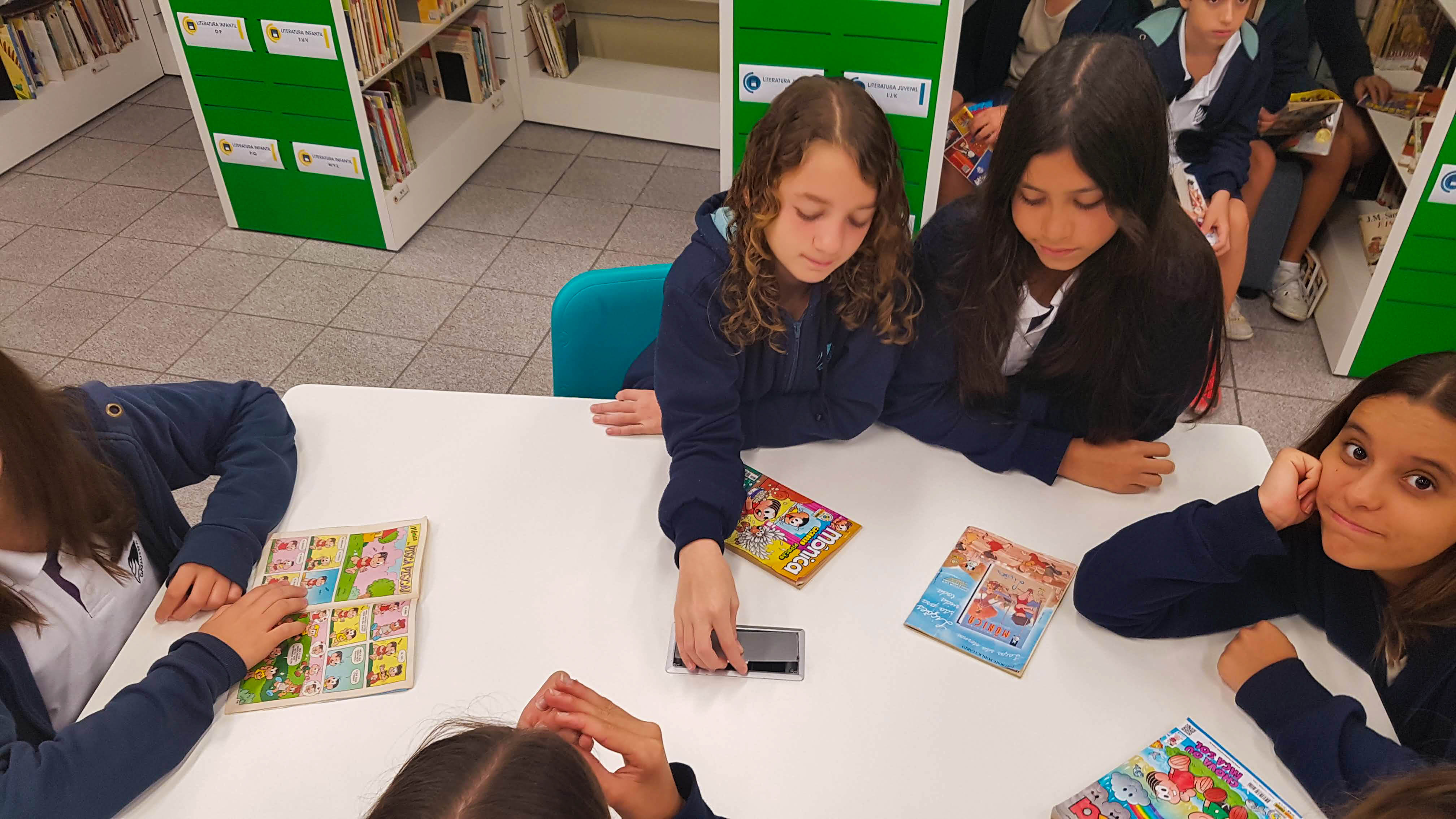 No ensino de Artes, as onomatopeias entraram em ação. Cores, formas geométricas e letras garrafais era ilustradas nas construções da Pop Art em críticas sobre o consumo exacerbado. Além da montagem das histórias e das onomatopeias, os alunos participaram de um troca-troca de HQs. Na biblioteca, junto aos professores Gustavo Abreu e Glaucia Mourão, as histórias que marcaram os alunos na infância foram trocadas com os colegas para que eles também pudessem viajar pelas páginas.