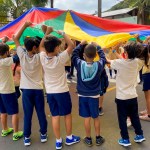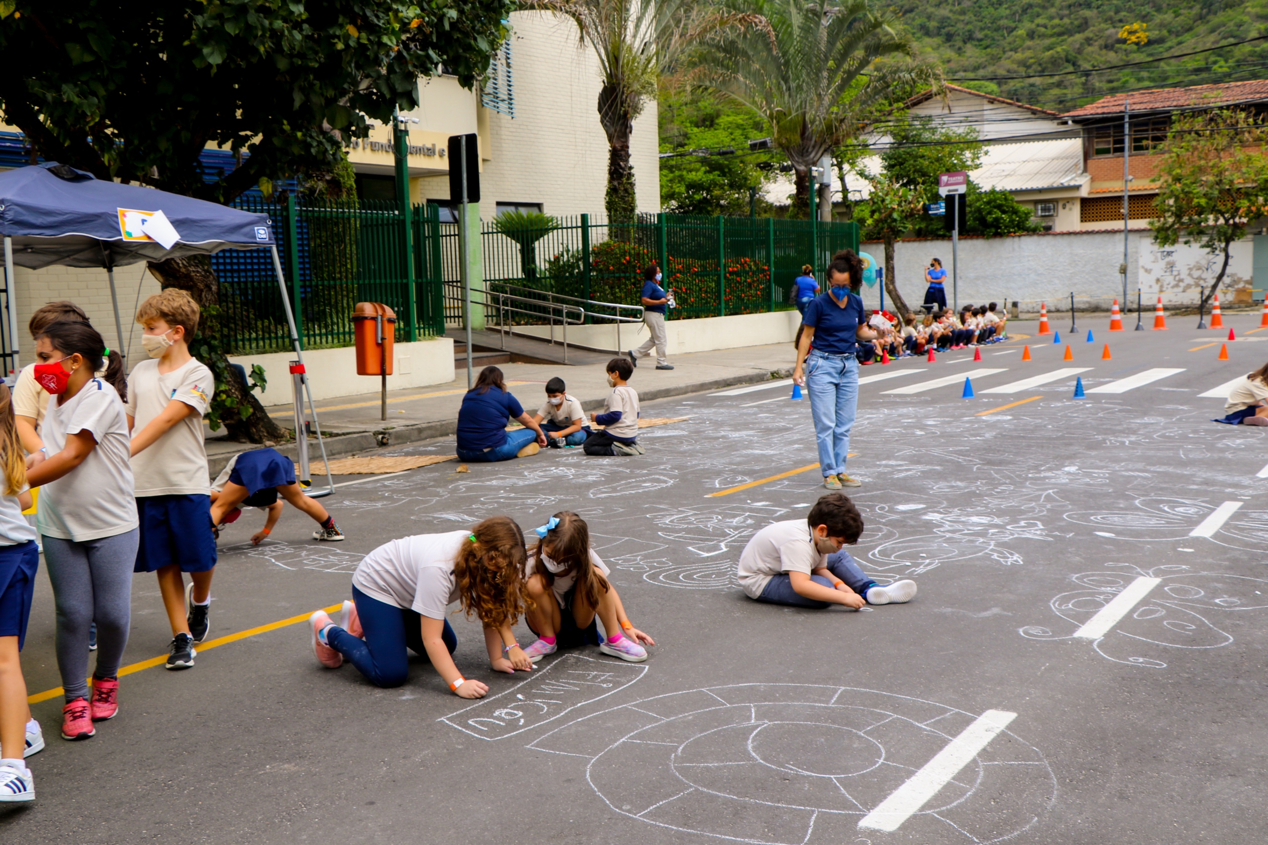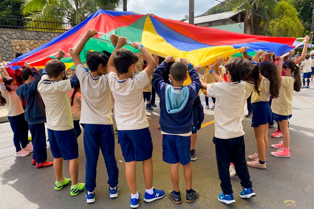 “A ideia era trazer brincadeiras antigas e levar as crianças para a rua, proporcionando momentos que ficarão na memória afetiva em longa duração, criando um vínculo com a escola. A atividade envolveu os professores regentes, de Música e de Educação Física”, Fernanda Benevento, coordenadora