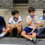 E as crianças se refrescaram e recuperaram as energias com picolés após a brincadeira!