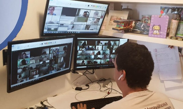 Foram dezenas de ações, desde a criação de 110 salas virtuais para uma interação verdadeira e ao vivo, o treinamento de mais de 150 professores na plataforma Zoom, suporte técnico diário para professores e famílias, até a gravação de mais de 13 mil horas de aulas e reuniões.