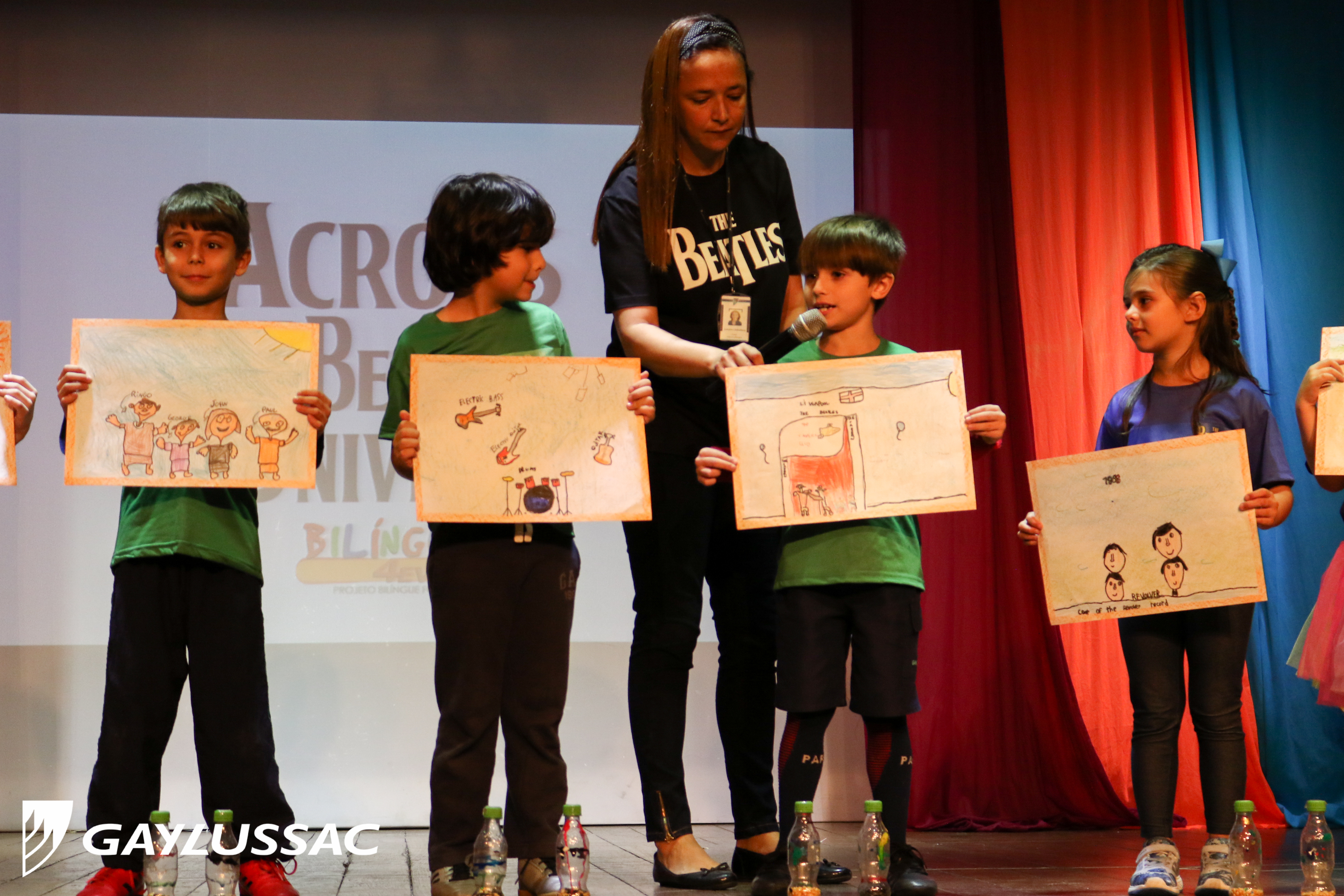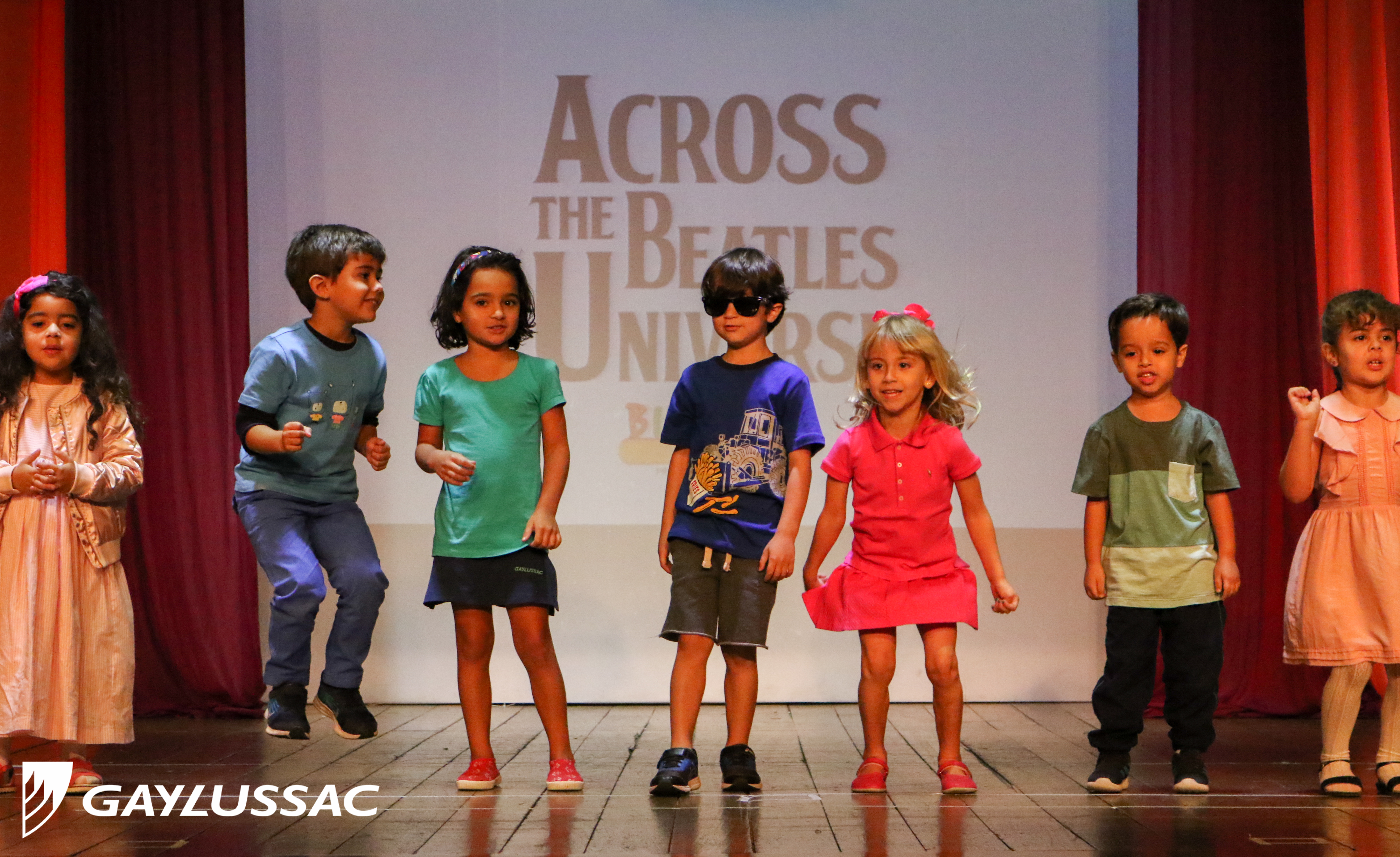 Em setembro, o teatro da escola estava lotado de pais, avós e irmãos ansiosos para ver as turmas do Projeto Bilíngue em ação. A entrada ambientada com produções dos alunos e a vitrola em tocando Here Comes the Sun relembrava os clássicos da banda de rock mais marcante de todos os tempos: The Beatles! A história dos meninos de Liverpool, o estilo e as coreografias das décadas de 60 e 70, fizeram parte da Across the Beatles’ Universe, Spring Presentation desse ano, que celebrou a jornada de aprendizagem dos alunos ao longo dos últimos meses.