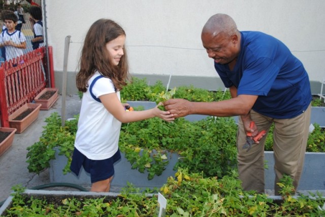 Mas sua maior realização na escola foi atuar no Projeto Mãos à Horta. Era ali que se doava por inteiro… No meio das crianças! Foi ele o responsável em nos ajudar nas inúmeras plantações que fizemos. Pacientemente, com todo cuidado, carinho e atenção, segurava a mãozinha de cada aluno e juntos plantavam as sementes. Nunca fez nenhum curso específico, mas sua curiosidade nata e vontade de aprender sempre estiveram presentes.