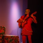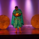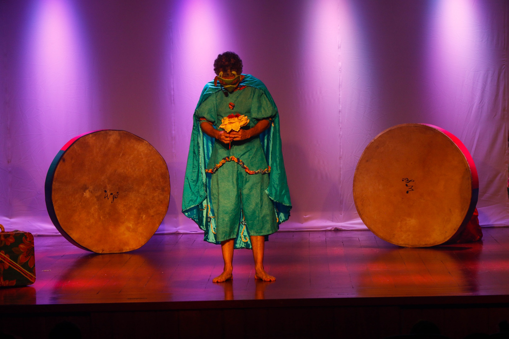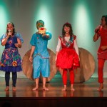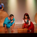A atriz Helena explica: “O texto da peça é da dramaturga Silvana Lima e que traz duas questões importantes: a preservação ambiental com a figura do Tadeu, que colhe apenas uma flor e se compromete a semear as outras; e o resgate da cultura do centro-oeste inspirada na história de Romeu e Julieta. Os alunos amaram e ganharam, no final, uma florzinha feita de papel crepom”.