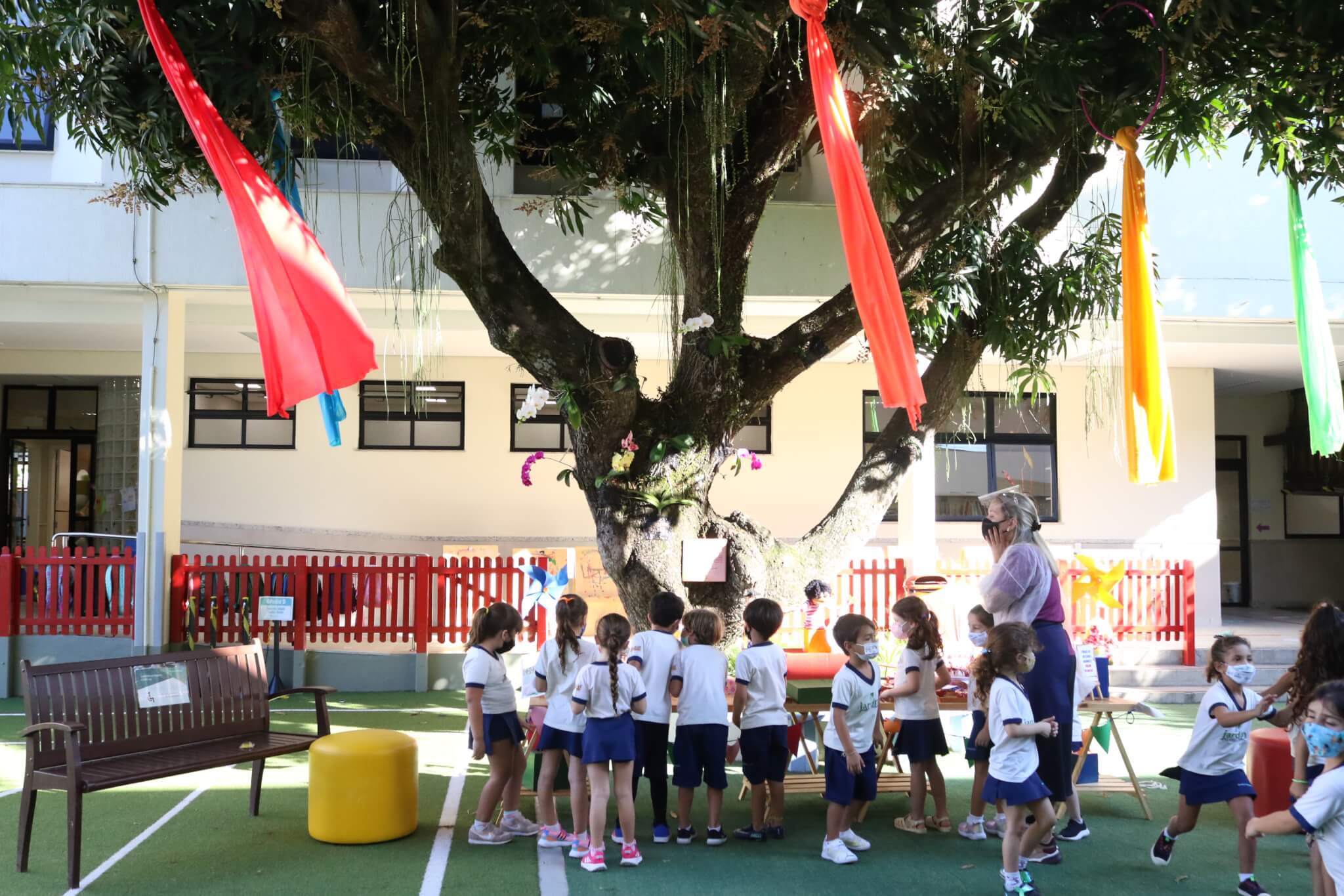 Sob a sombra da mangueira, os pequenos do GayLussac Jardim foram recebidos com a doce voz da professora Milena Mata, além dos malabares de Bolinha e Danilo Scremin e das gigantes bolas de sabão de Gabriela Veloso. A cantoria dos “parabéns pra você” ao ar livre ainda contou com brincadeiras temáticas que se remetiam às cantigas de roda e ciranda, uma celebração à infância de ontem e de hoje.