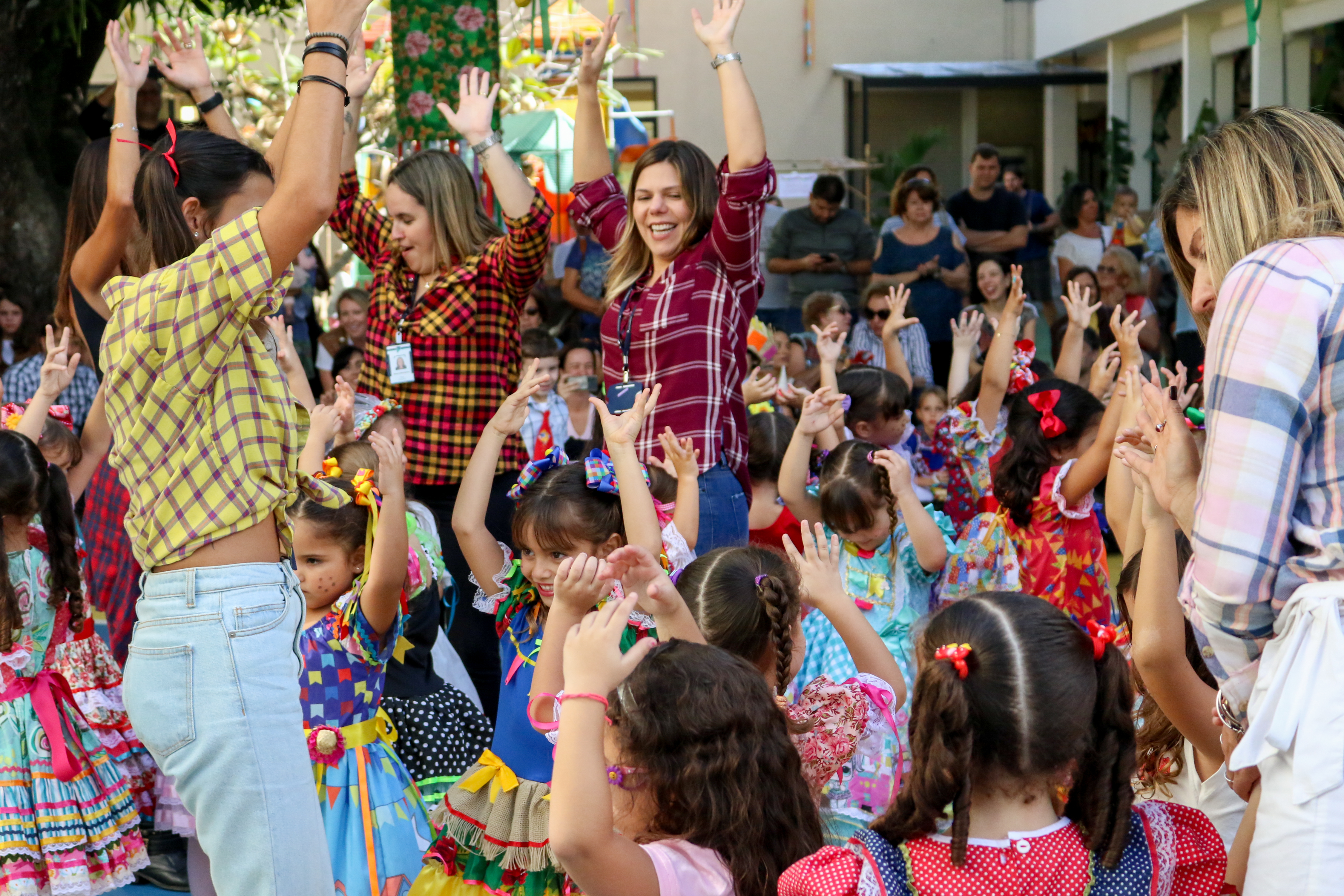 A professora Gabriela Pinto, da J3T3, explica: “Eventos em que a escola abre as portas para a família são sempre importantes, porque reforça a parceria entre família e escola que é essencial para o desenvolvimento das crianças. A Dancinha Junina tem o cunho folclórico de trazer uma festa típica brasileira para as crianças, de maneira que elas se envolvam em todo o processo de construção do evento, tornando tudo ainda mais saboroso”