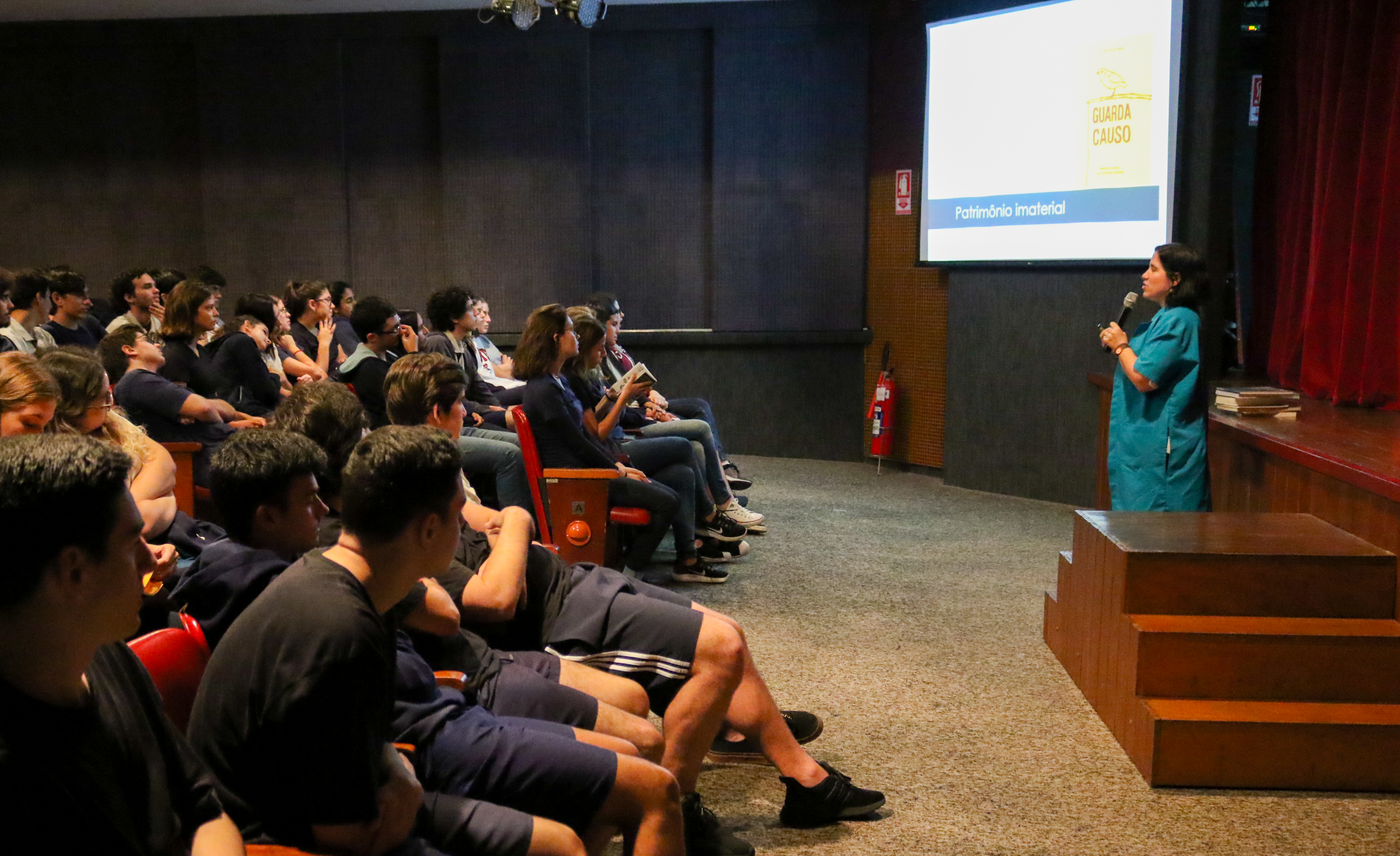 “Vocês, brancos, não tem alma”, foi o tema da palestra ministrada pela professora de Produção Textual, Nathalie Vlcek, que apresentou aos alunos do Ensino Médio a desmistificação de estereótipos aplicados aos povos indígenas, no Ano Internacional das Línguas Indígenas. Na palestra, a professora apresentou parte de sua tese de doutorado com as experiências vivenciadas nas tribos em que pesquisou e também vídeos e mapeamentos das línguas pelo Brasil, que chegou a ter mais de 200 idiomas. A professora explica: “Mostramos aqui que não escutamos com o ouvido, escutamos colocando o universo em nossas categorias. Comemorar as línguas indígenas envolve solidariedade e salvaguarda, pois saber ver o outro é imaginar que estamos sempre abertos para aprender com ele e ver algo de diferente ali”.