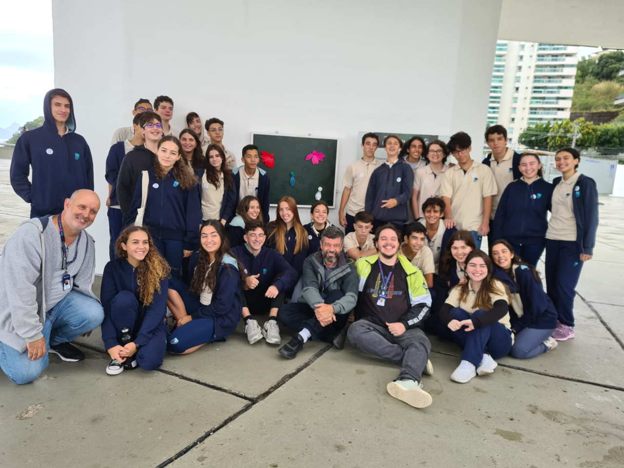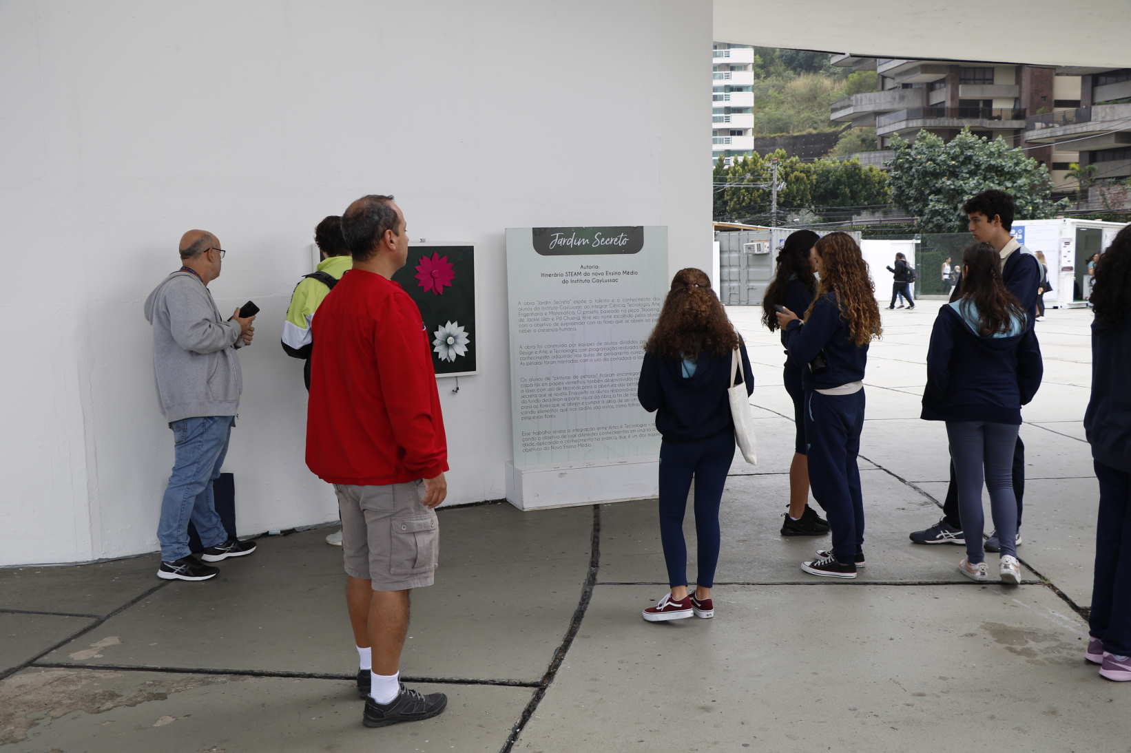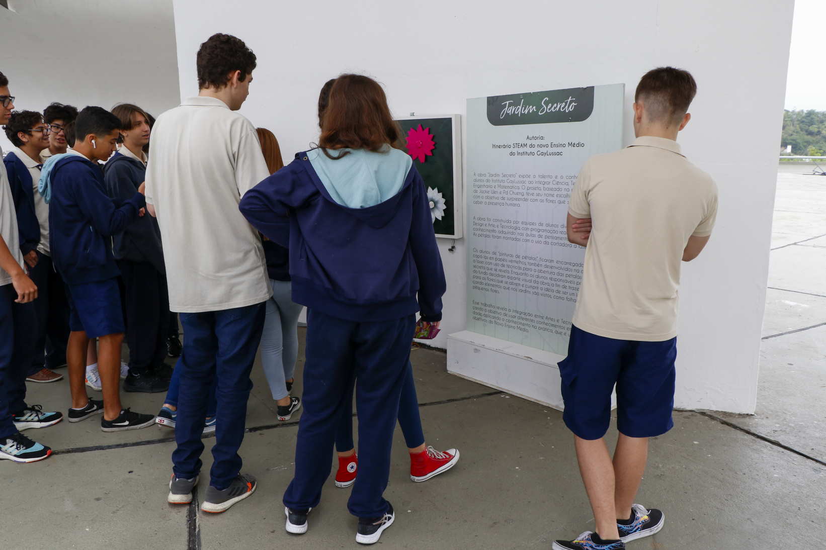 No pátio do Museu nossos alunos do Itinerário Steam do Novo Ensino Médio foram autores da obra “Jardim Secreto” que juntou conhecimentos de Matemática, Engenharia e Arte para apresentar ao visitante flores multicoloridas que se abrem ao “sentir” a presença humana. Uma verdadeira mostra da interação entre Arte e Tecnologia possível com o pensamento Steam.