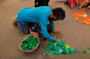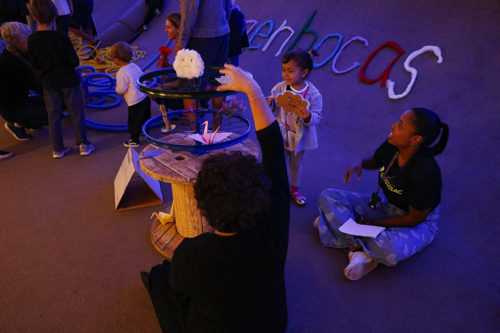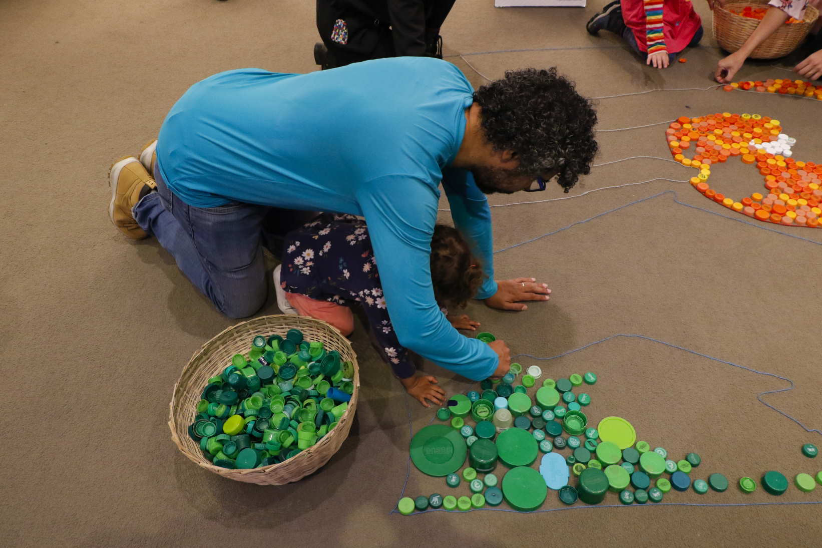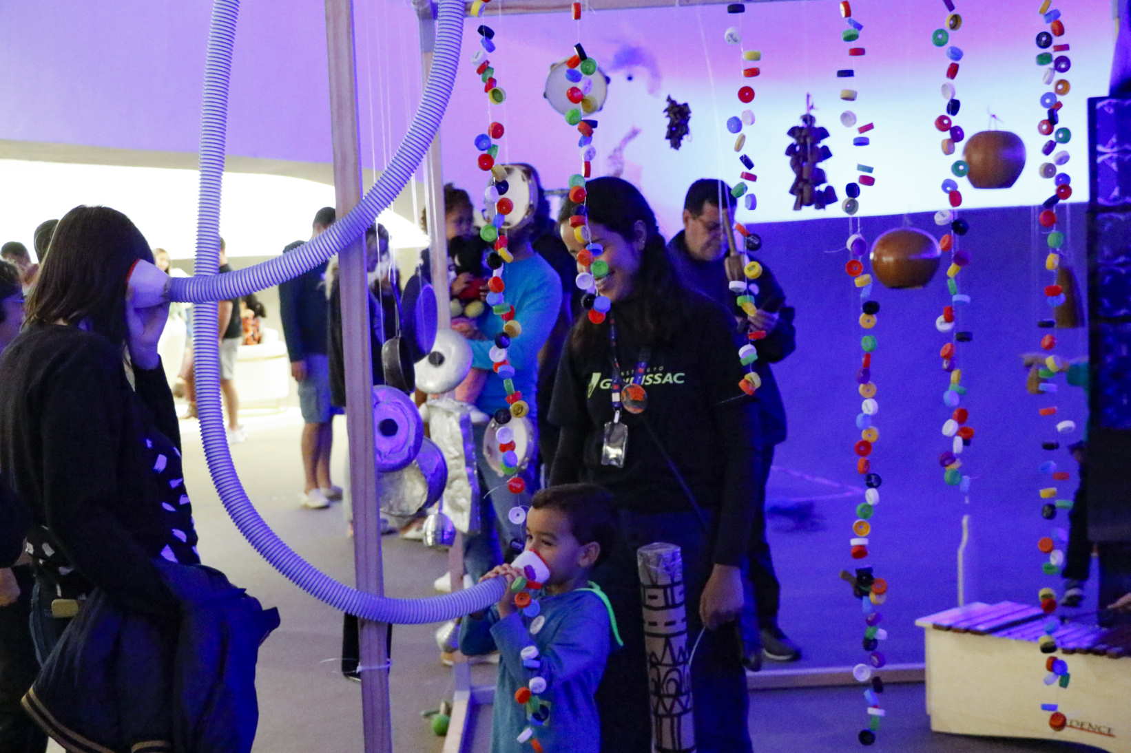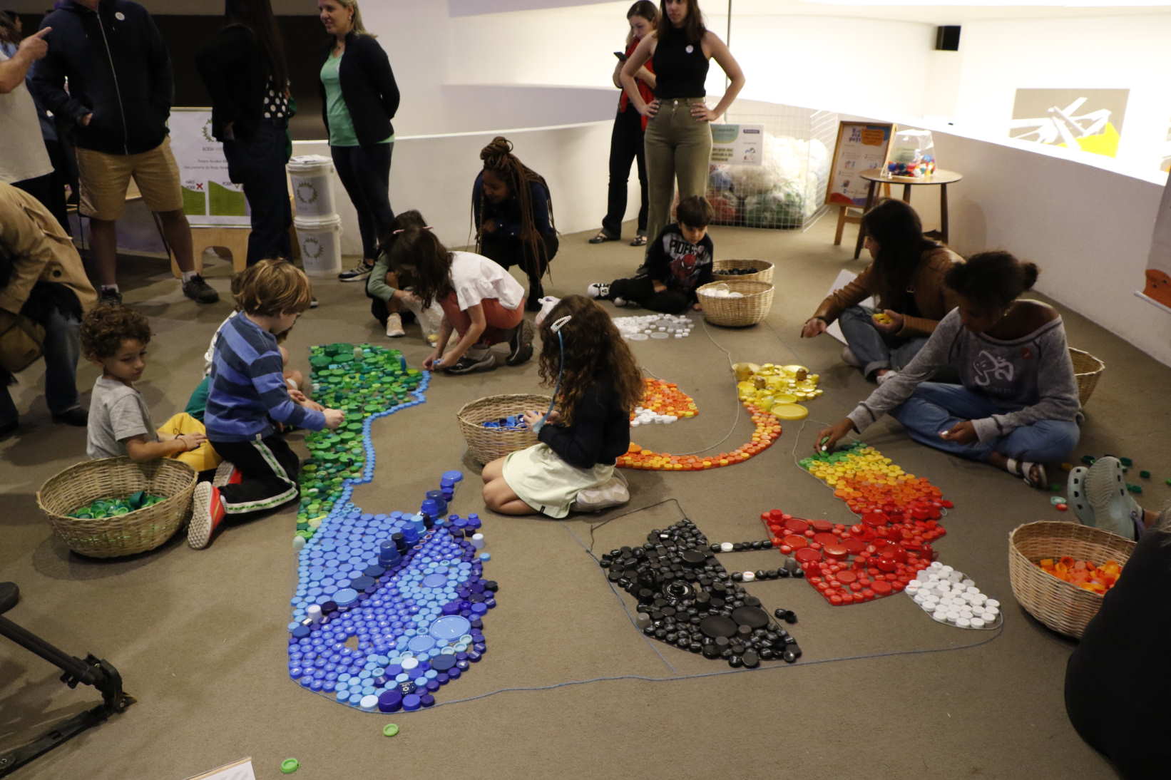 O mezanino do museu foi ocupado com atividades sensoriais, onde nossos visitantes puderam experimentar um comunicador de tentáculos, wind-tube – um sucesso entre as crianças –, o cubo sonoro, contação de histórias e a instalação de tampinhas, estimulando o trabalho coletivo. Nossos parceiros, Rio Eco Pets e Roda Verde Compostagem, também estiveram presentes.