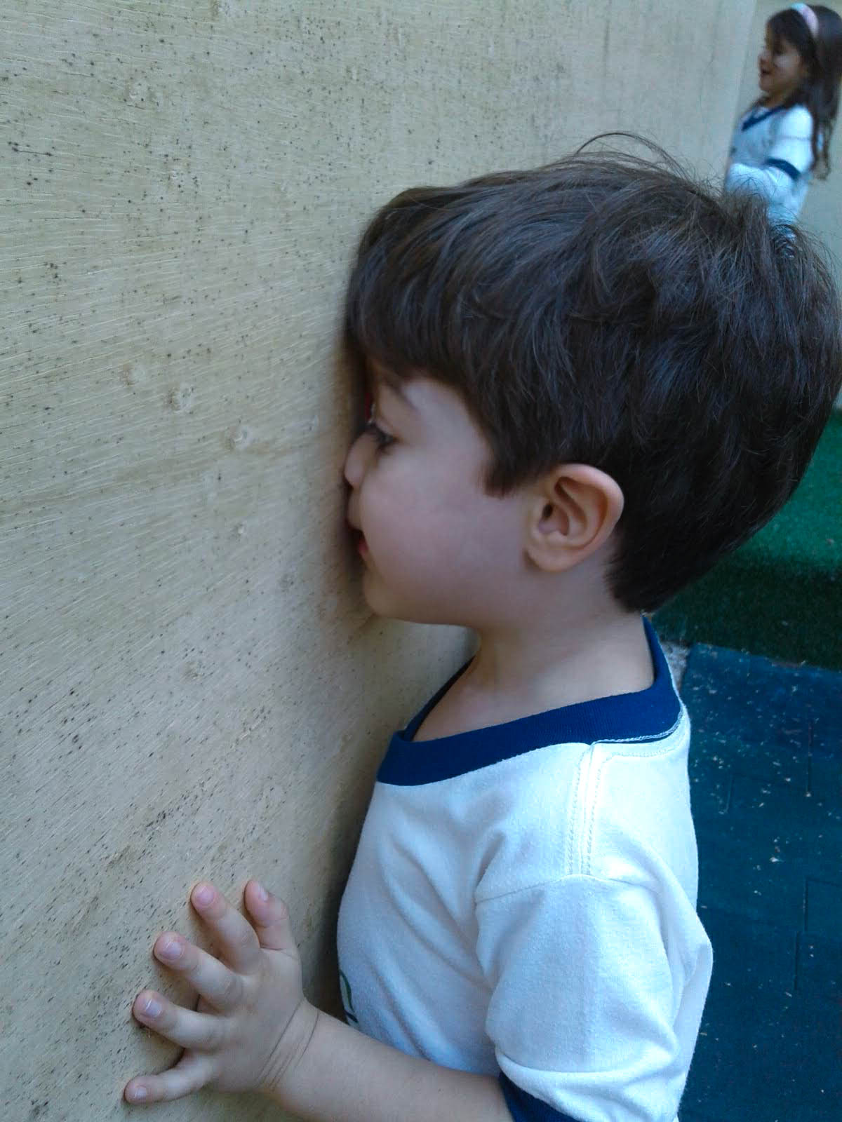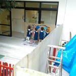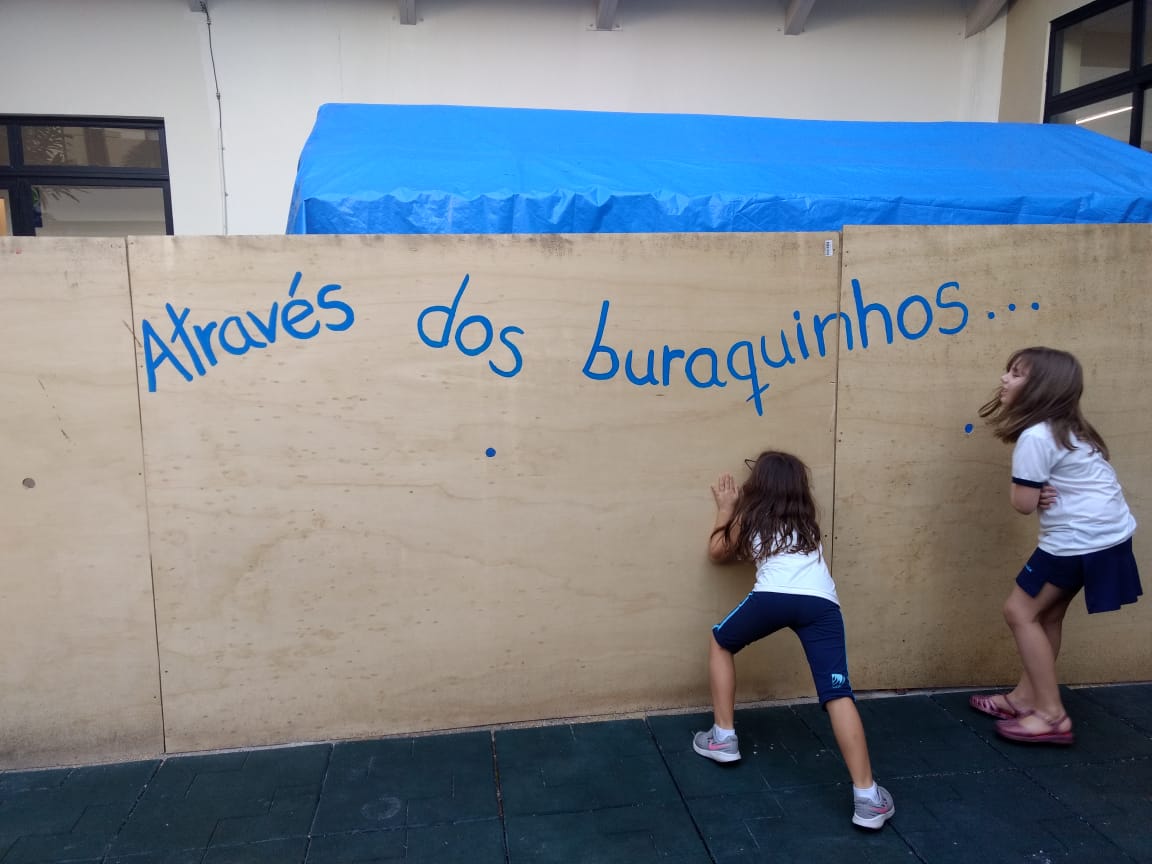 Furinhos no tapume instigam curiosidade no olhar dos alunos da Educação Infantil. No retorno das férias escolares, a surpresa: a Casa de Bonecas estava em obra. Perguntas e hipóteses começaram a serem feitas a respeito de como a Casa ficaria. As professoras, atentas ao processo de escuta das crianças, buscaram traçar o desenvolvimento dos estudos e pesquisas: olhe mais para cima, para baixo, os cantos e os lados!