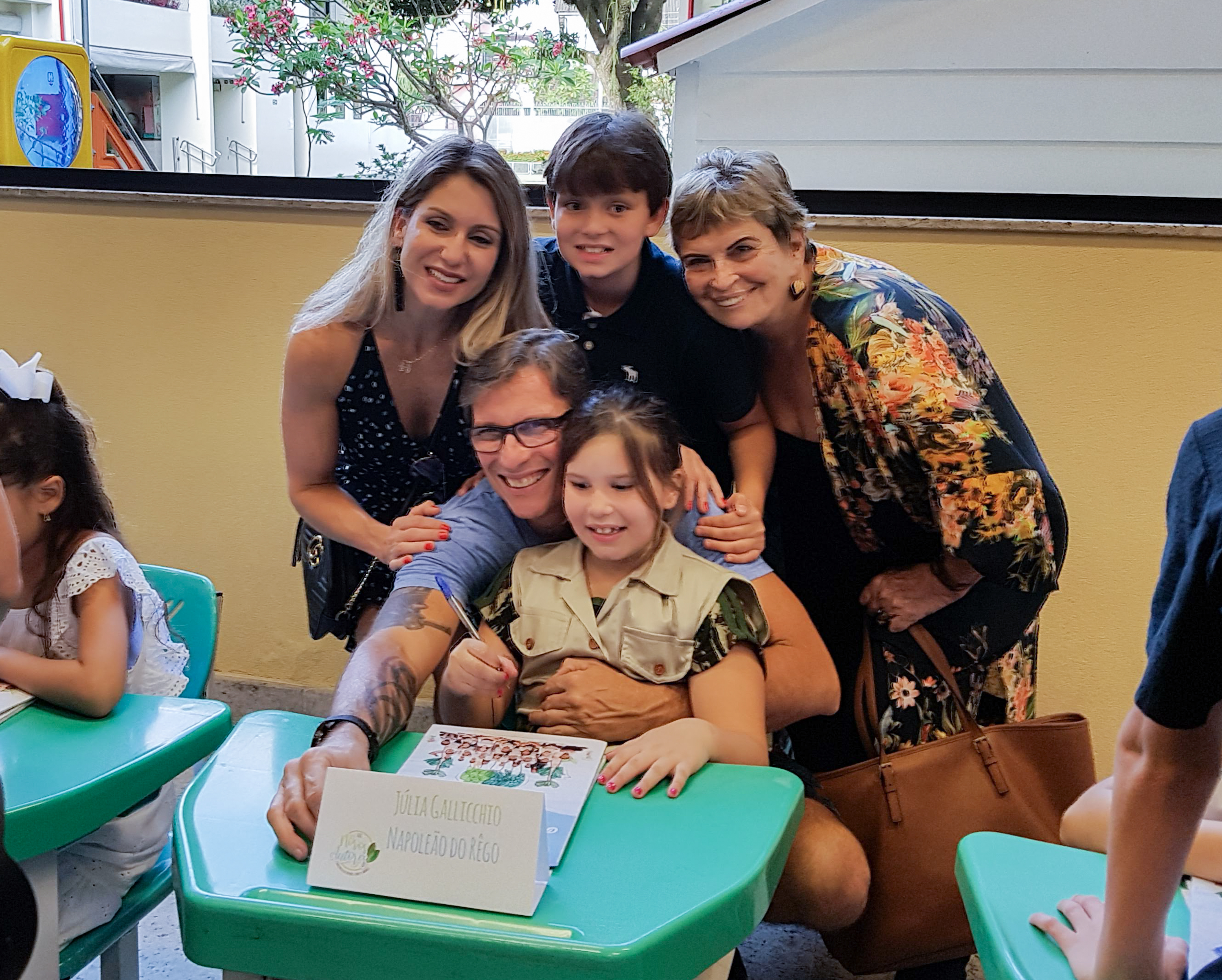 Após as apresentações, o lançamento: o 1º ano do Ensino Fundamental se torna autor de sua 1ª obra escrita, “Nós, os autores”. A professora Vanessa Trece explica: “O Clube de Pesquisa os ajudou nos primeiros passos da construção do livro. A ampliação do vocabulário e a criação de frases, proporcionada pelas pesquisas estimulava-os a conhecerem mais assuntos para criarem as suas histórias. No fim, todas essas vivências auxiliam no processo de letramento e alfabetização deles”
