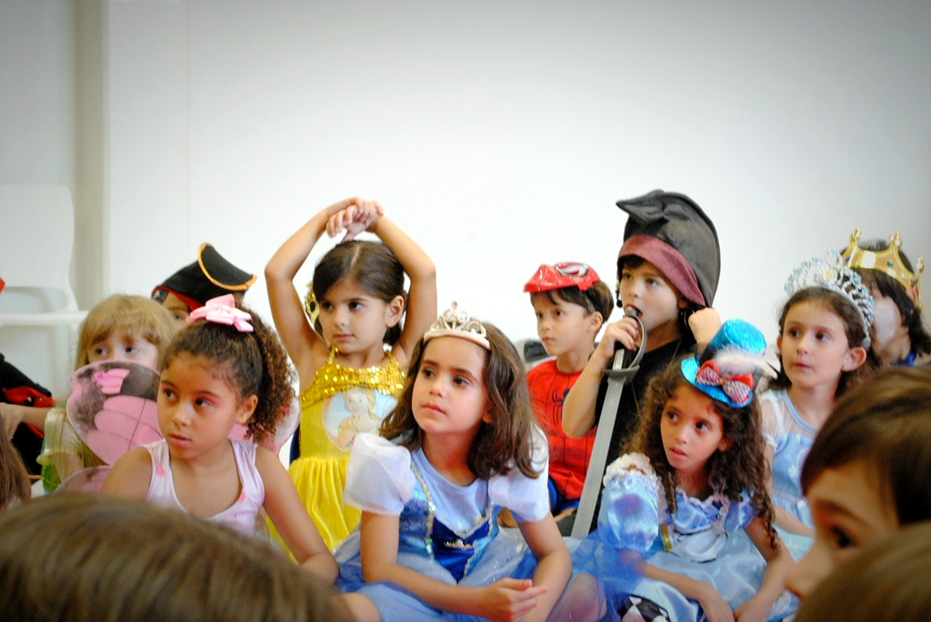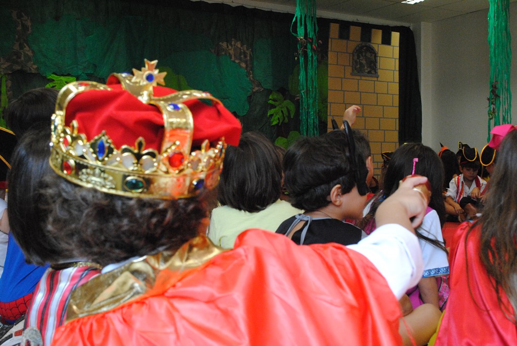 As turmas do 1º ano do Ensino Fundamental preencheram o salão de eventos do prédio do Jardim com muita emoção, encantamento e aprendizado. Vestidos com belos trajes e representando seus personagens favoritos, os nossos marujos, fadas, princesas e reis foram convidados a prestigiar a peça Rapunzel, interpretada pelos professores, e a comparecerem ao Baile Real dado pela Princesa de cabelos compridos, no Mágico Mundo dos Contos.