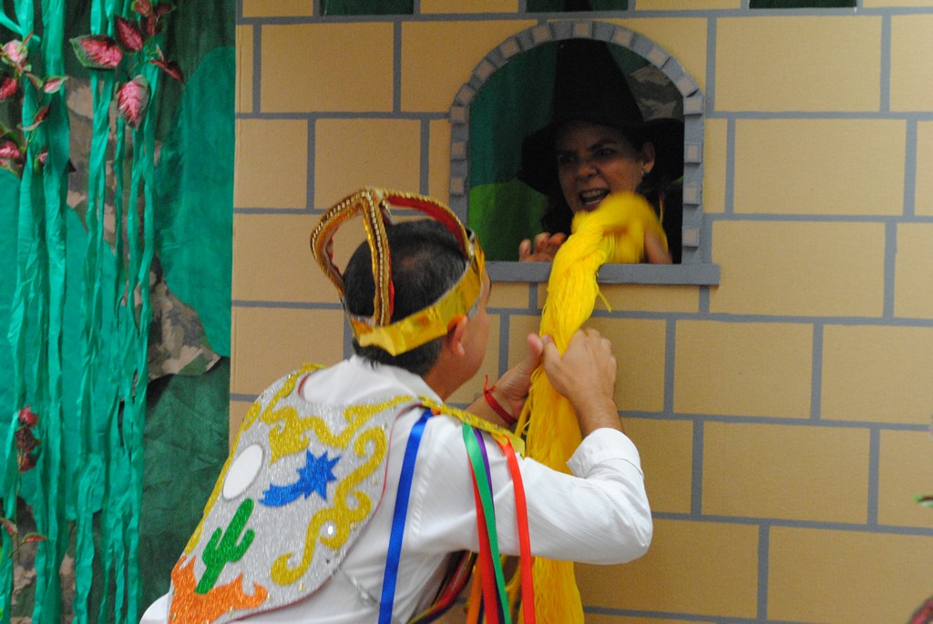 A professora Verônica Salasck, da turma 1T2, conta que o objetivo da atividade é mergulhar os alunos no“mundo das palavras” de maneira lúdica, pegando, nas histórias infantis, as palavras-chave que os acompanharão no início desse aprendizado: “A Rapunzel, o Gato de Botas, o Lobo e a Casa são palavras-chave que ajudam no letramento e a ingressar de forma divertida no Livro de Português. Eles ficam motivados e embarcam mesmo na fantasia”.