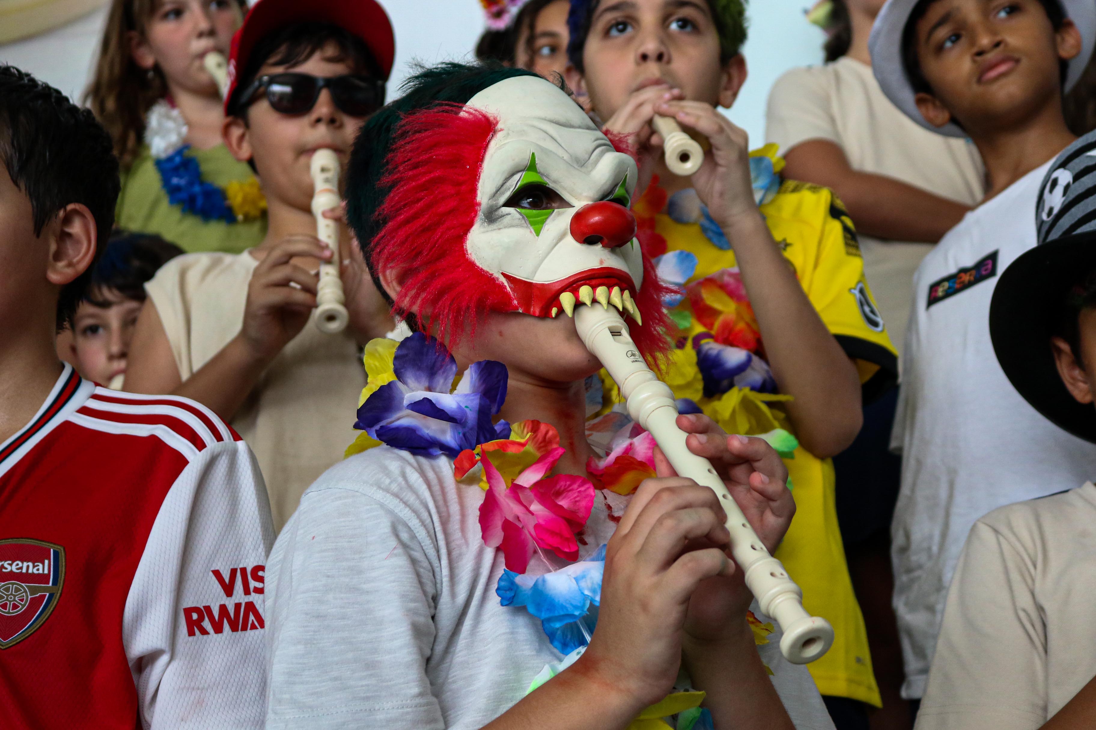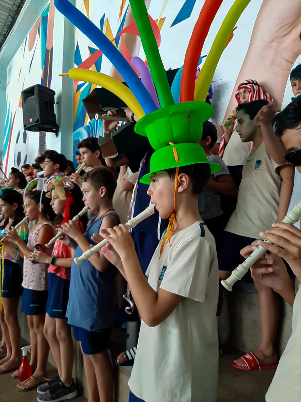 A interdisciplinaridade do evento alia diversas áreas do conhecimento e cada aula agrega um pouco ao projeto. A produção dos estandartes que embelezaram o bloquinho ficou por conta dos próprios alunos, sob a orientação da professora de artes, Bárbara Malaquias. “A arte é toda deles. Cada um fez a sua interpretação, com seu jeitinho. Os traços são bem diferentes. E, então, cada ano carrega seu estandarte durante o bloco” conta.