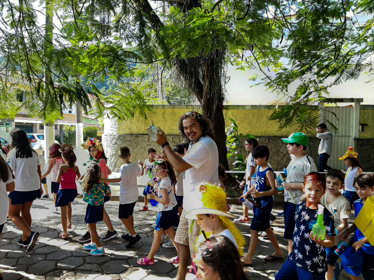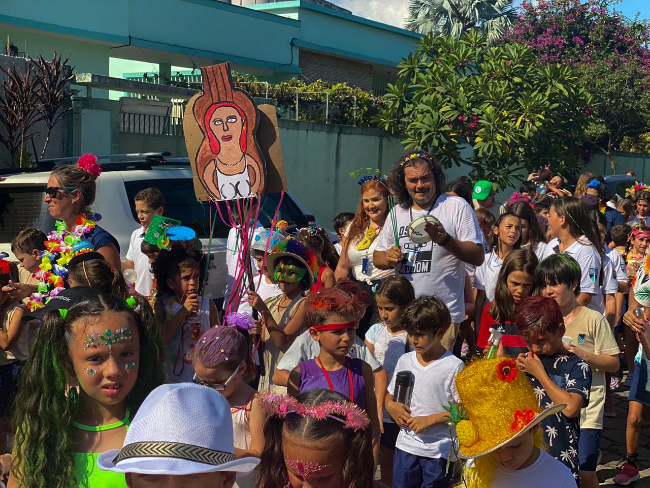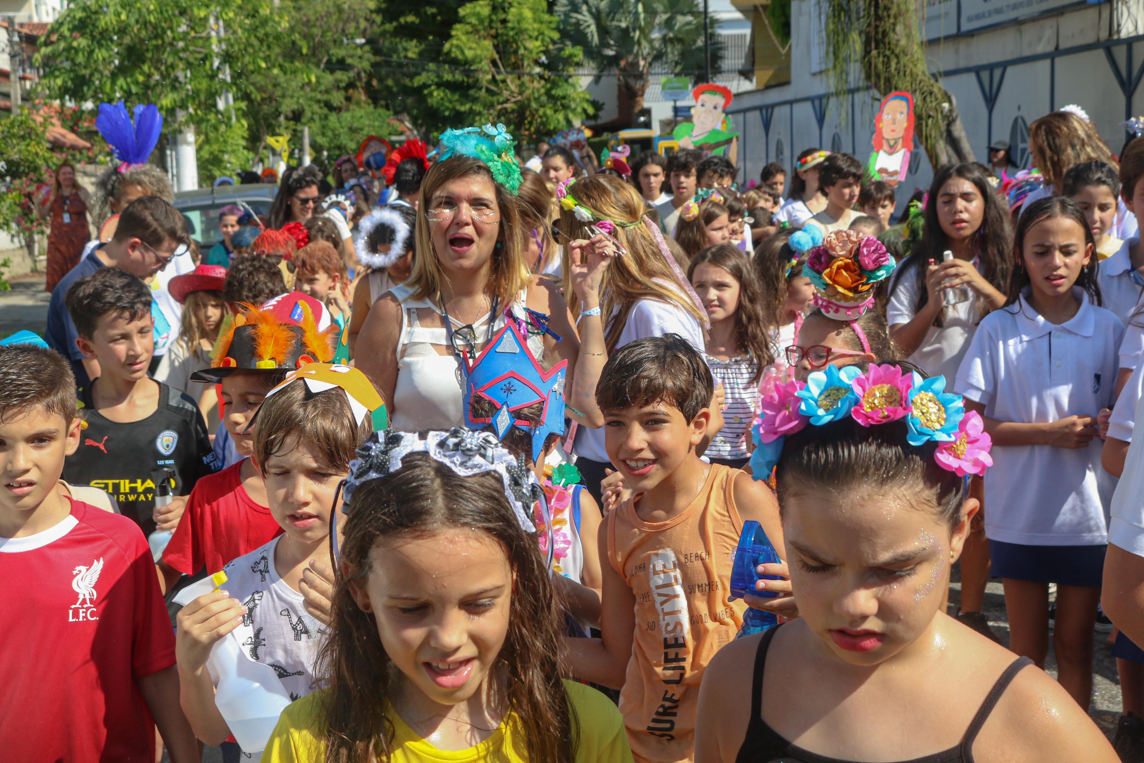 O bloco Vou Festejar, repleto de alunos, professores, coordenadores e auxiliares, desfilou pelo quarteirão da escola com muita animação, entoando releituras das canções da artista trabalhadas em sala de aula. “Os professores de música escolheram uma para cada ano do EF e ensaiaram bastante. Em sala, nós trabalhamos as letras, o que aquela música representava no passado e o que representaria hoje”, explica Andrea Ferrassoli, professora do 3º ano.