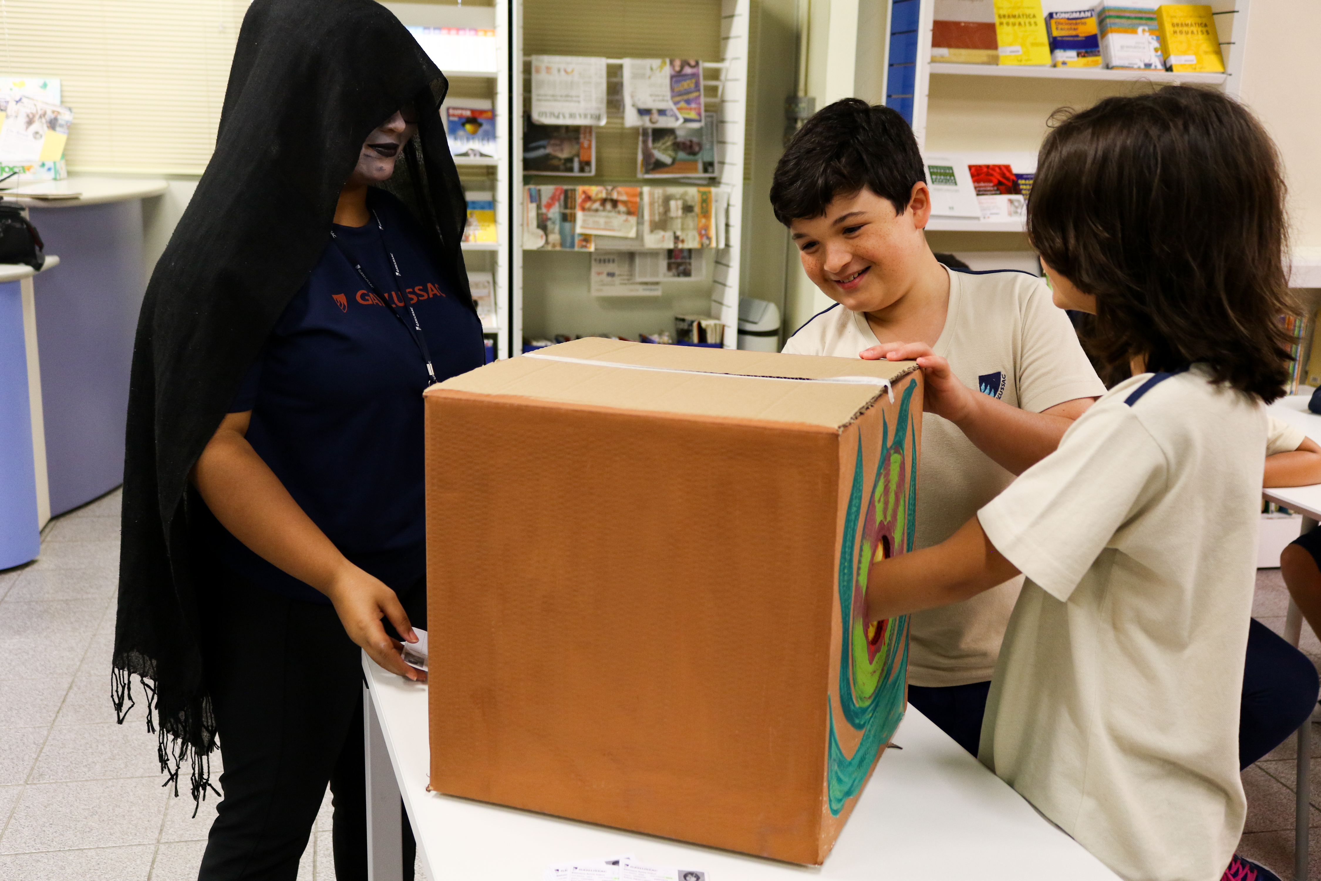 Ao final os alunos escolheram um livro para ler em casa de uma forma diferente, participaram de um sorteio na caixa misteriosa somente com livros do gênero terror e suspense. A aluna Natália Matos conta a experiência: “Eu gostei da história de hoje, porque eu nunca tinha lido uma história de terror antes”.