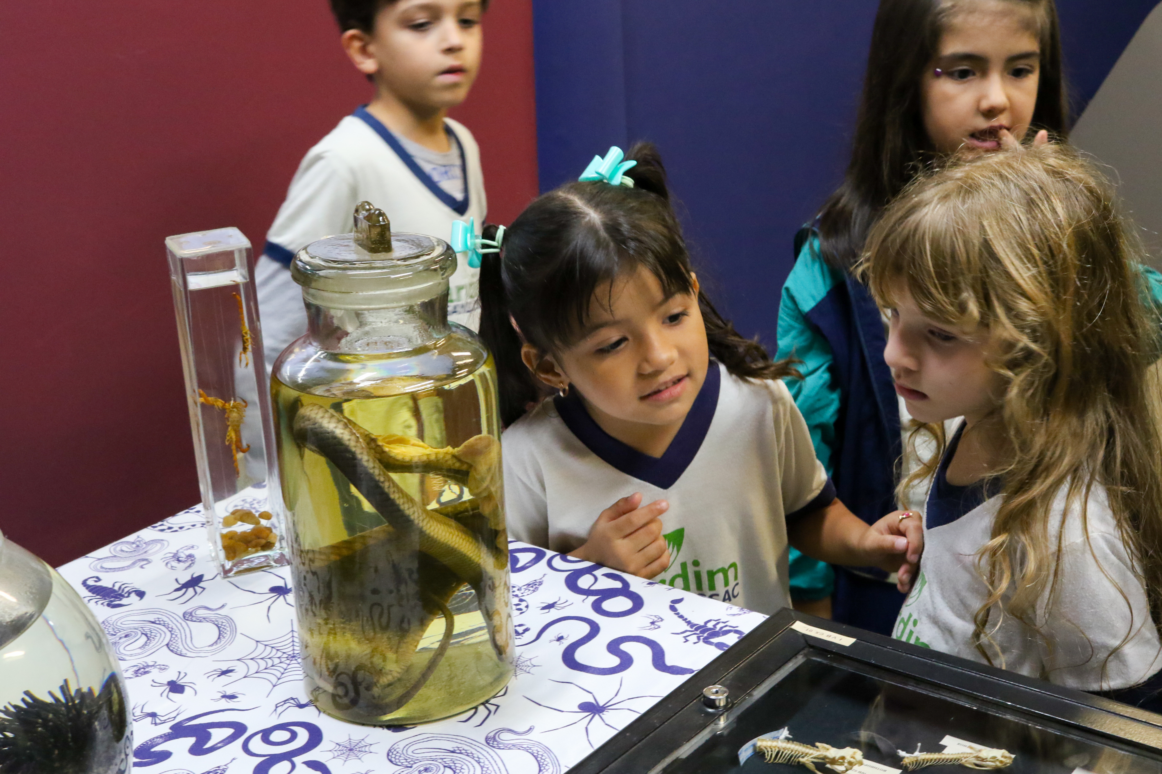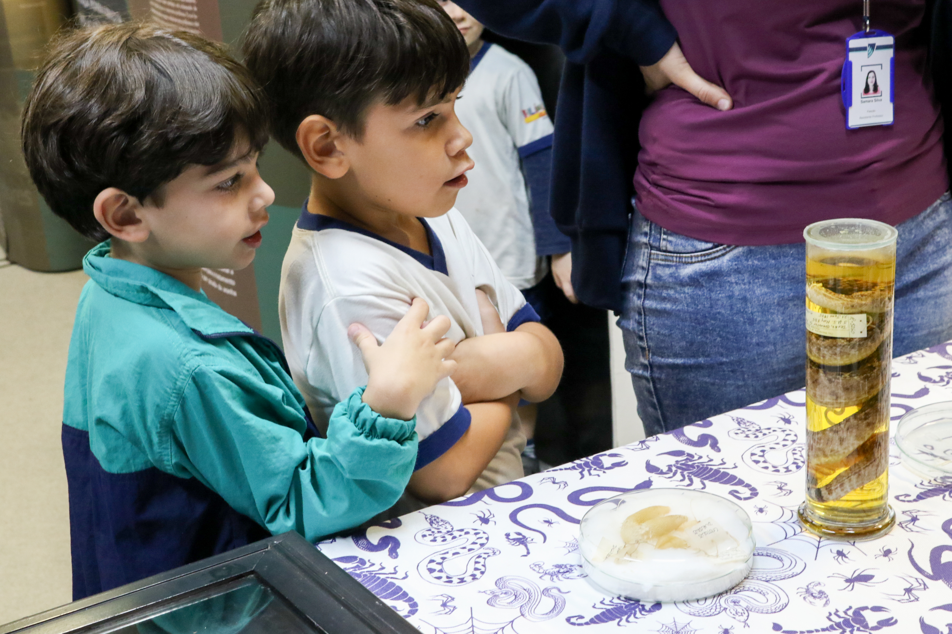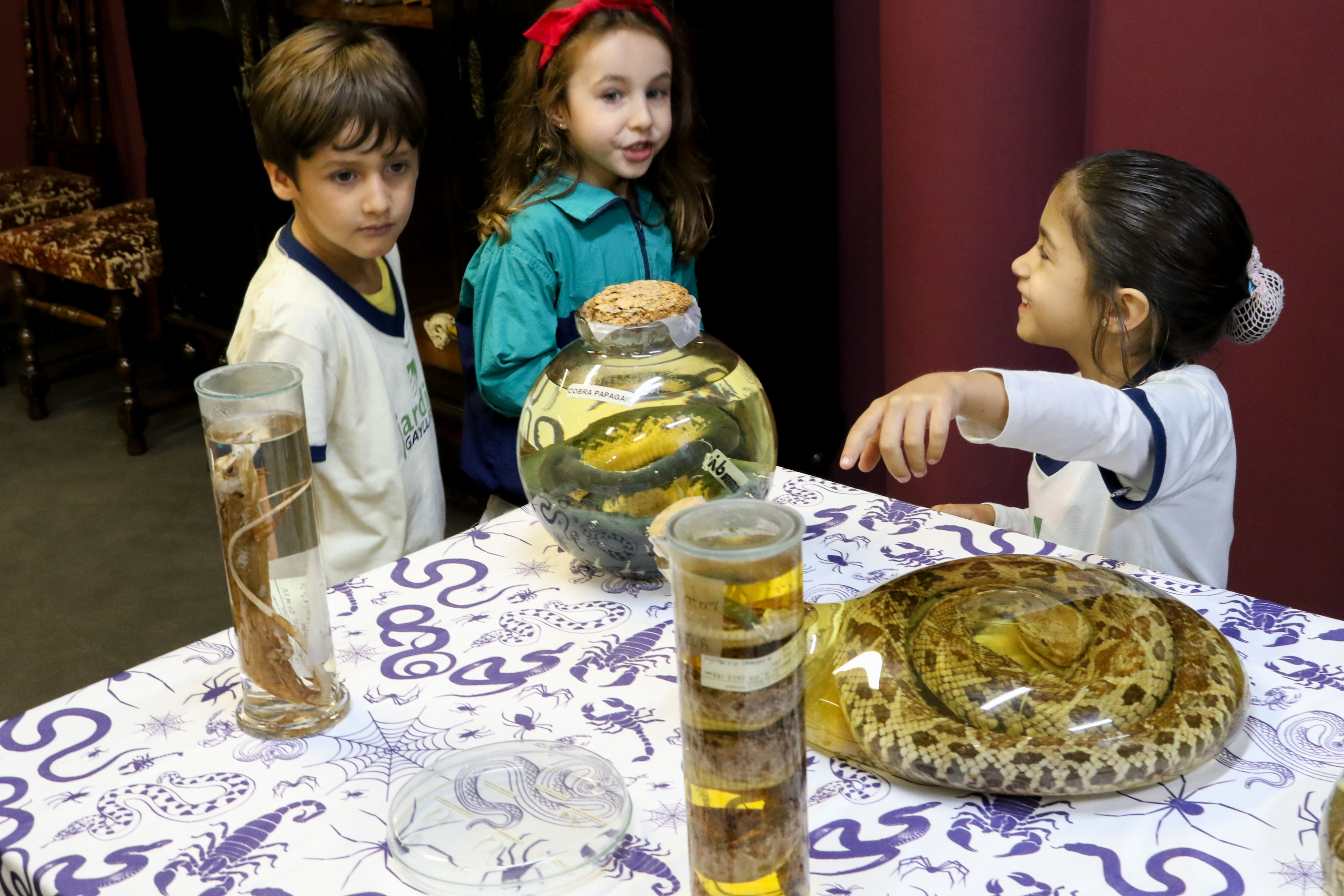 Recebidos pelo Biólogo e coordenador do Serpentário, Benedito Ambrosio, os alunos das professoras Gabriela Pinto e Karen Santos (J3T3) visitaram a exposição permanente do Instituto Vital Brazil, onde puderam conhecer de perto escorpiões, aranhas e cobras com mais de 4 metros de comprimento. A visita está em sintonia com o Clube de Pesquisa da turma, que trata da diversidade através dos animais estereotipados e os povos indígenas.