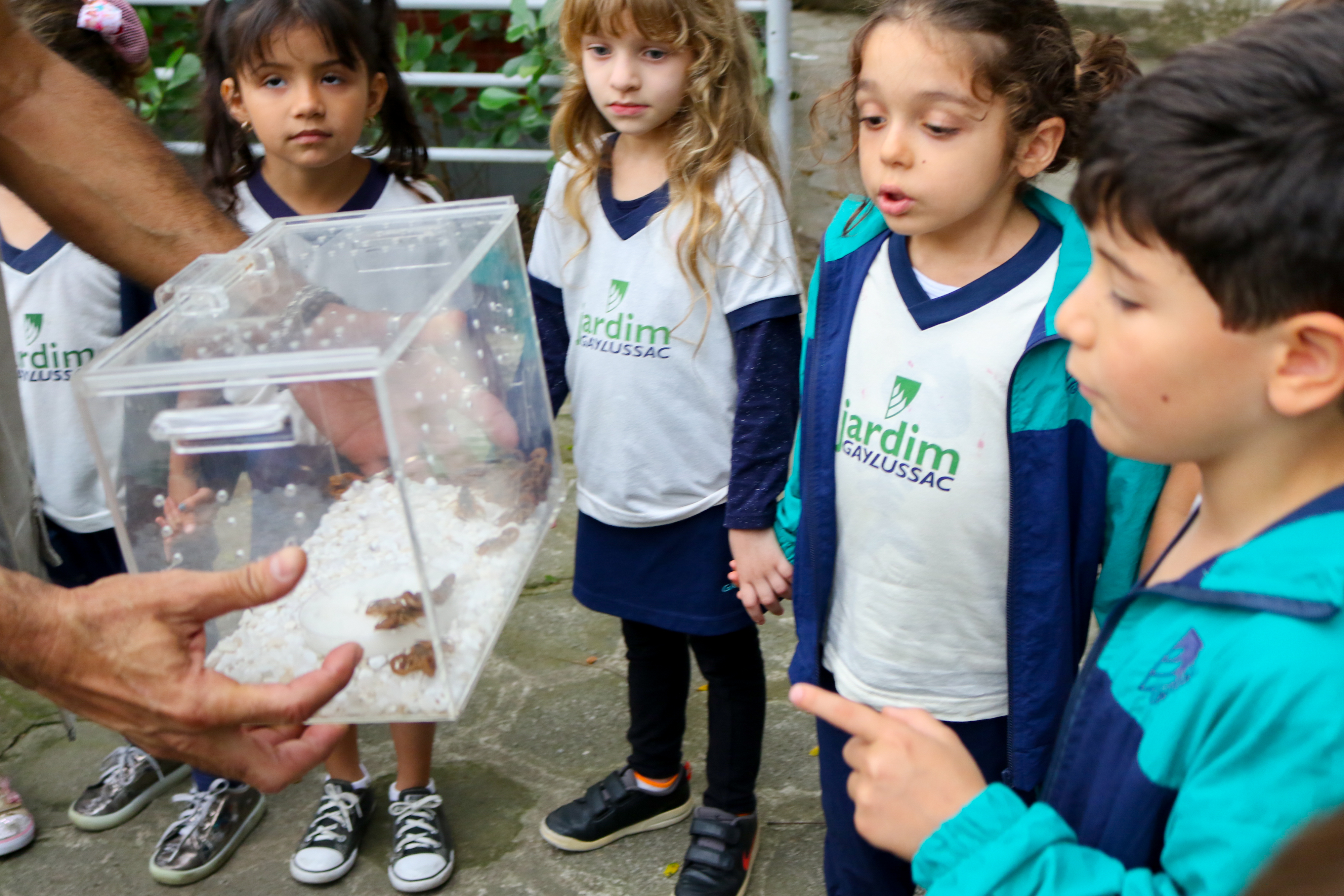 “Nós não gostamos, nem amamos, achamos maravilhoso! Tinha várias cobras, escorpiões e aranhas vivas. Descobrimos que a cobra gosta de lugares quentes e escuros. Também tinha um museu com várias cobras dentro de potes e como elas trocam de pele. Tinha biblioteca com vários livros com cobras e aranhas, falando o que elas comem. A biblioteca também tinha várias cobras de brinquedo”, finaliza o grupo.