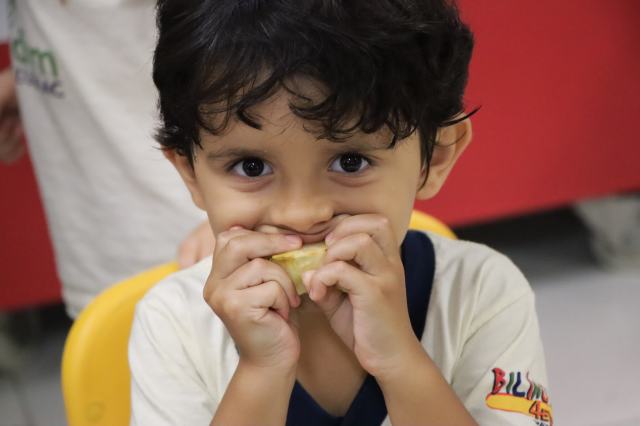 O Programa Bilíngue Lower tem realizado atividades mensais que exploram o mundo das frutas. Por meio das cores, texturas e sabores de novas frutas, o projeto tem o objetivo de unir aprendizado, saúde e diversão. Isso porque, aqui, conhecimento é lúdico! Nos últimos meses, os alunos embarcaram em jornadas de descobertas sobre a laranja, o abacate e a maçã, respectivamente. Com isso, as turmas têm a oportunidade de ampliar seus conhecimentos sobre os benefícios nutricionais, formas de consumo e curiosidades de cada fruta.