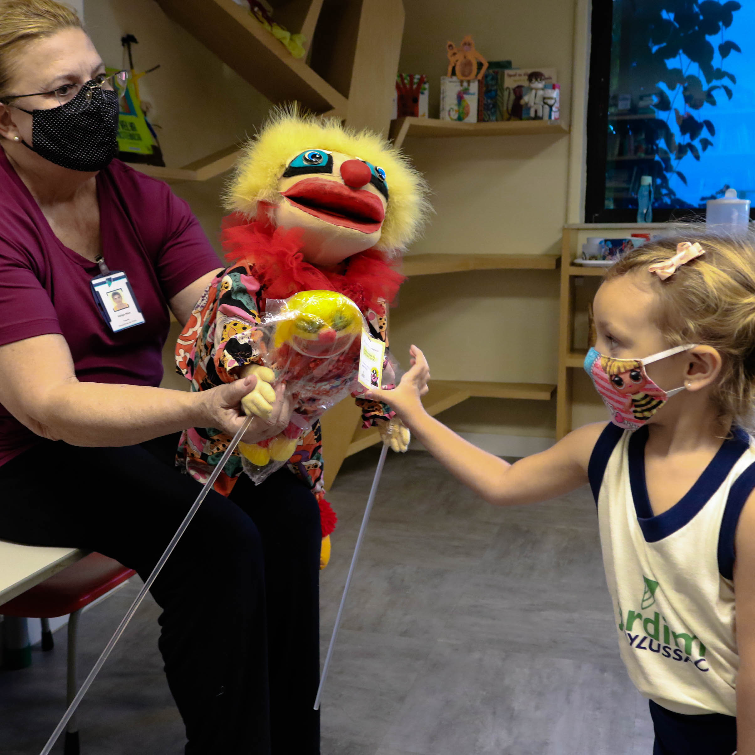 Os novos alunos já conheceram o nosso tão querido mascote! O palhacinho Alegretto visitou as turmas do GayLussac Jardim ontem, encantando e divertindo os pequenos, com direito a música e entrega do Alegrettinho para todos os recém-chegados!