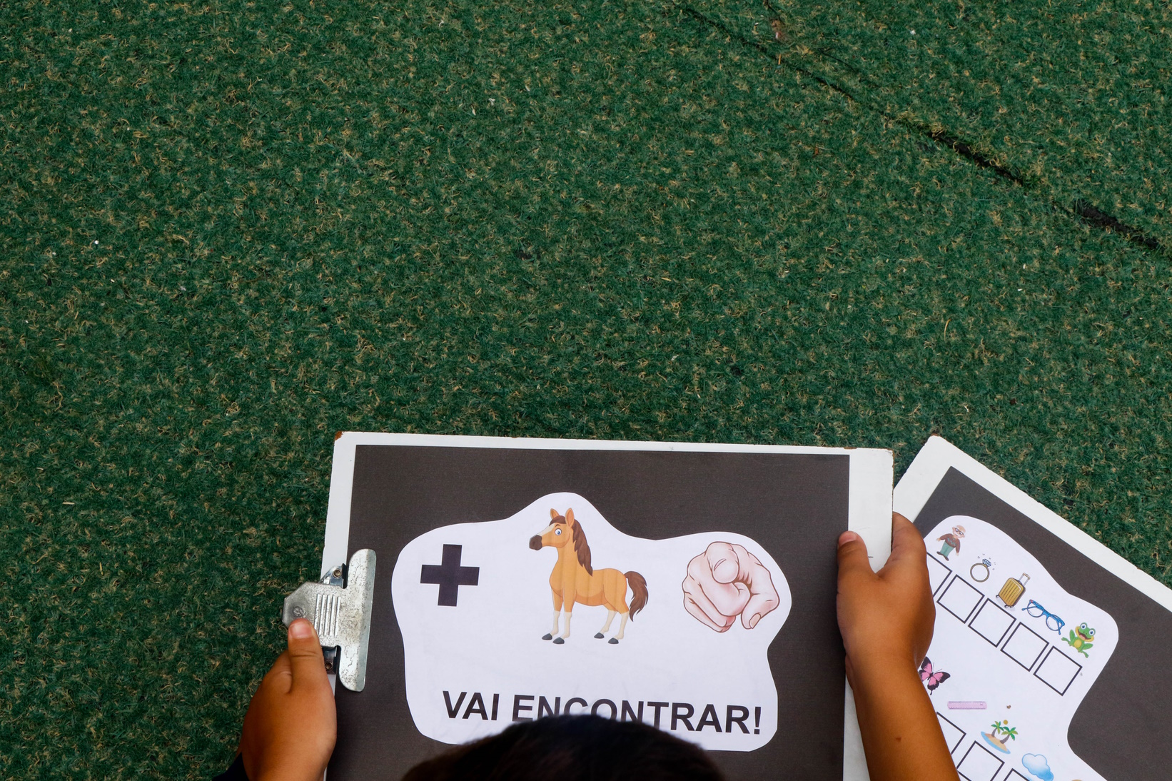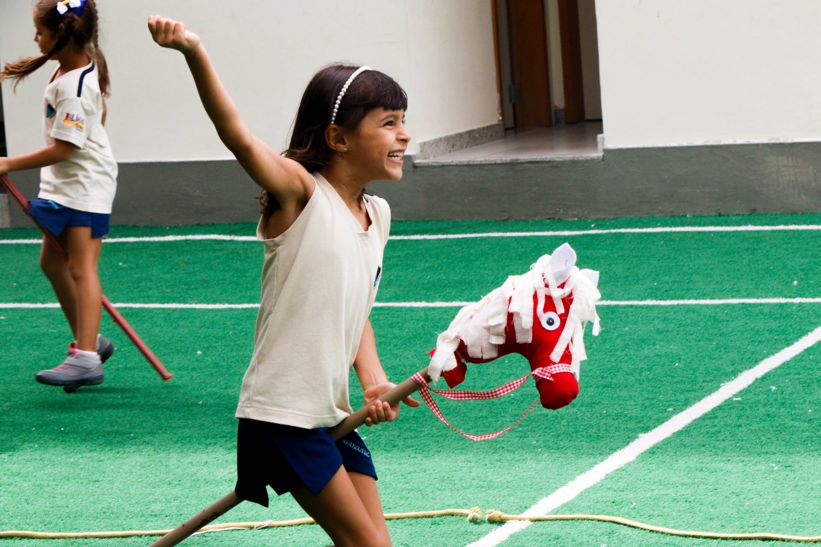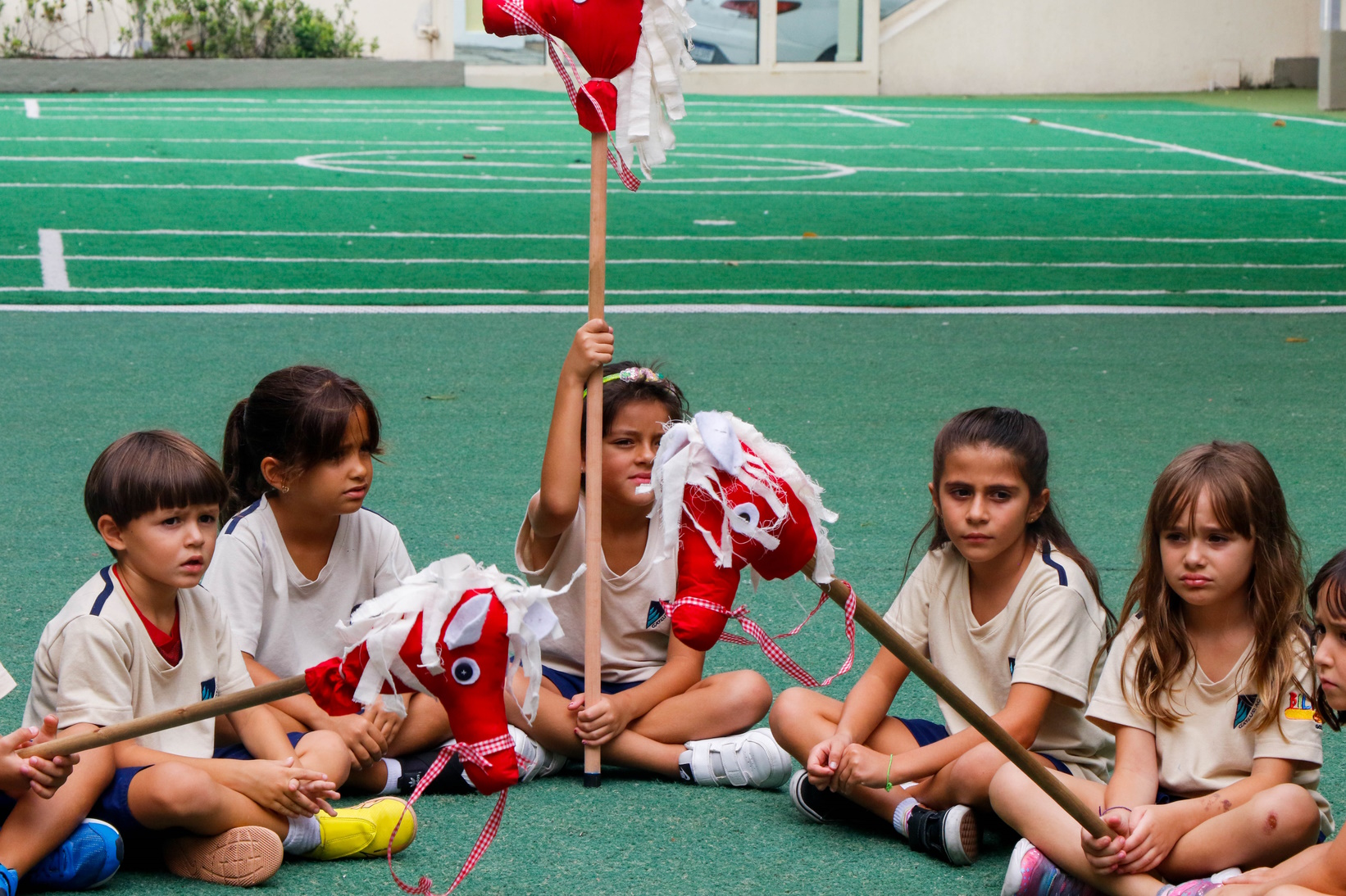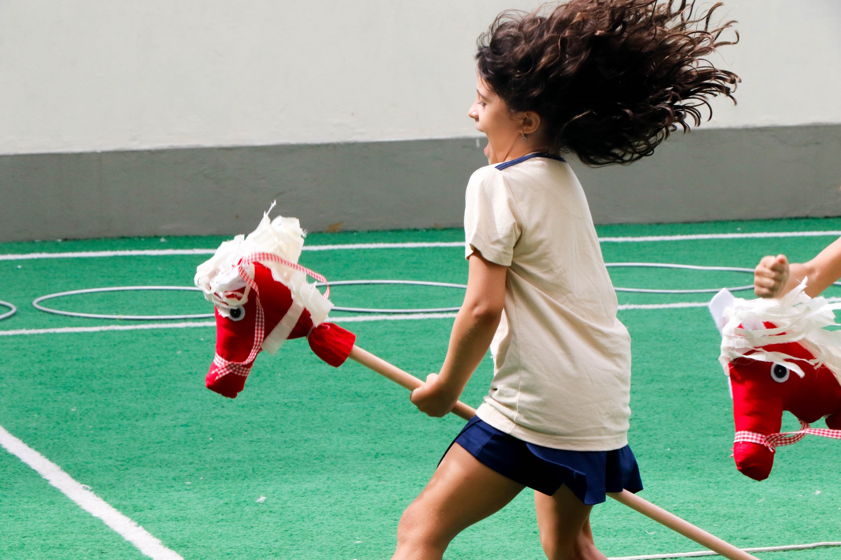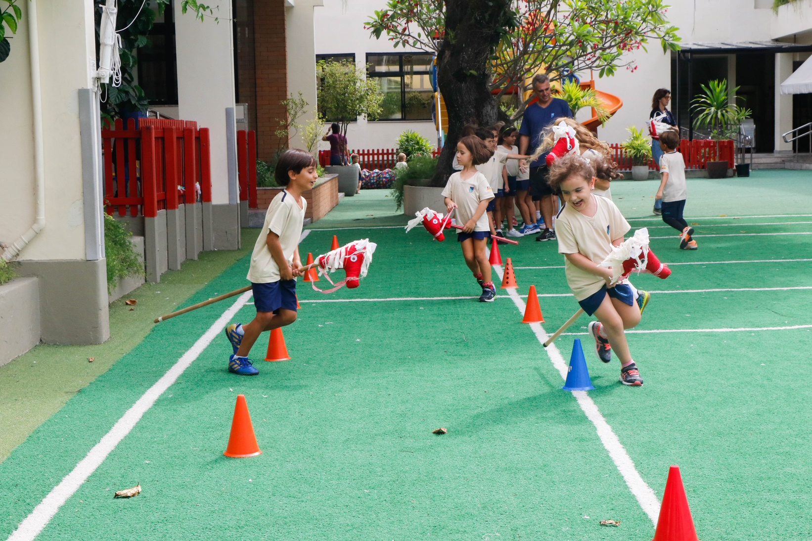 Com o objetivo de apropriar-se da leitura e da escrita como prática social, e da capacidade de ler o mundo à sua volta, as turmas do 1º ano do Ensino Fundamental iniciaram o ano letivo recebendo uma encomenda especial: um cavalo de pau! Com muita curiosidade, os alunos decifraram charadas para encontrar outros cavalos espalhados pelo prédio do GayLussac Jardim em uma atividade interdisciplinar com a Educação Física.