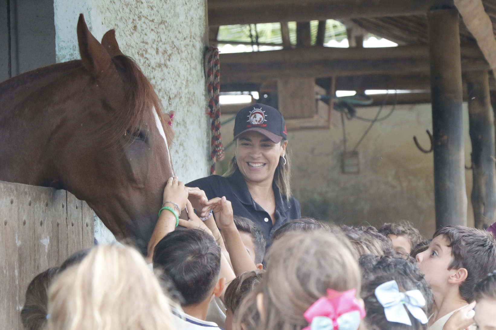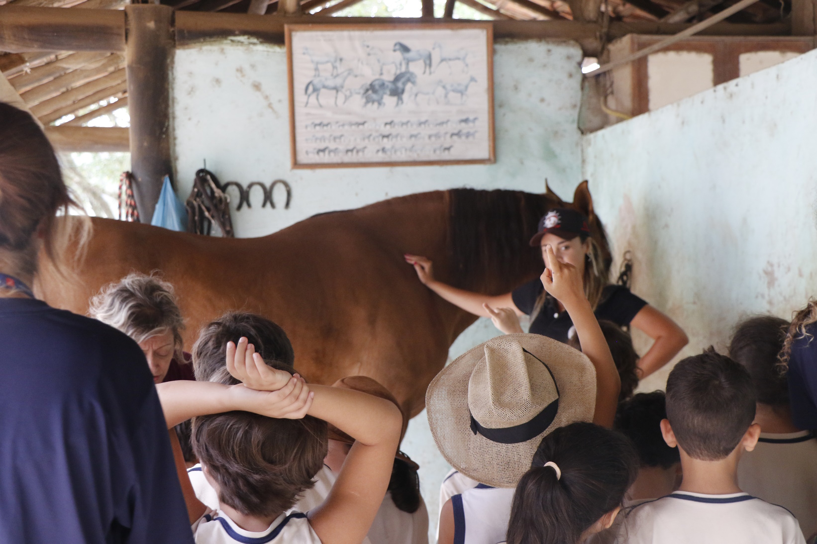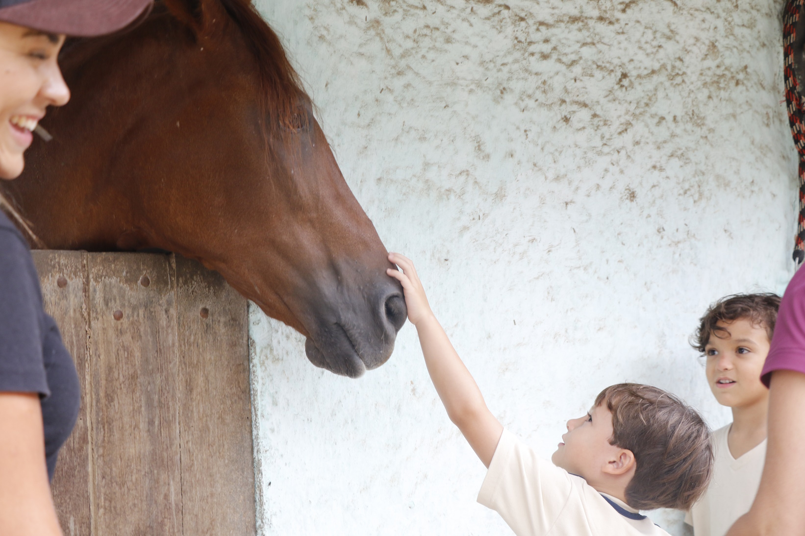 “A atividade proporcionou momentos divertidos e de muita aprendizagem, unindo e ampliando o que está sendo trabalhado em sala e as curiosidades da vida animal, como alimentação, tipos de raça, cuidados com a saúde e idade média de vida”, explica a professora Juliana Lisboa. O aluno Theo comenta: “No passeio descobri que o cavalo tem a audição boa”. Rafael completa: “E eu descobri que eles comem feno!”.