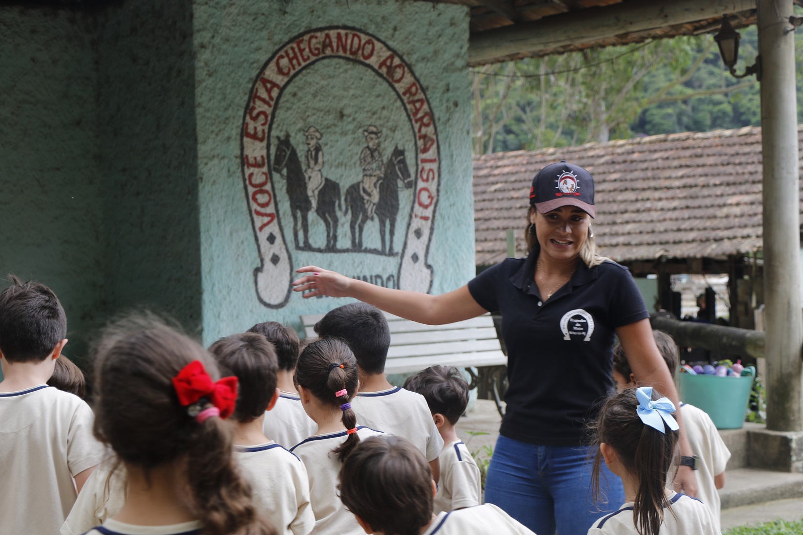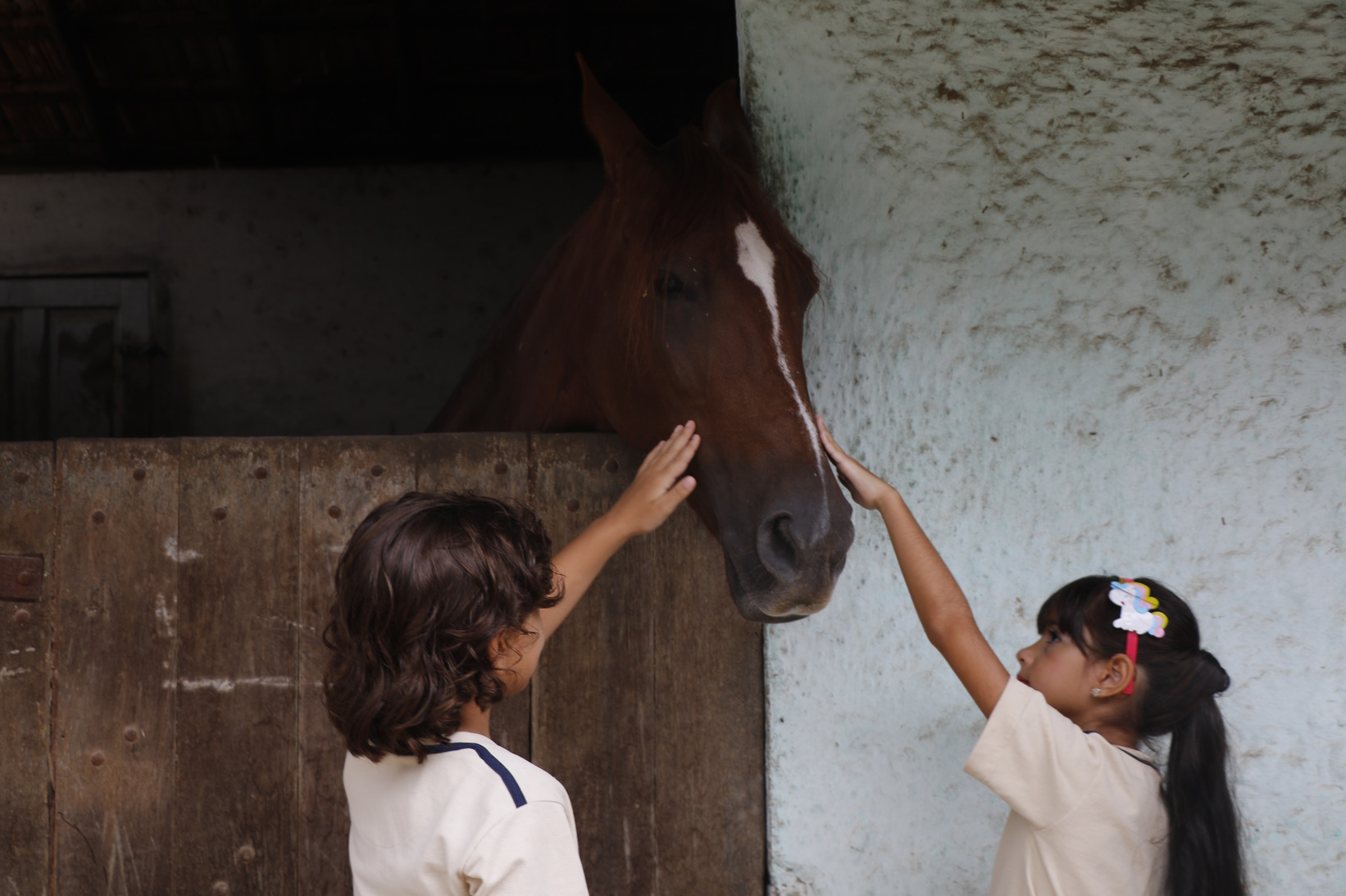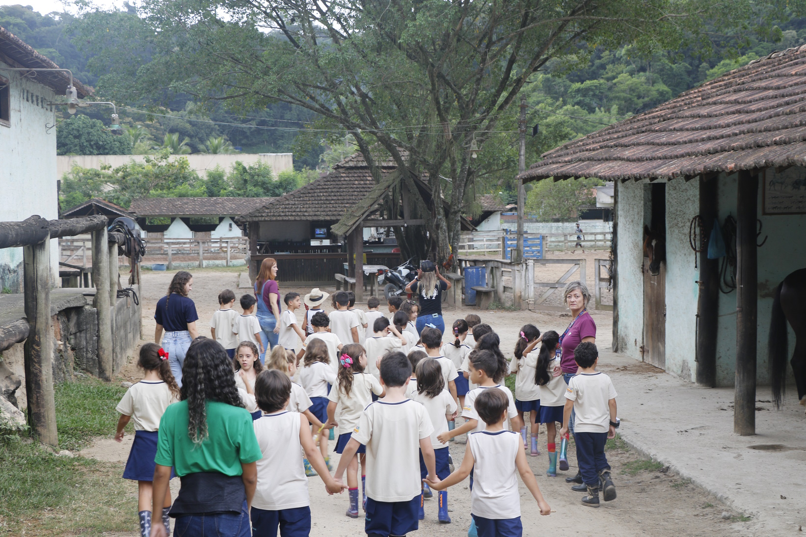 “A atividade proporcionou momentos divertidos e de muita aprendizagem, unindo e ampliando o que está sendo trabalhado em sala e as curiosidades da vida animal, como alimentação, tipos de raça, cuidados com a saúde e idade média de vida”, explica a professora Juliana Lisboa. O aluno Theo comenta: “No passeio descobri que o cavalo tem a audição boa”. Rafael completa: “E eu descobri que eles comem feno!”.