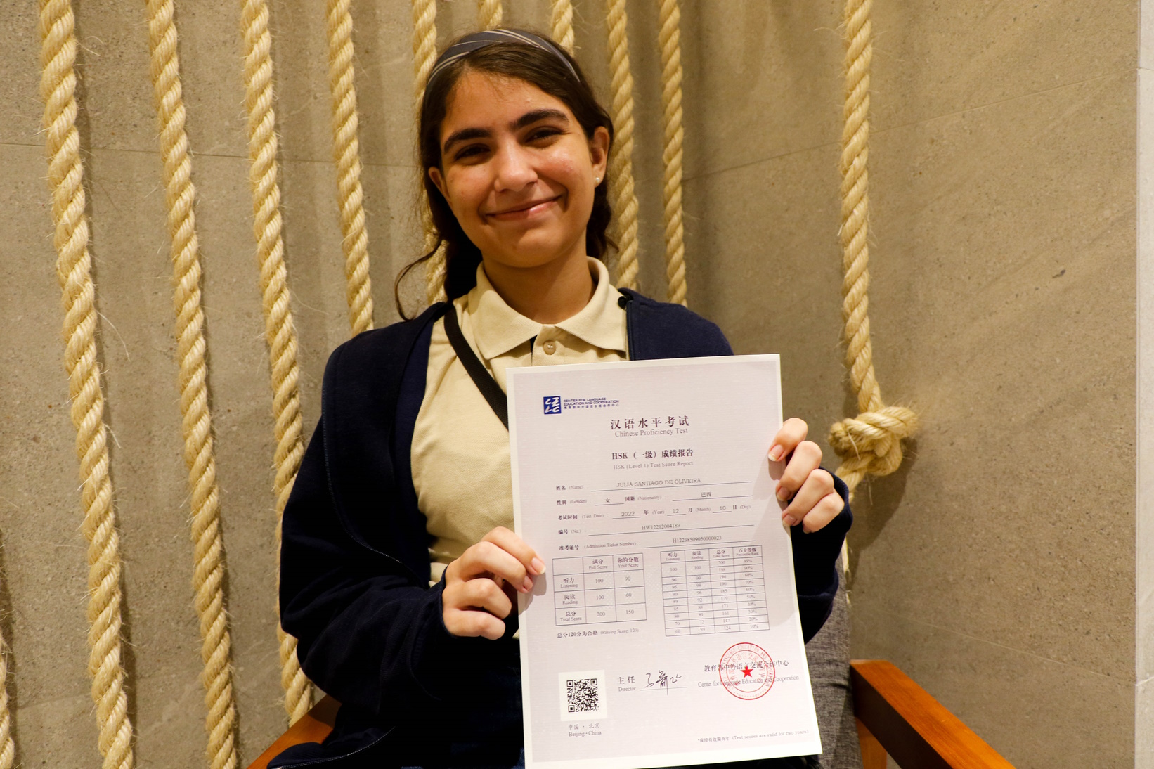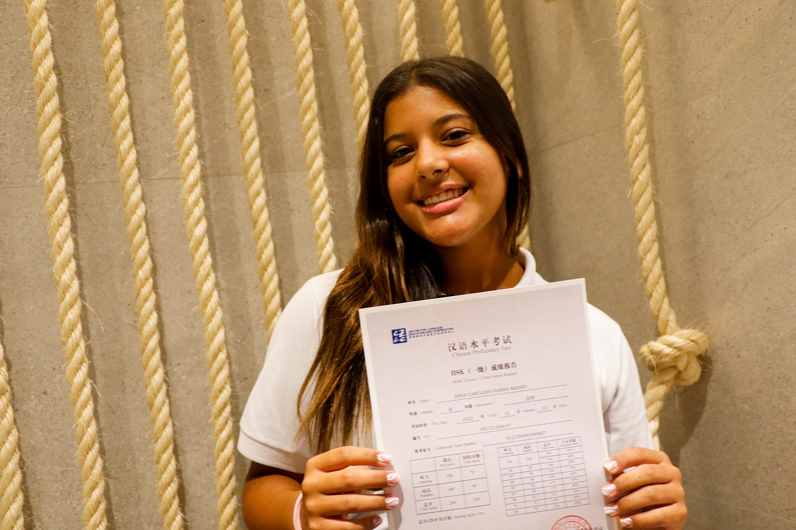Em 2022, alunos do 9º ano do Ensino Fundamental realizaram o HSK (Hanyu Shuiping Kaoshi) – Exame de Proficiência em Língua Chinesa. A certificação em Mandarim tem seis níveis e é exigida para o ingresso em universidades chinesas, programas de intercâmbio, pós-graduação, mestrado ou doutorado, bem como para candidatar-se a vagas de emprego em empresas.