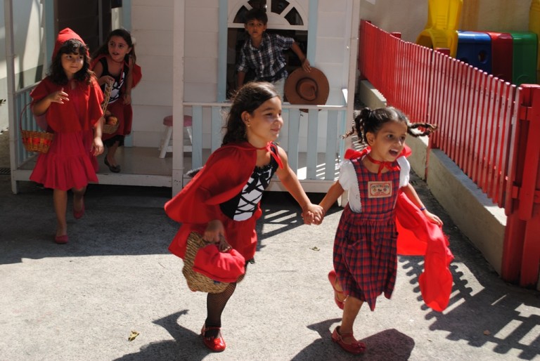 A professora Vanessa Trece explica: “Tudo começou quando encontramos uma mala. Dentro achamos vários objetos: a capa vermelha, uns óculos de leitura da vovó e um convite para um chá. Foi uma oportunidade de apresentar diversas palavras-chave que envolvem esse imaginário das histórias infantis: bolo, lobo, fada, mata”.