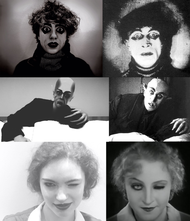 As alunas, que já se interessavam por cinema, decidiram pesquisar sobre os três principais filmes deste estilo, “Nosferatu”, “Metropolis” e “O Gabinete do Dr. Caligari”. Na apresentação, trouxeram informações importantes sobre o conceito do Expressionismo e fizeram maquiagem simbolizando as personagens principais de cada um dos filmes escolhidos. Além disso, ainda gravaram um trailer e fizeram fotografias recriando as cenas dos filmes.