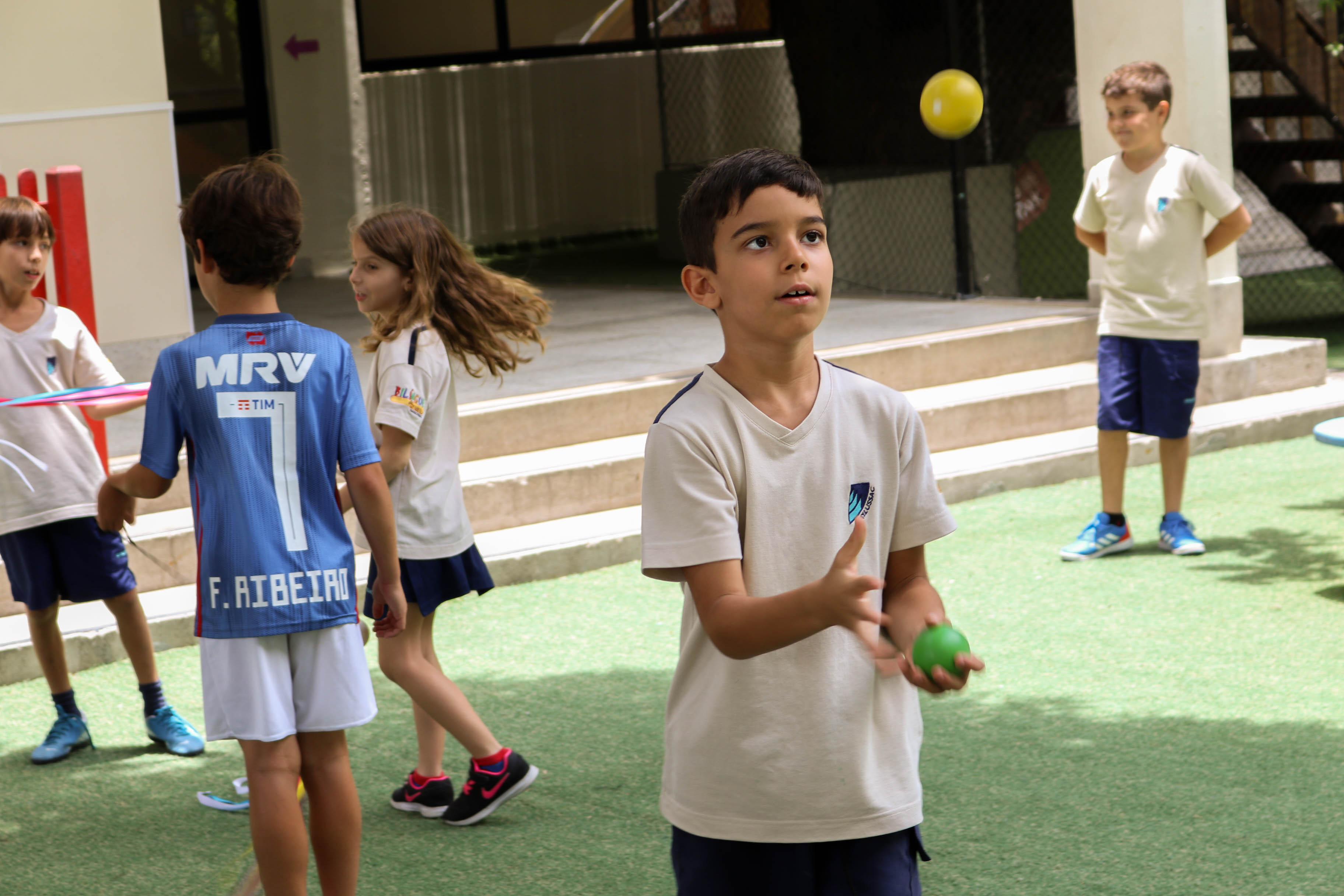 Disciplina, concentração, cooperação, foco, criatividade e diversão! Em dezembro, para contemplar a unidade “The Circus is Coming to Town” do International Primary Curriculum (IPC), os alunos do 2º ano do Projeto Bilíngue participaram de um Circus Workshop, com o professor de Teatro Raphael Pompeu, em que fizeram acrobacias no tecido, pularam na cama elástica, caminharam com pernas de lata e praticaram malabares.