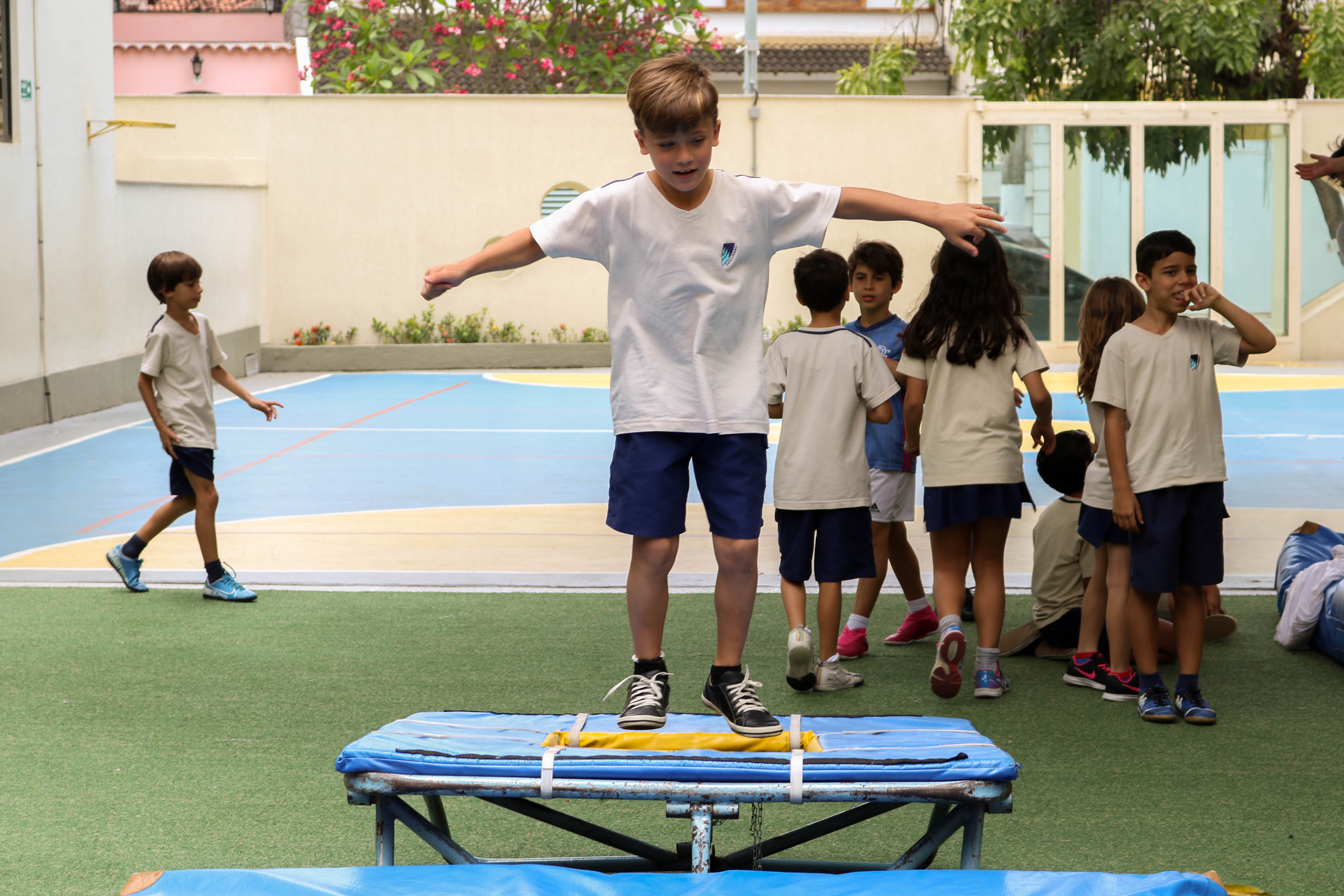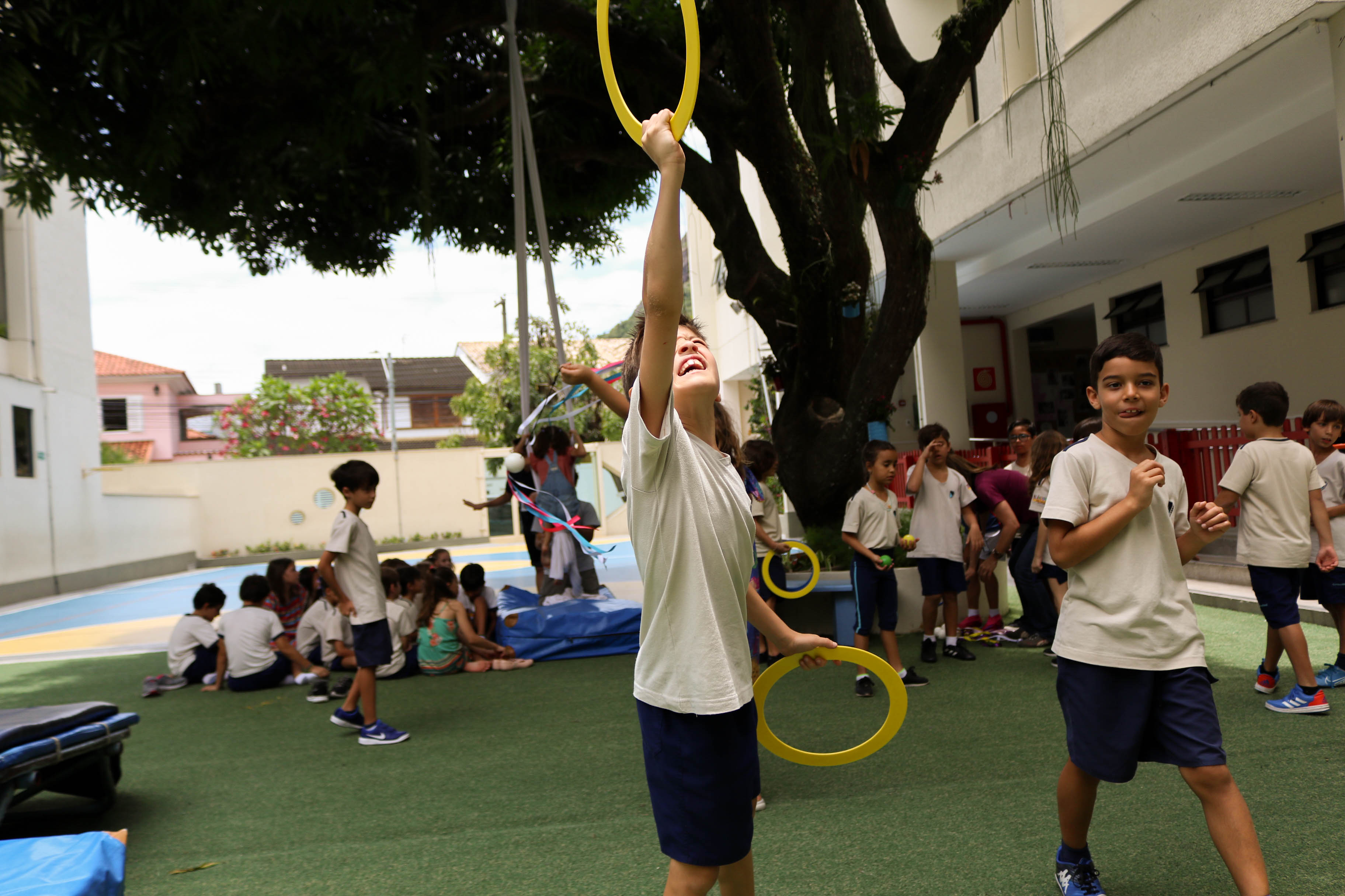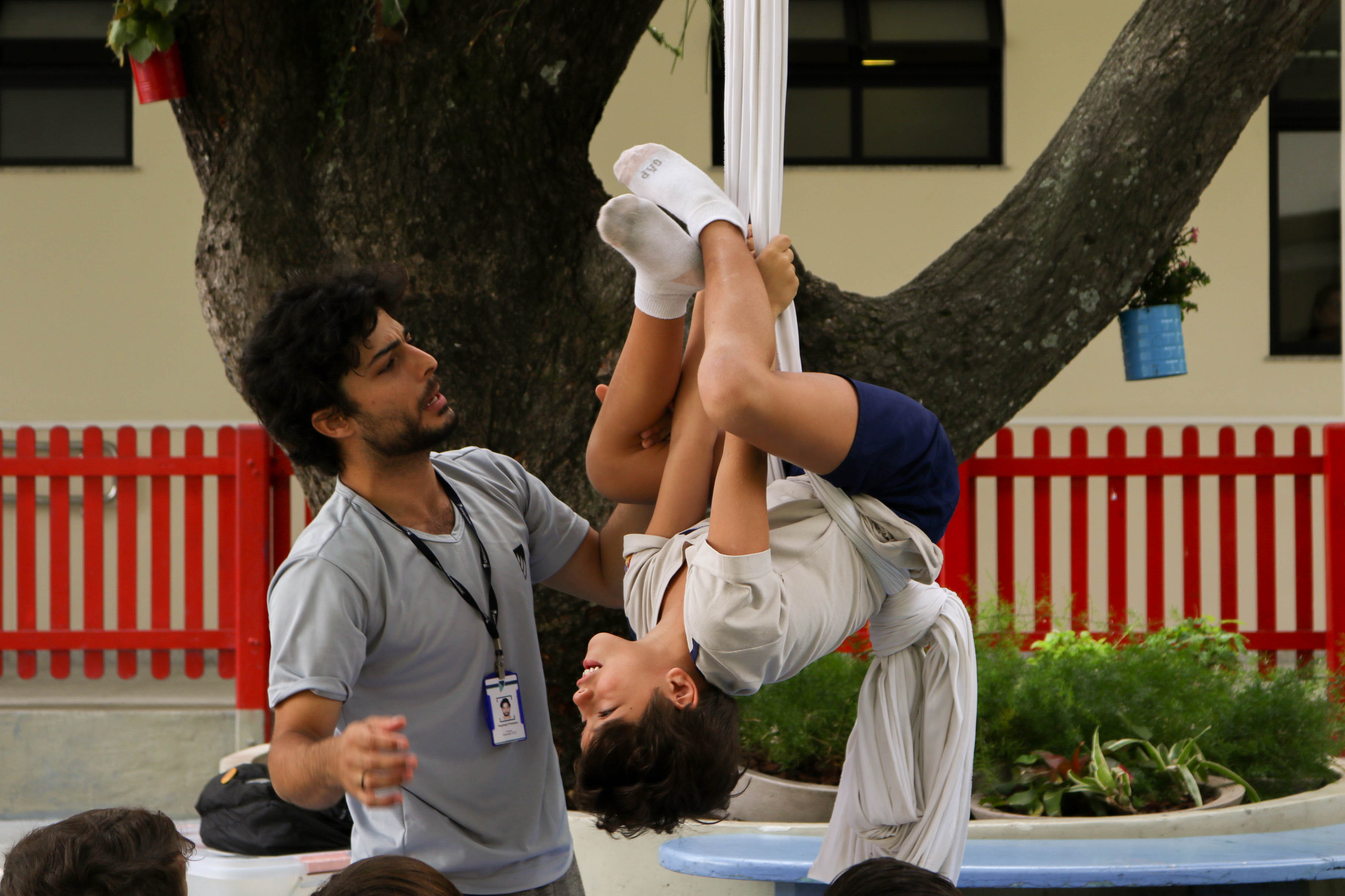 Disciplina, concentração, cooperação, foco, criatividade e diversão! Em dezembro, para contemplar a unidade “The Circus is Coming to Town” do International Primary Curriculum (IPC), os alunos do 2º ano do Projeto Bilíngue participaram de um Circus Workshop, com o professor de Teatro Raphael Pompeu, em que fizeram acrobacias no tecido, pularam na cama elástica, caminharam com pernas de lata e praticaram malabares.