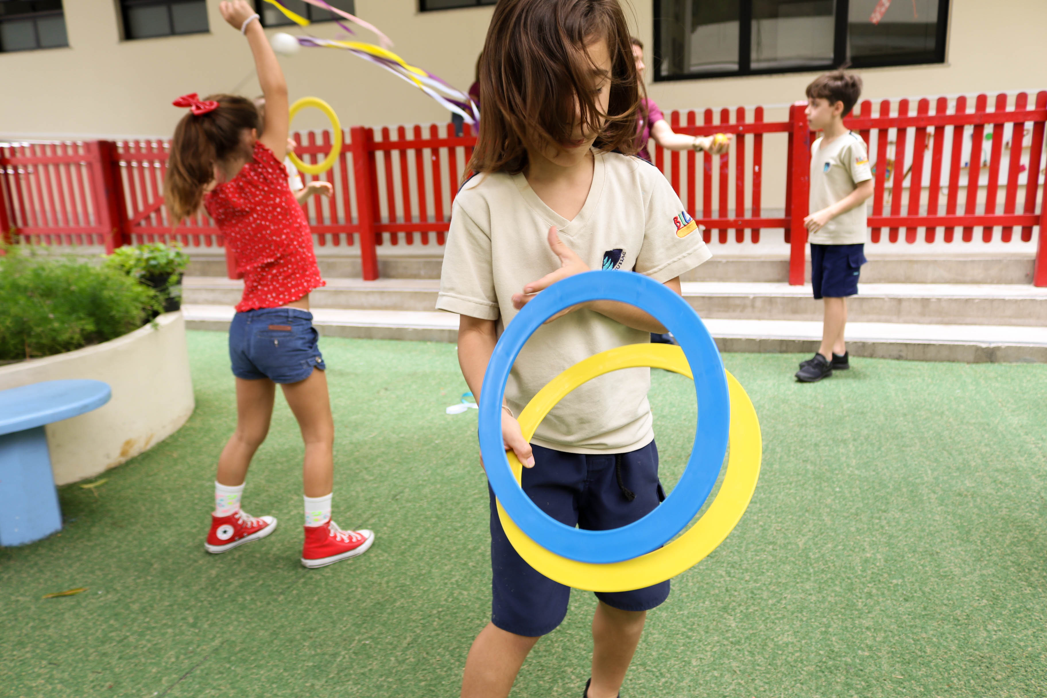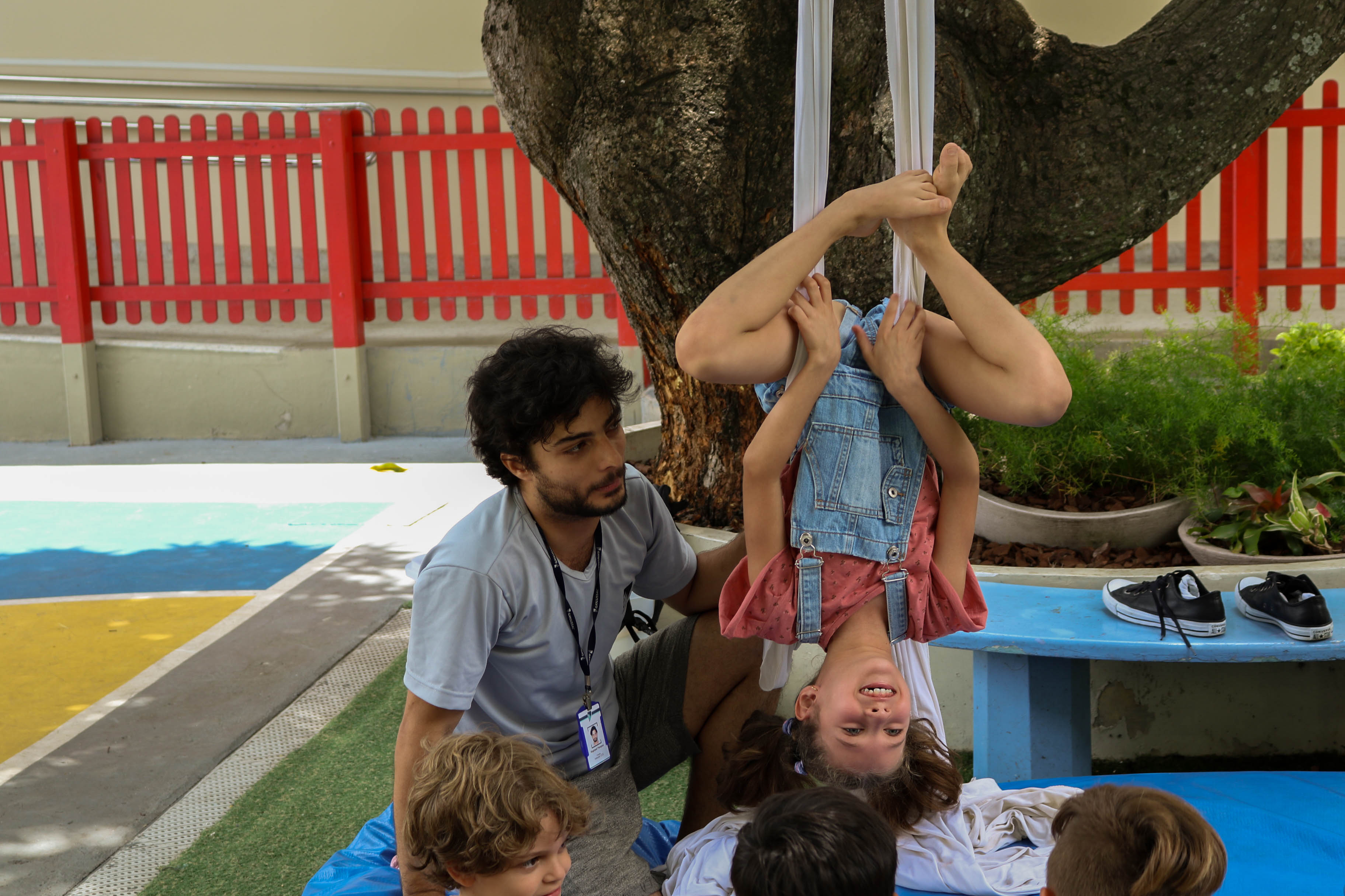 Disciplina, concentração, cooperação, foco, criatividade e diversão! Em dezembro, para contemplar a unidade “The Circus is Coming to Town” do International Primary Curriculum (IPC), os alunos do 2º ano do Projeto Bilíngue participaram de um Circus Workshop, com o professor de Teatro Raphael Pompeu, em que fizeram acrobacias no tecido, pularam na cama elástica, caminharam com pernas de lata e praticaram malabares.