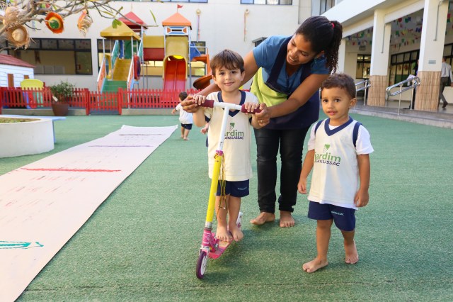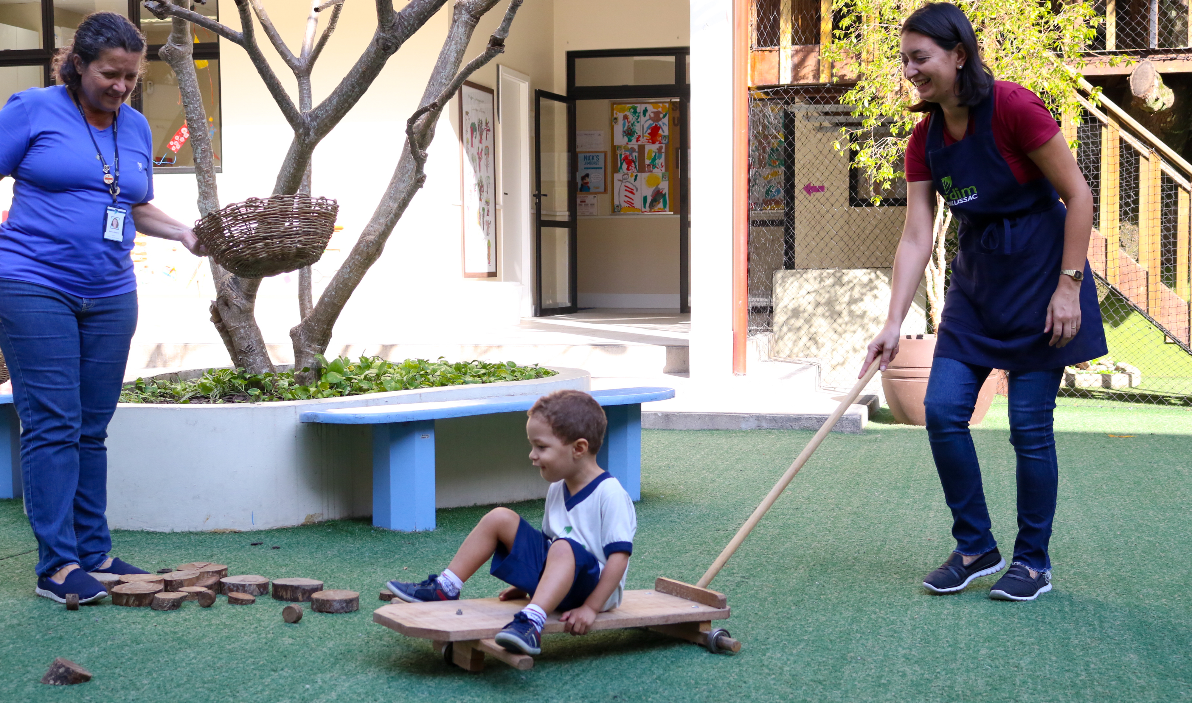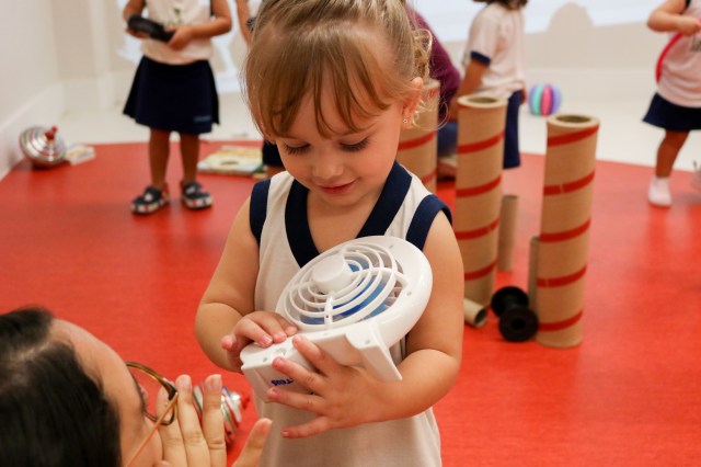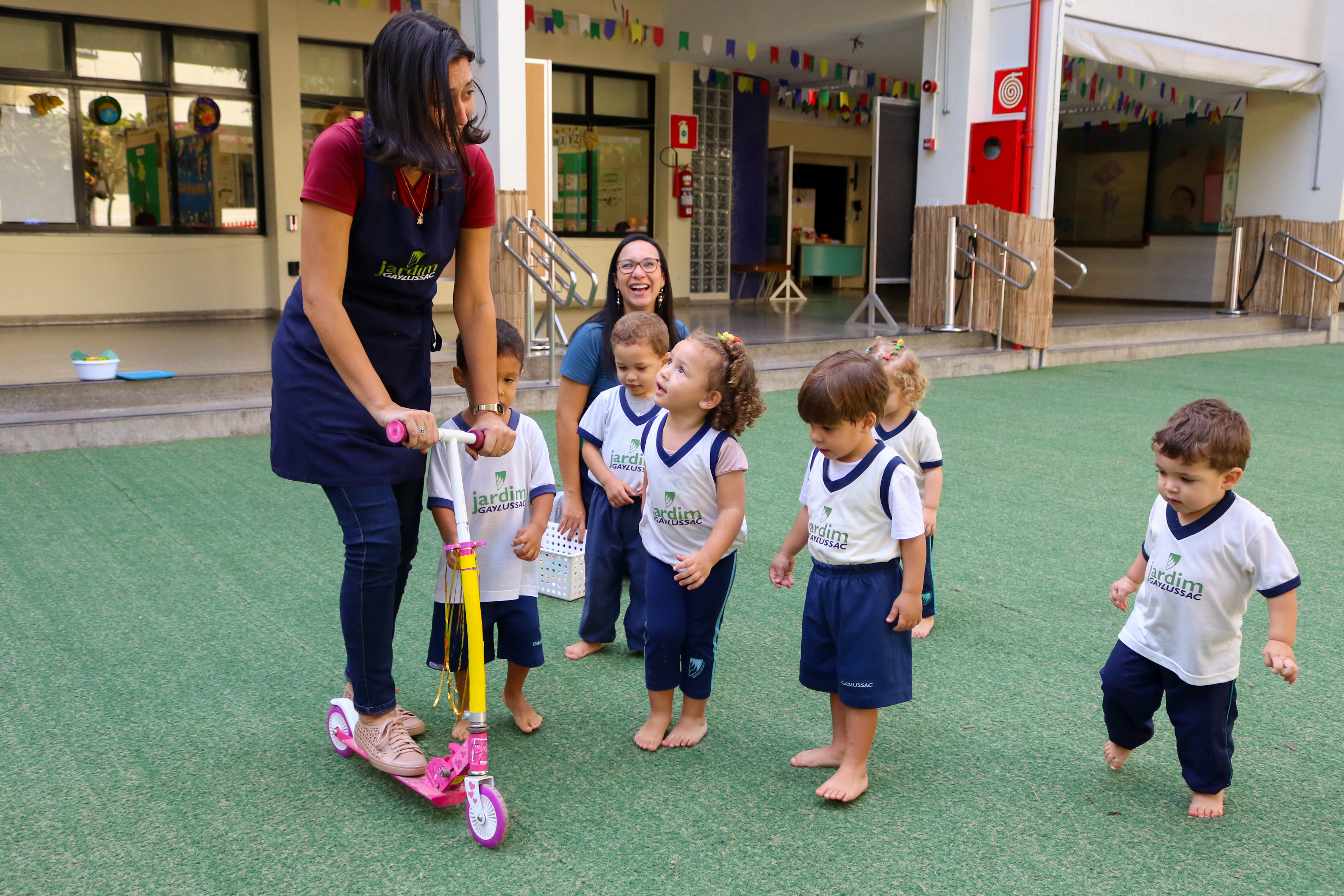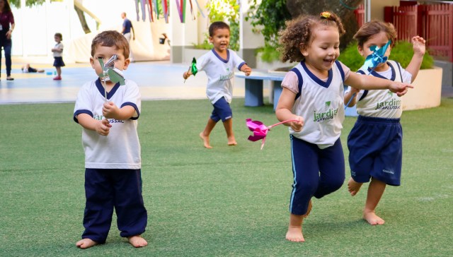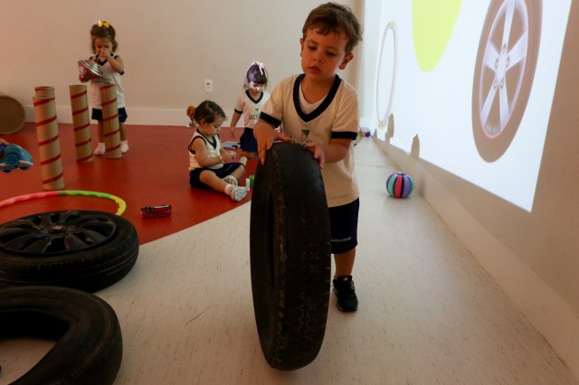 “A criança que não brinca não é feliz. Ao adulto que quando criança não brincou, falta-lhe um pedaço no coração”. No último semestre, as turmas do Maternal 2 foram apresentadas ao artista plástico brasileiro Ivan Cruz, que baseia seus trabalhos em brincadeiras infantis. Resgatar o lúdico, a imaginação e incentivar o desenvolvimento da criança no convívio coletivo e habilidades motoras, são os objetivos pretendidos com as obras que os alunos tiveram contato através do Clube de Pesquisa “Será que roda?”. Com muita arte, brincadeira e diversão, os alunos conheceram novas formas de aprender e de brincar!