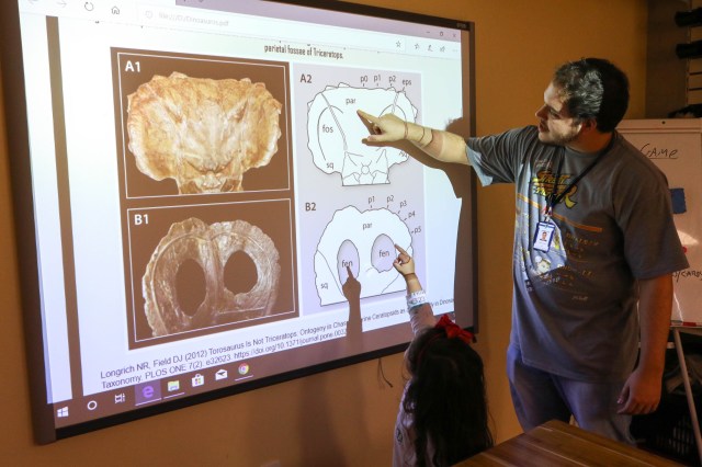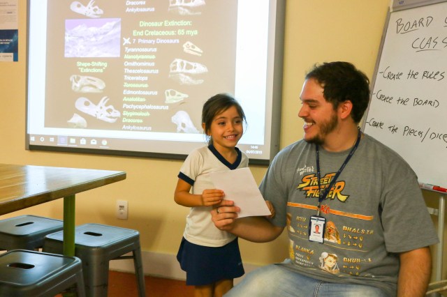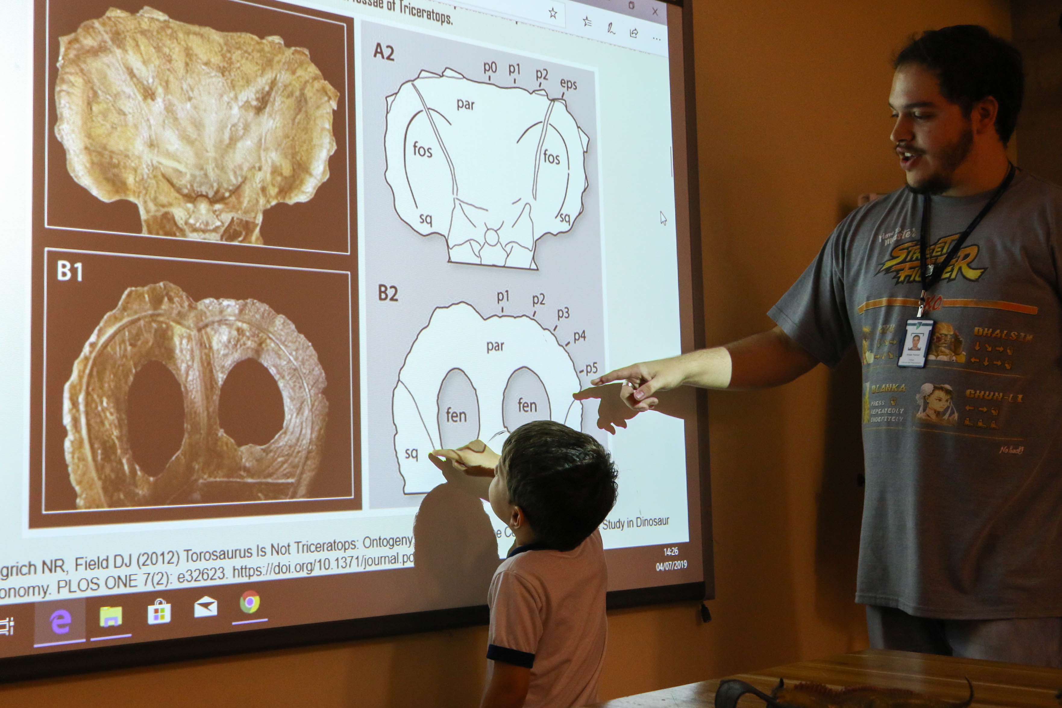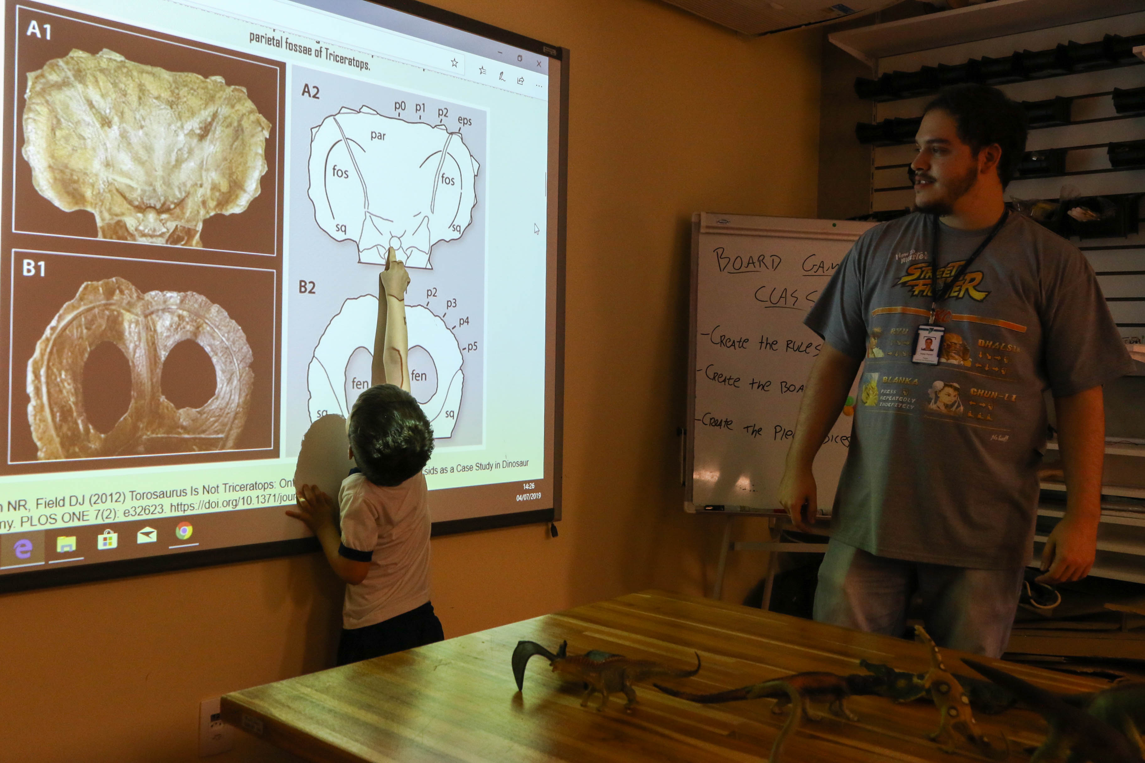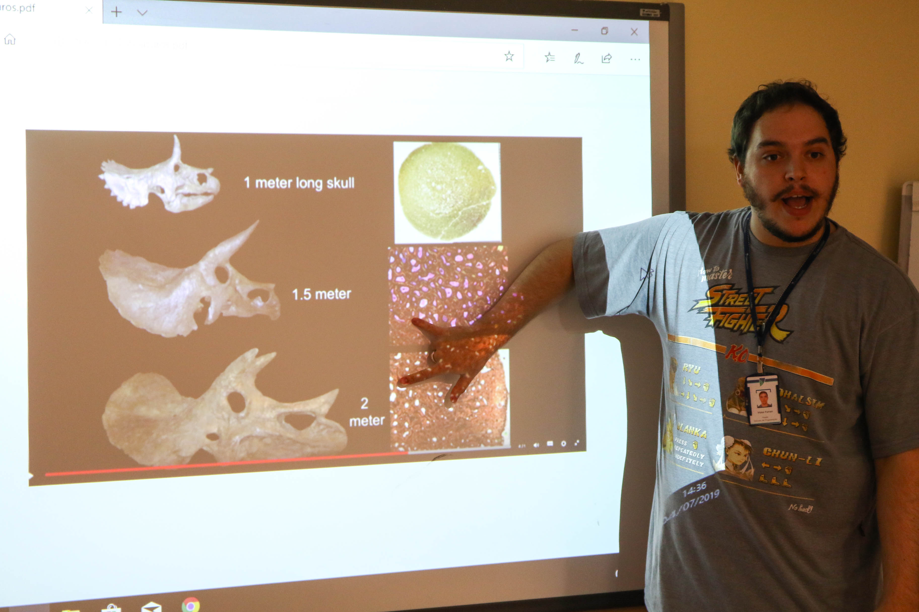 Será que os dinossauros tinham ossos e músculos como a gente? Como será o esqueleto de um dinossauro? Como os paleontólogos descobrem a espécie do dinossauro pelo osso? A partir das dúvidas levantadas pelos alunos, o professor Victor Sassi, também fascinado pelo mundo dos dinossauros, convidou a turma para uma vivência no Maker Lab. Lá, foi falado como os pesquisadores fazem para classificar as espécies de dinossauros e a diferença das ossadas de dinossauros filhotes e adultos.