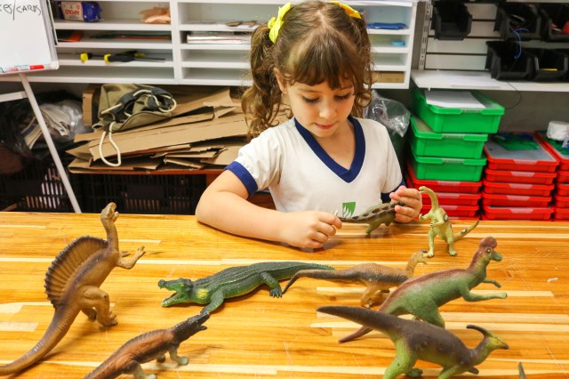 “Brincar cotidianamente de diversas formas, em diferentes espaços e tempos, ampliando e diversificando seu acesso a variadas produções e conhecimentos”, é um dos direitos de aprendizagem garantido pela BNCC (Base Nacional Comum Curricular), que reconhece no Brasil a Educação Infantil como uma etapa essencial ao desenvolvimento humano. No GayLussac Jardim, o Dino Park, um dos espaços de construção criado no pátio da escola, desperta encantamento nas crianças expandindo a imaginação e a criatividade no brincar. O mundo dos dinossauros também se tornou tema do Clube de Pesquisa da J2T1, que estuda a história, a origem e a estrutura óssea desses seres pré-históricos.