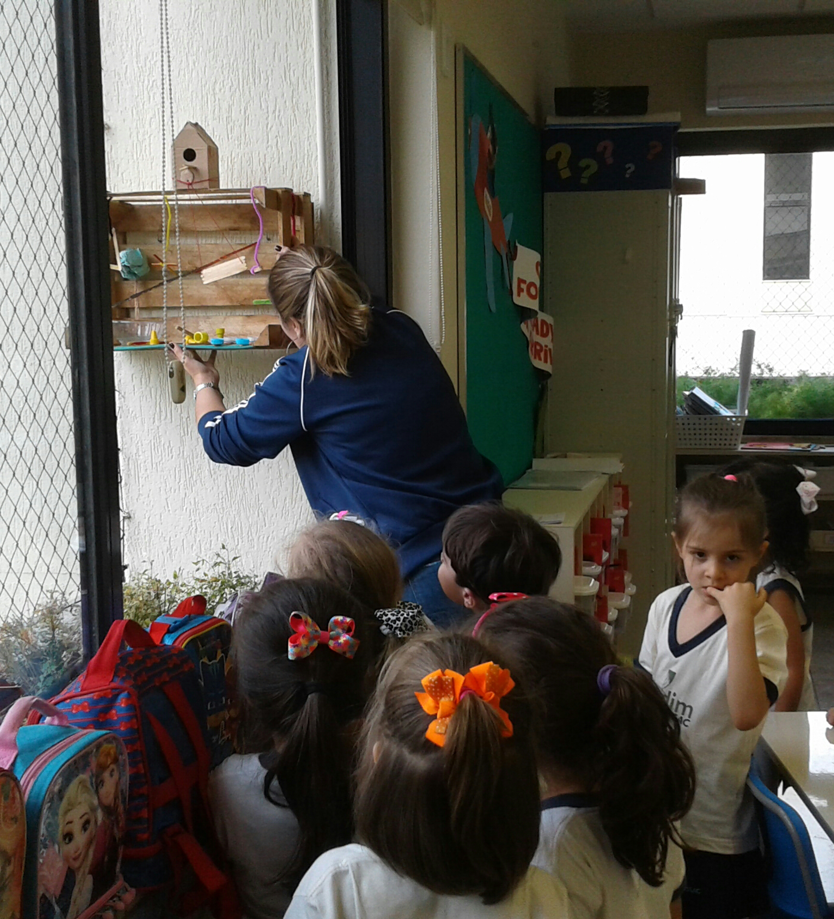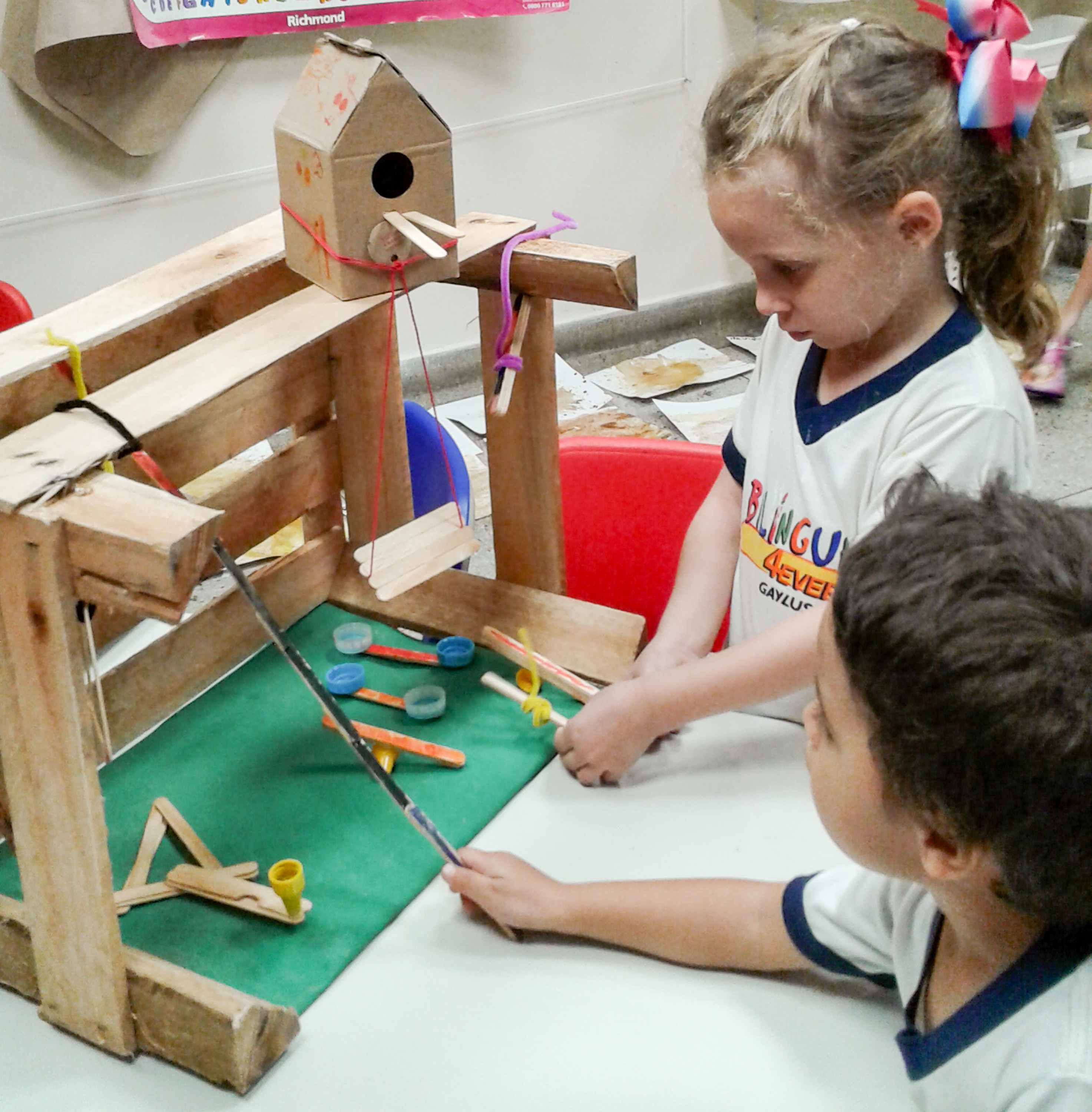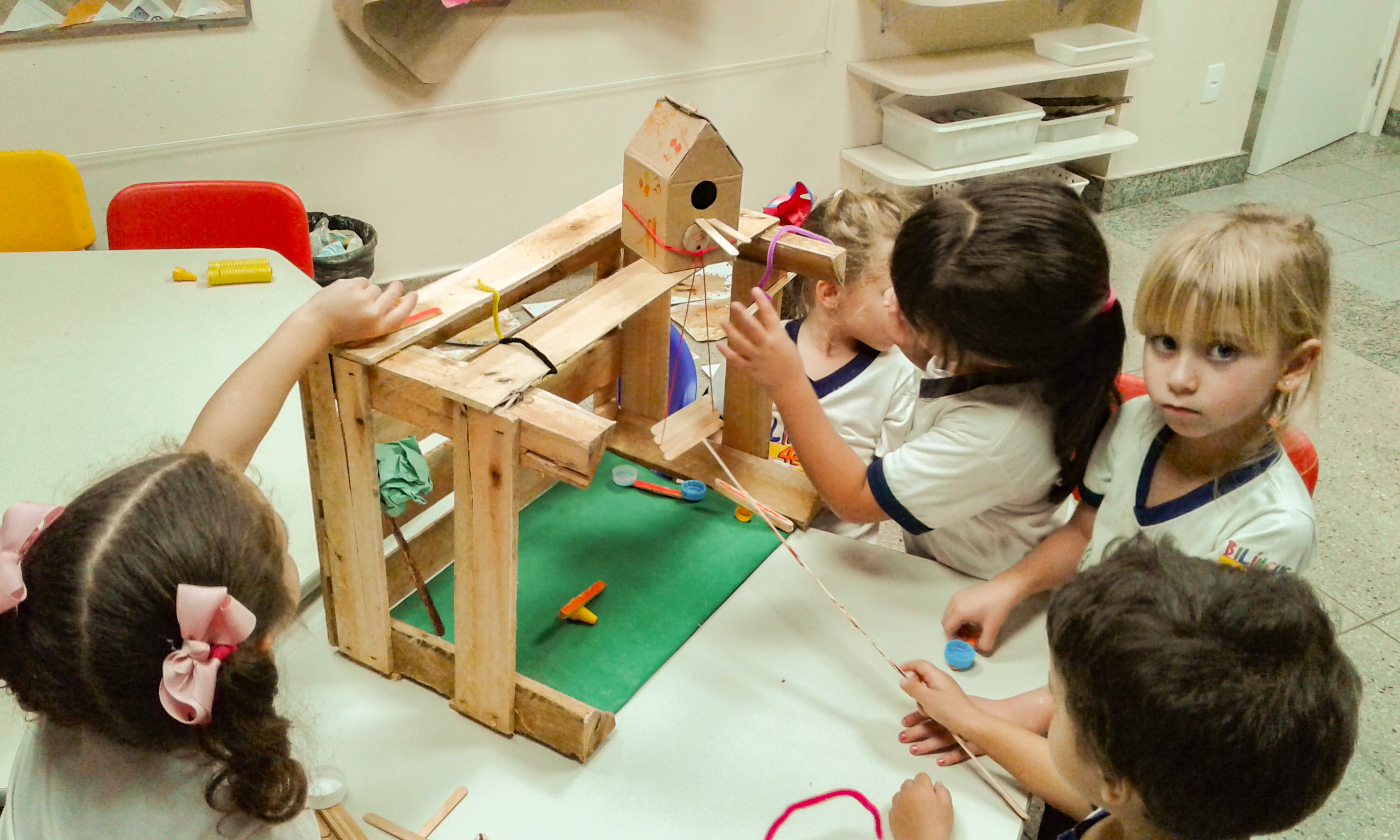 Os alunos debateram o que seria preciso: Crystian acreditava que eles precisavam de uma piscina; Augusto sugeriu uma casinha; Isabela Santos, um escorrega; Liz, um balanço e Valentina, uma cama. Com material reciclável e muita criatividade, os pequenos construíram um lindo parque para atrair e observar o canto das aves.
