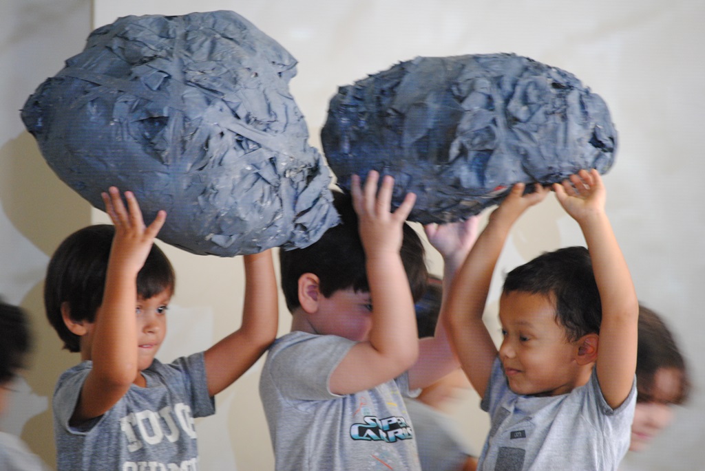 O Jardim 1 apresentou uma peça teatral que percorreu os temas do Clube “Terra viva, viva Terra”. O aluno Victor Pena relata: “Na apresentação, eu fui a rocha e levantei ela lá no alto. A gente fez a rocha com jornal e pintou de cinza!”. Já o Jardim 2 estudou os diversos tipos de energia: do corpo, eólica, solar e da água. A partir de poesias e músicas, compartilharam os aprendizados com os espectadores. Ana Moreira é mãe das alunas Letícia e Lorena, do Jardim 2, e se encantou com a apresentação: “Achei que foi lindo vê-las envolvidas e falando disso em casa. Sentimos que o tema foi ensinado de forma tão lúdica que elas se divertiram a todo o momento aprendendo”.