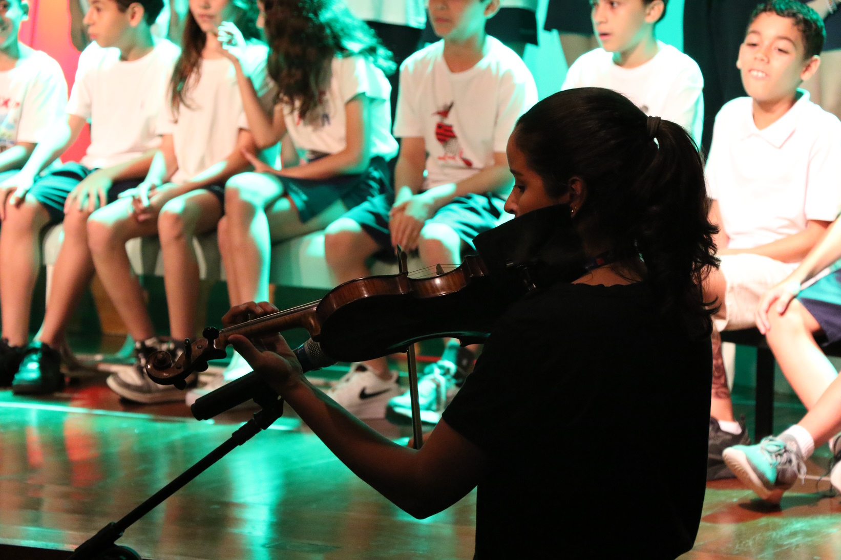 “Percebo que as crianças estavam na expectativa de se apresentar no Teatro e queriam que os pais vissem o que estavam aprendendo na escola. Os professores conseguiram apresentar às famílias não apenas a variedade do repertório musical aprendido – da música clássica, ao folclore e rock – mas também mostrar o desenvolvimento das linguagens, em um concerto musical multilíngue. A partir do 3º ano, o desenvolvimento de mais uma língua, o Espanhol, marcou a apresentação”, explica a Coordenadora do 3º ao 5º ano, Fernanda Benevento.