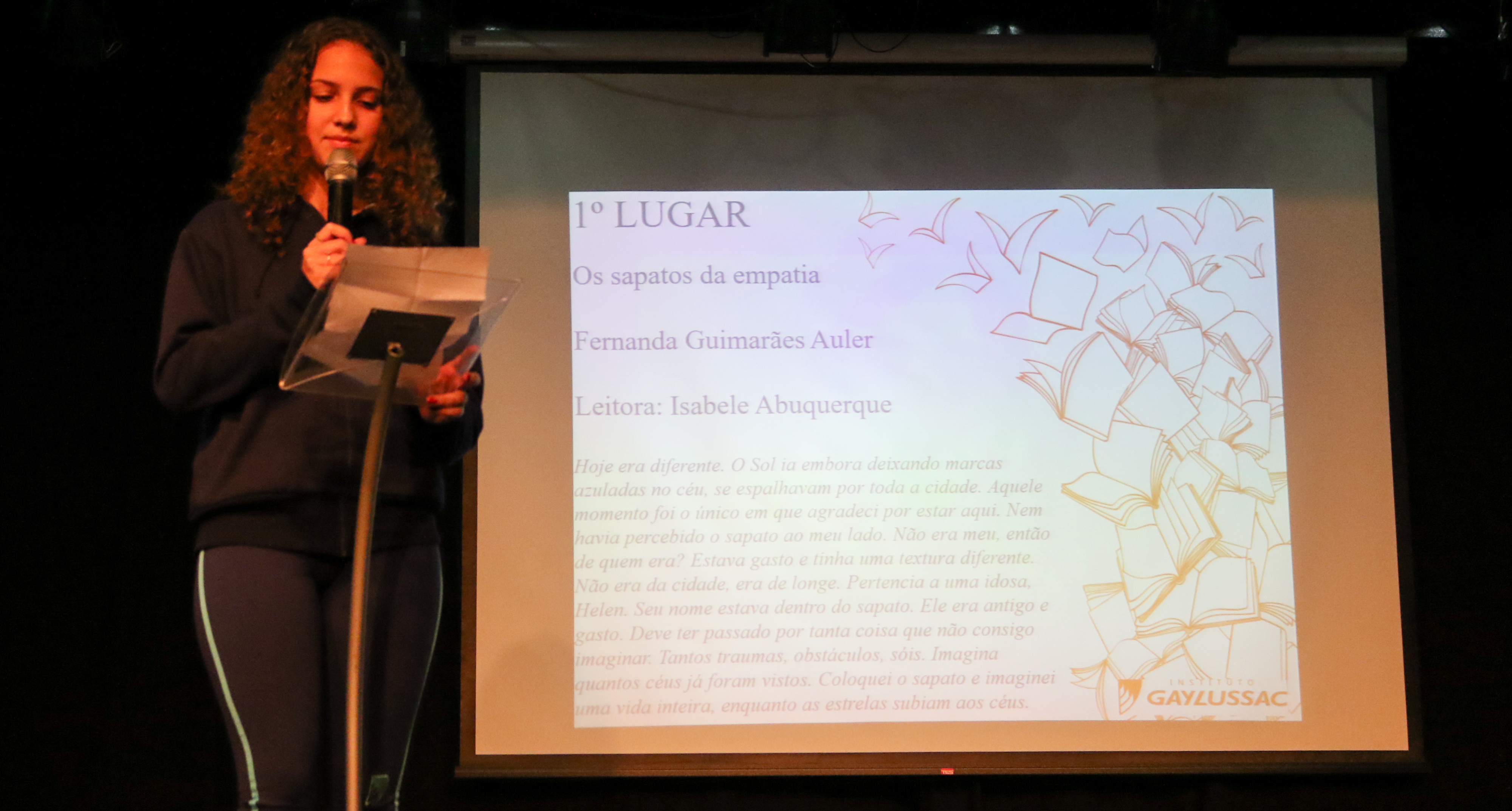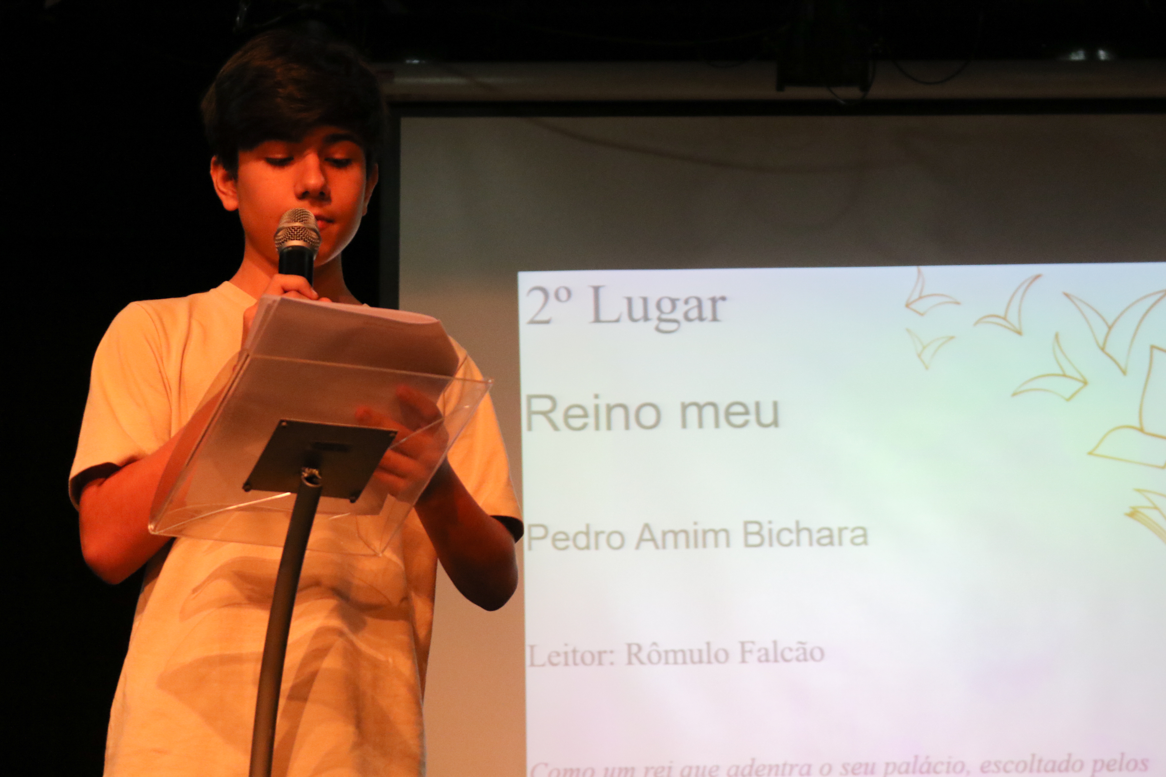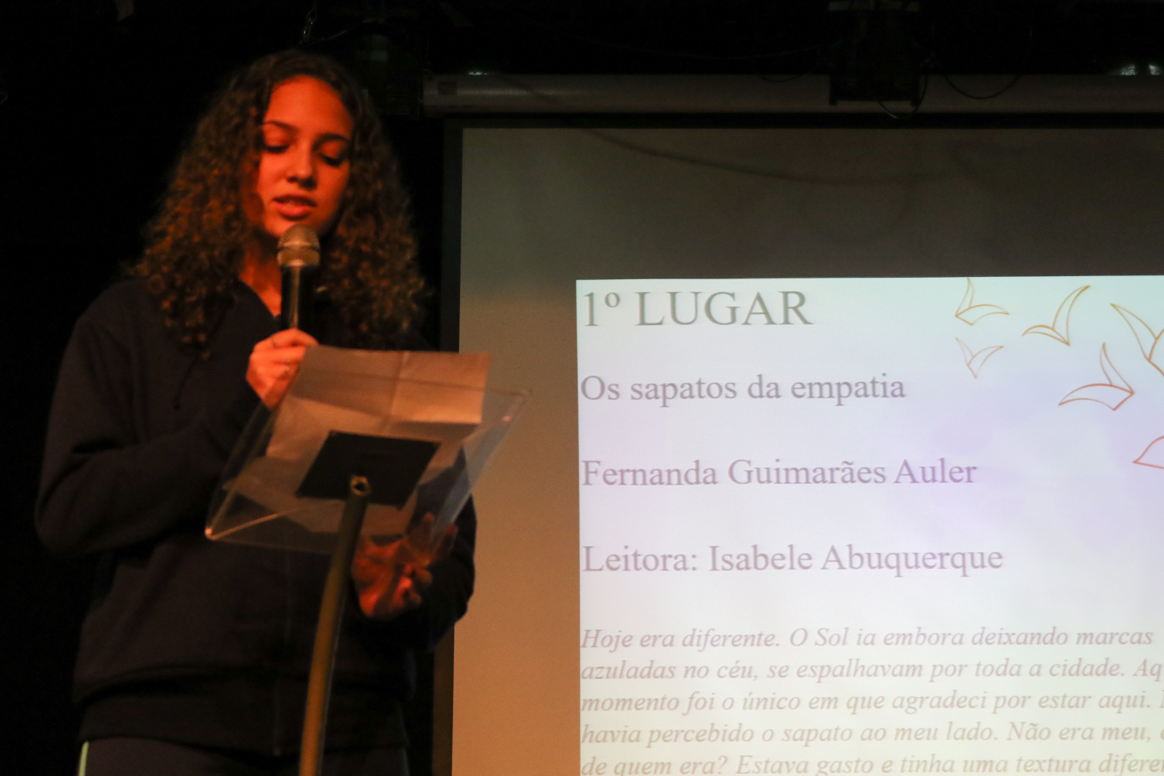 Antes de subir ao palco, receber o livro e o certificado dos familiares junto aos aplausos da plateia, o texto vencedor é lido para todos, a fim de que a obra seja conhecida. O orador escolhido não é o autor, é o amigo que narra as palavras escritas com emoção.