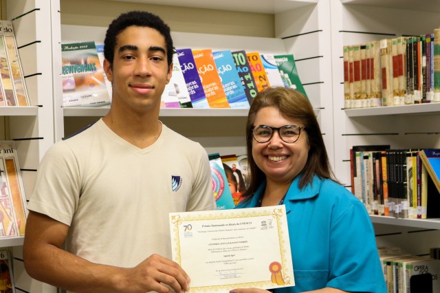 Em 2018, o documento mais traduzido do mundo, a declaração dos Direitos Humanos, completa 70 anos. Para celebrar essa data, a ONU-UNESCO criou o concurso de redação e artes plásticas para que alunos do Ensino Médio e Fundamental, pudessem ter uma oportunidade de reflexão sobre as principais transformações e novos desafios que os direitos humanos enfrentam atualmente. Ao fim de longos meses de seleção, o aluno Leonardo Saint’ Clair recebeu a premiação de 2º Lugar na disputa regional, representando a escola com o texto “Filhos da Luta”.
