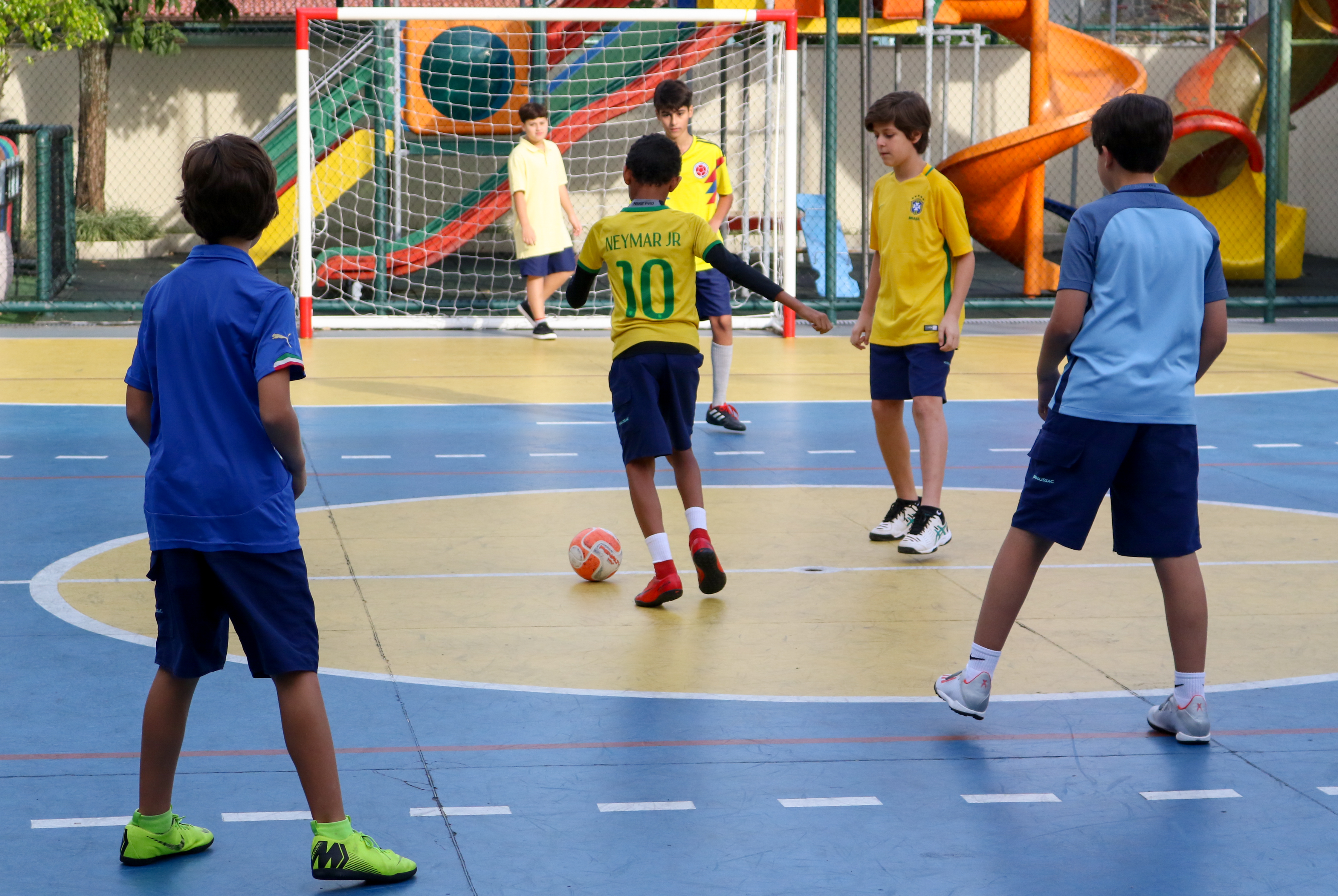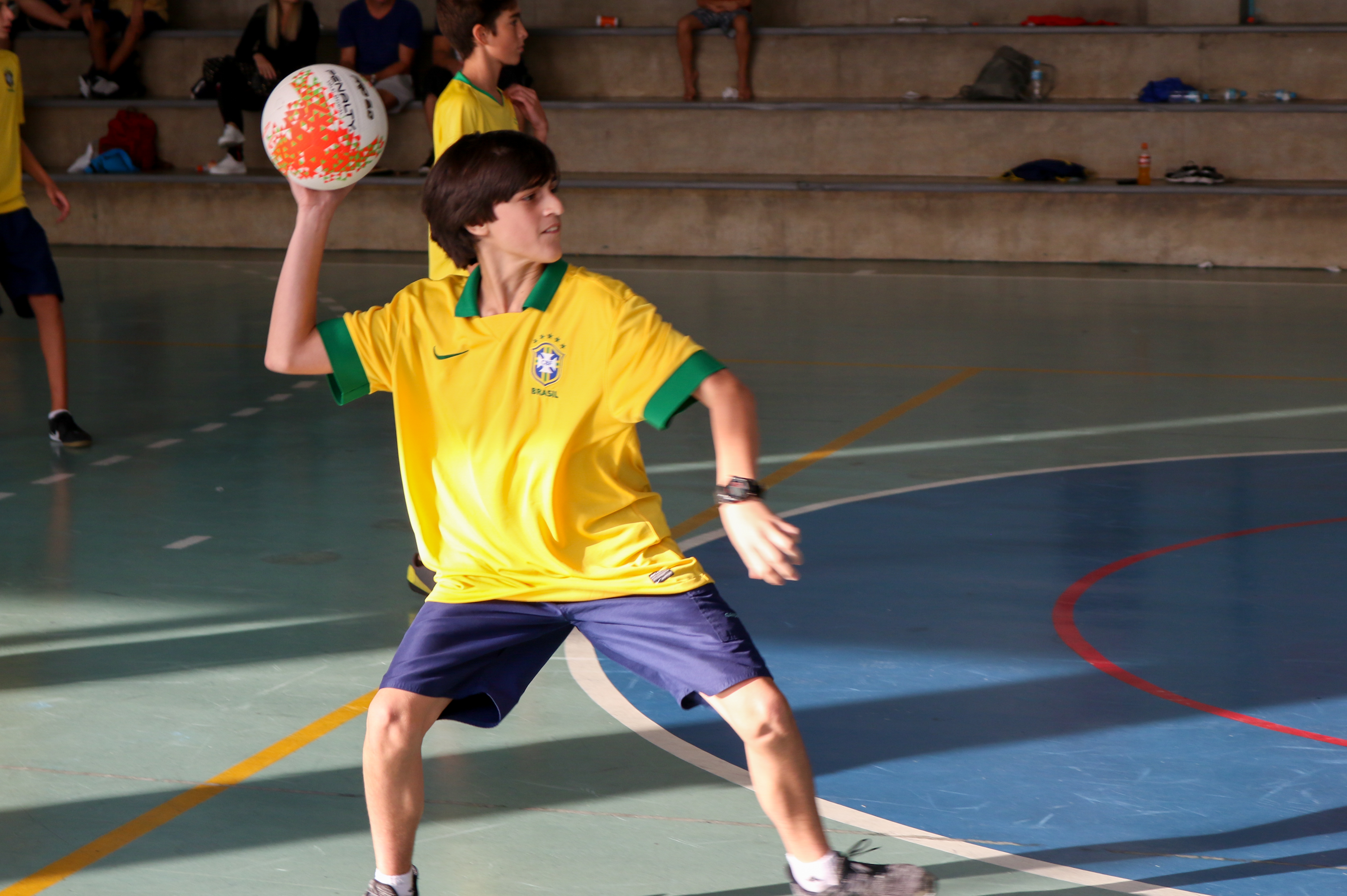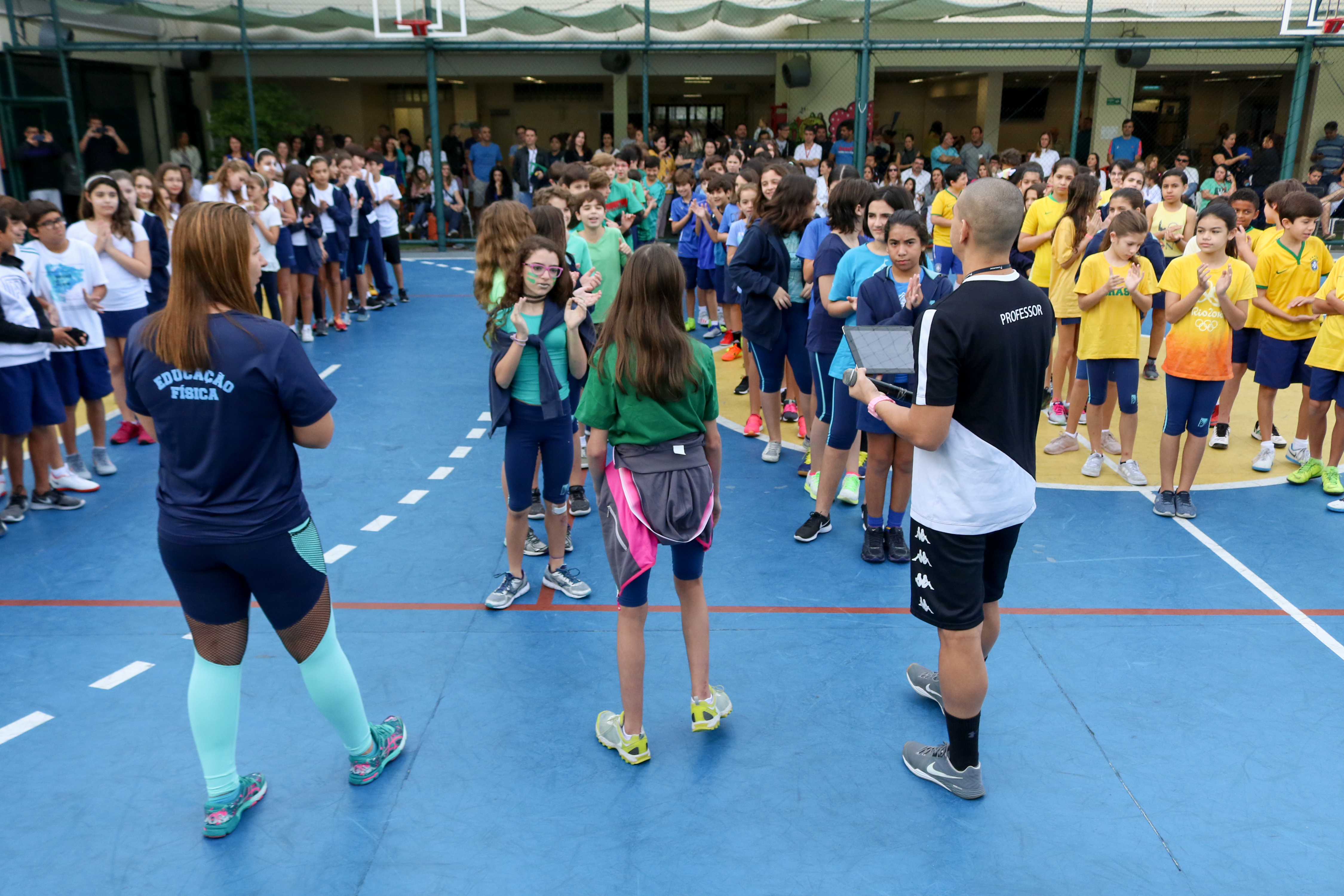 Na olimpíada, as cores da bandeira brasileira coloriram as quadras interna e externa com jogos de futebol e handebol. O aluno Nicolas Paes, 7M2, participou da competição e explica: “A olimpíada é um momento para que as turmas possam se conhecer e compartilhar do espírito esportivo. É muito bacana os pais poderem vir assistir aos jogos, pois é um incentivo e uma oportunidade de estarem junto com a gente”.