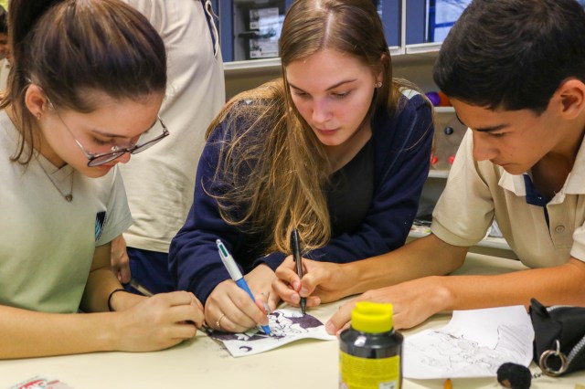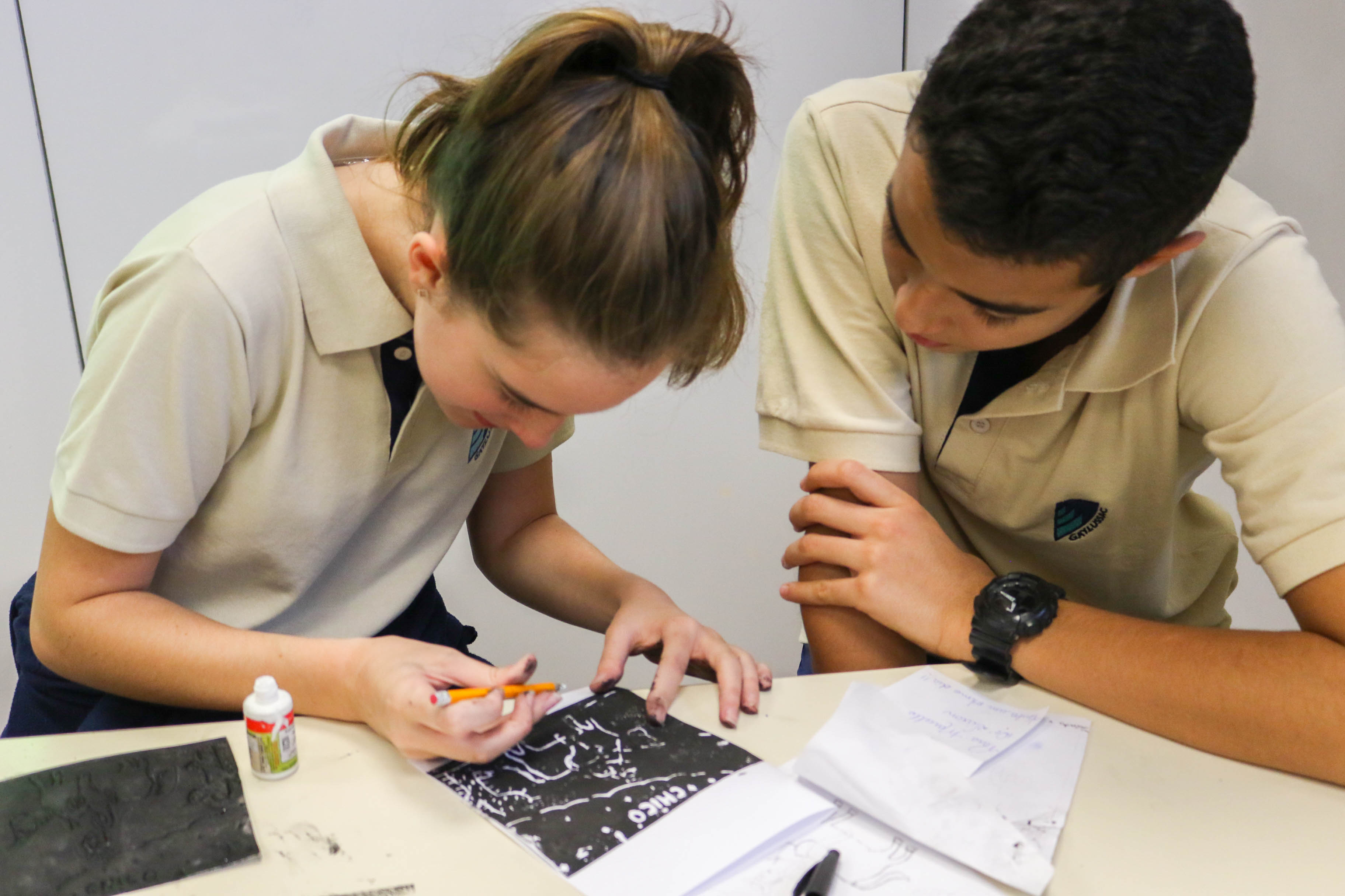 Através das críticas e estéticas presentes na leitura da obra de Ariano Suassuna, em julho, os alunos da 1ª série do Ensino Médio finalizaram o projeto Literário “O cordel da compadecida” com a construção de cordéis contemporâneos. Utilizando a estrutura de métricas e xilogravuras, o projeto que envolveu as professoras Deborah Afonso, de Arte, e Nathalie Verc, de Literatura, convidou os alunos a mergulhar na cultura do sertão nordestino.