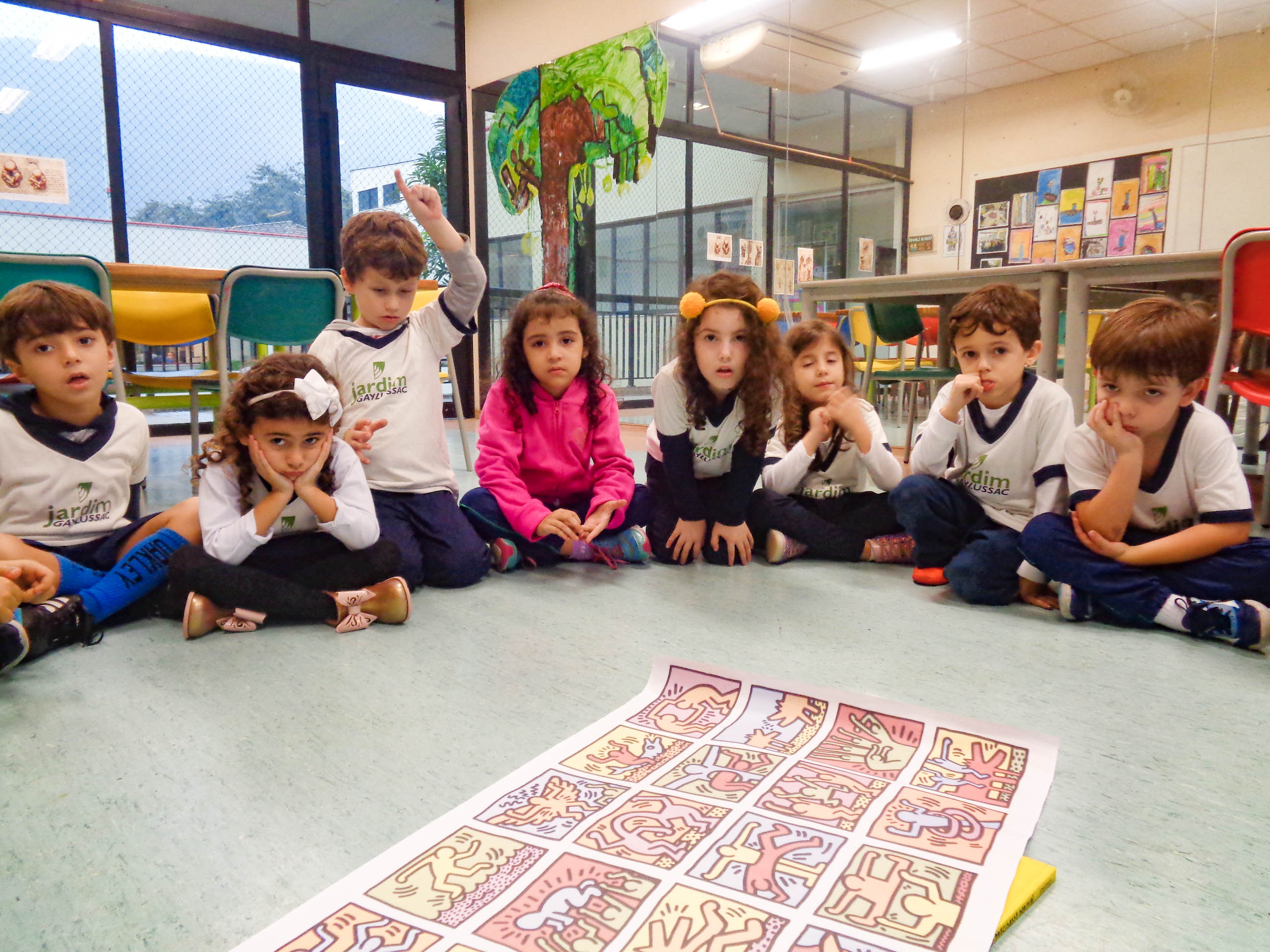Amante dos desenhos animados, do grafite e da pop art, na década de 1980, Haring torna-se inovador ao inspirar-se nesses estilos: “Em seu trabalho podemos ver a supremacia da linha, que guia e gera todo ele. É um estudo grandioso sobre cor, figura humana, movimento, diversidade e arte urbana. Assim, criamos obras que falam sobre as relações humanas e movimentos do corpo, tema muito presente nas criações de Haring”,explica a professora Gabriela Veloso, de Arte.