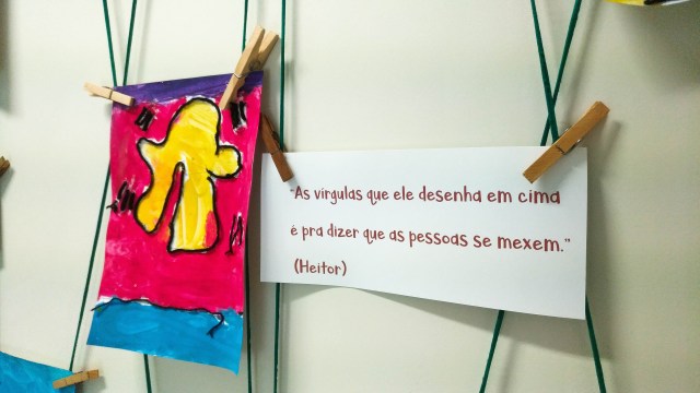 O contato com a nova forma de arte inspirou os alunos a produzirem suas próprias obras cheias de movimentos: “As vírgulas que ele desenha em cima é para dizer que as pessoas se mexem”, conta Heitor Bittar, da J3T3.