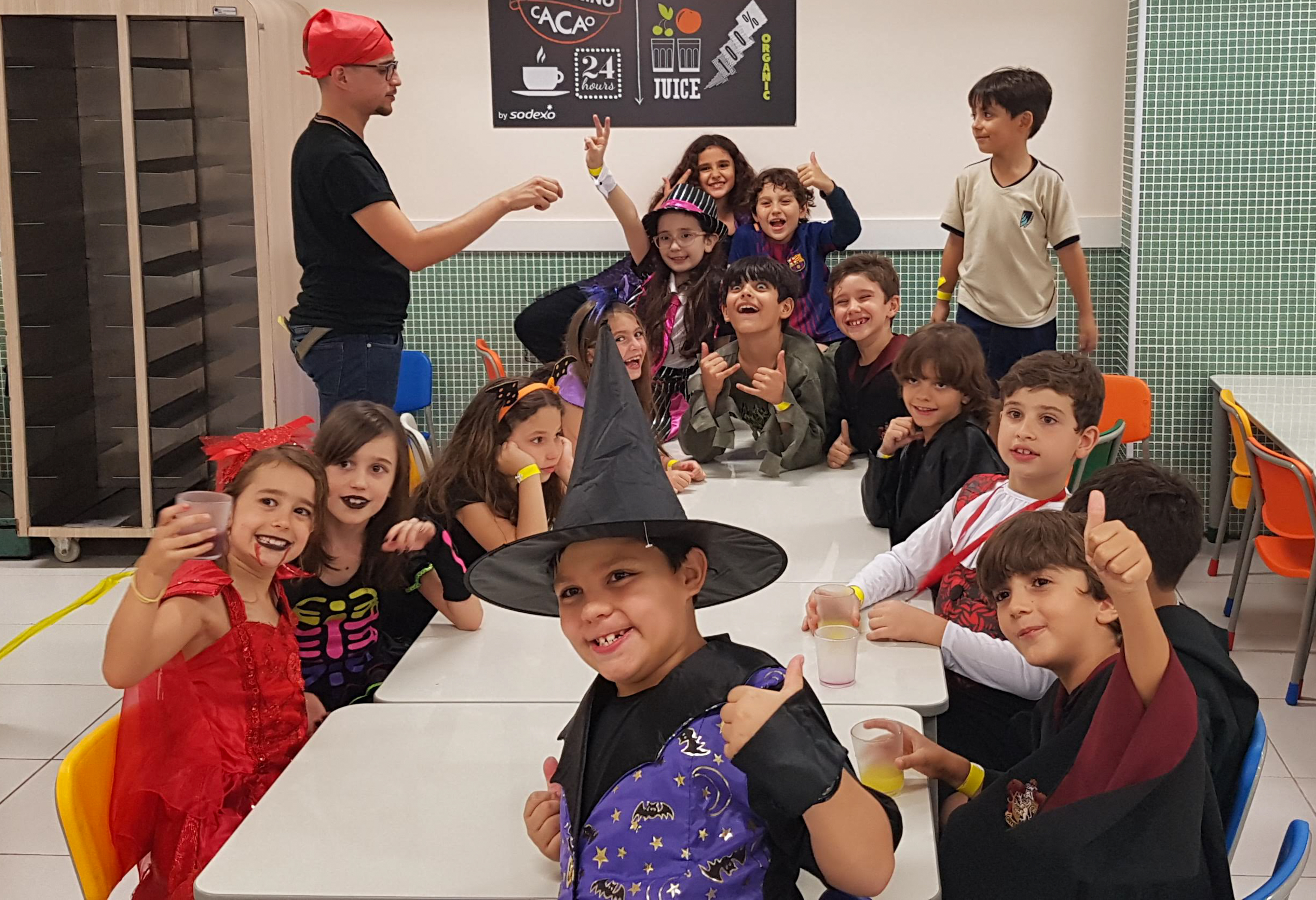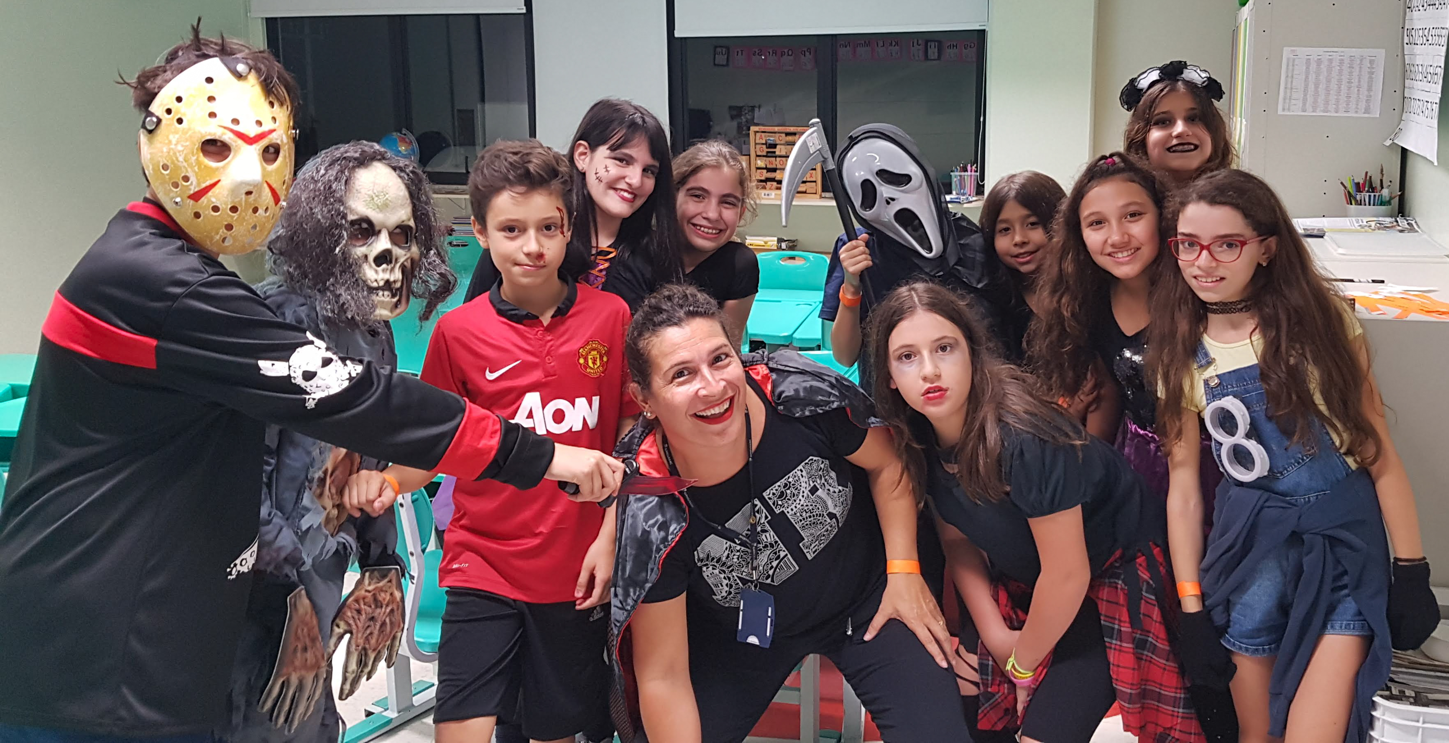 Para animar ainda mais a festa, os alunos vivenciaram atividades como: Dancing with the stars para mexerem o esqueleto e cantarem no ritmo, Fashion Show para apresentarem suas fantasias, Flashlight Dodgeball, Art Class: Arts and Crafts para expressarem seu talento, e Snacks and Appetizers para reabastecerem as energias.