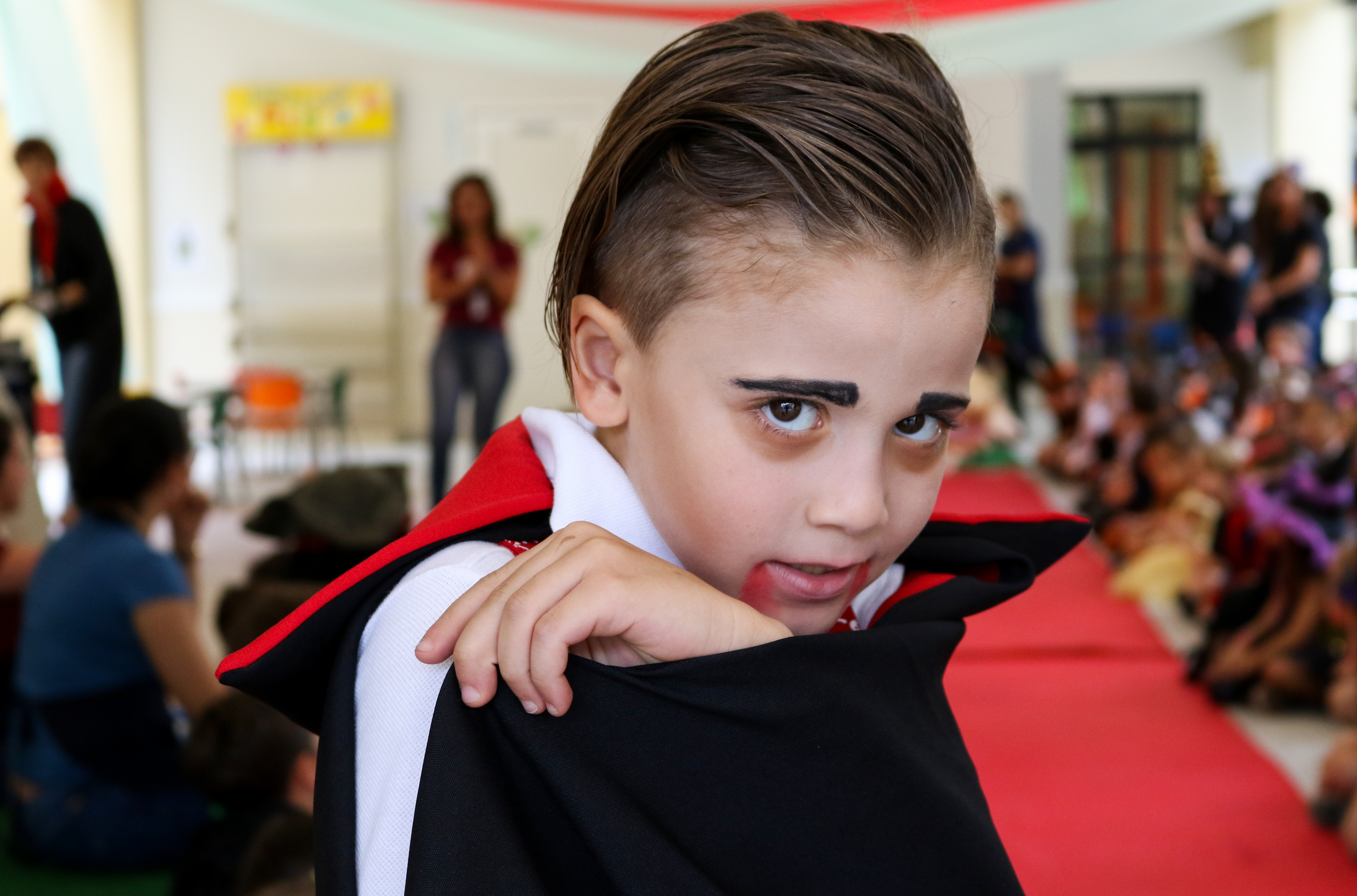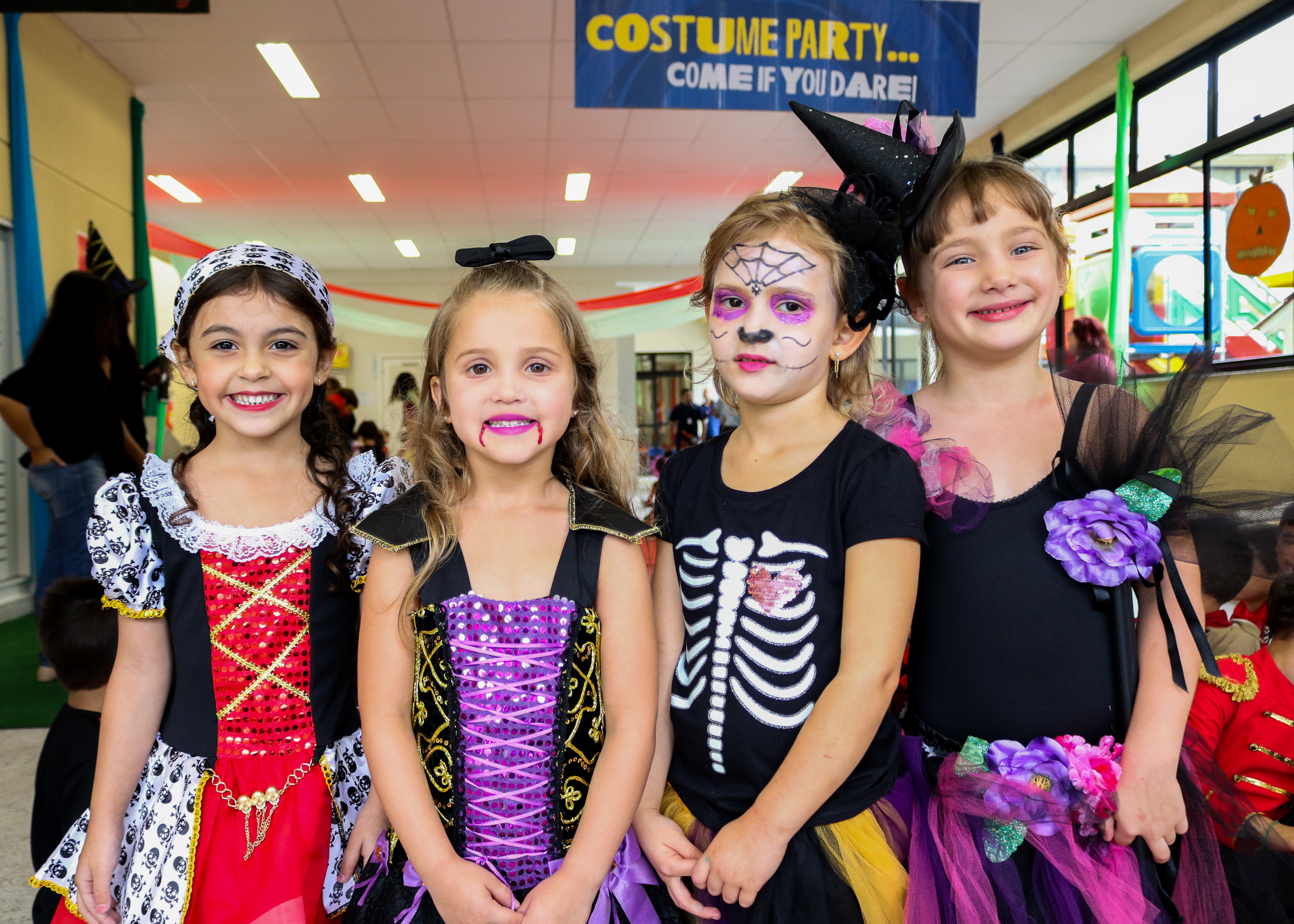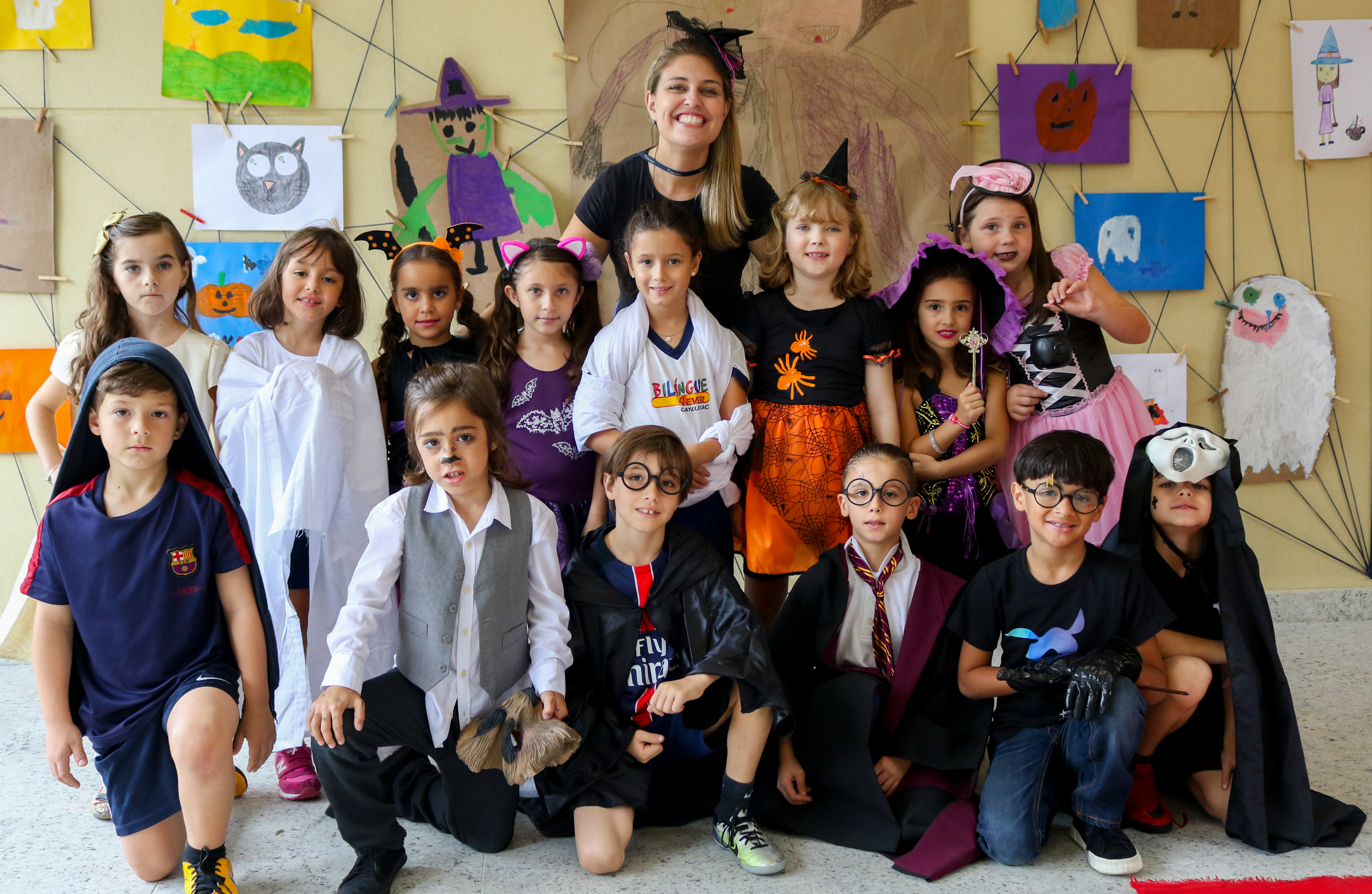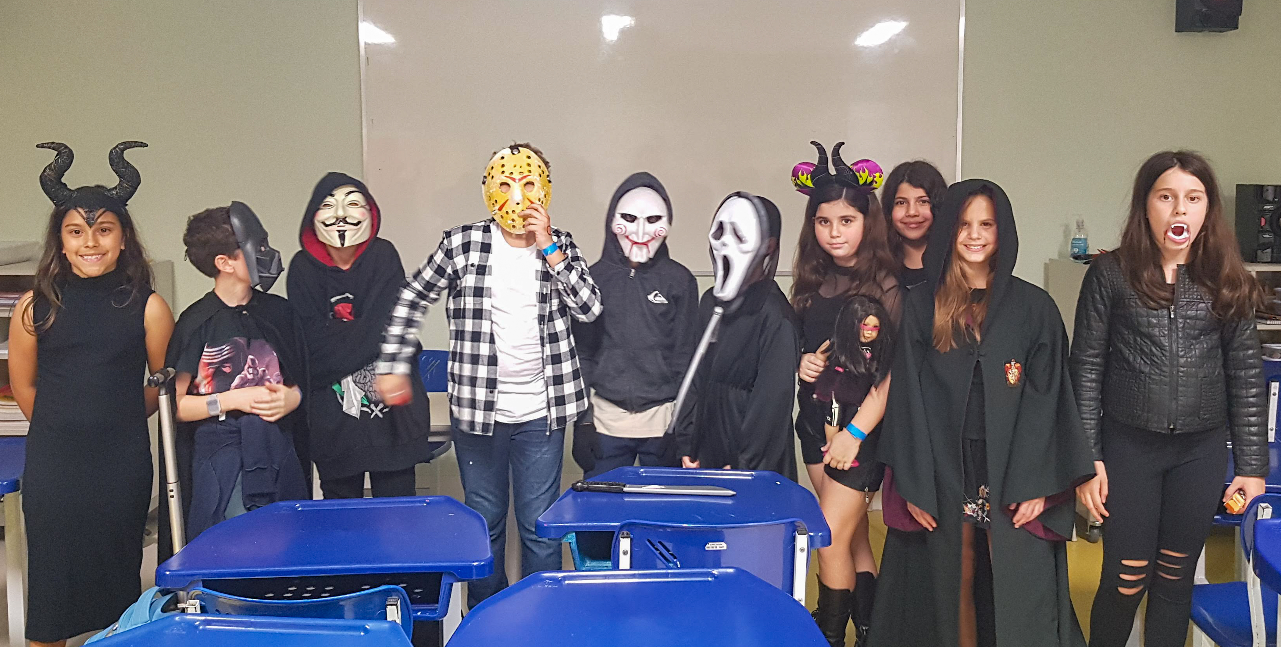 Caveiras, bruxas, vampiros e fantasmas saíram de profundezas para invadirem o Projeto Bilíngue, na Costume Party 2018. Em outubro, o Halloween, a festa mais tradicional da língua inglesa, foi celebrada em duas partes pelas turmas. Durante a manhã, a diversão ficou por conta de quem ainda dava os primeiros passos no bilinguismo, a Educação infantil e 1º ano. À noite, foi a vez do 2º ao 5º ano do Ensino Fundamental aproveitarem o momento. Fantasias, doces e travessuras fizeram parte dessa Costume Party que também convidou colegas não participantes do Projeto Bilíngue, para experimentarem a vivência.