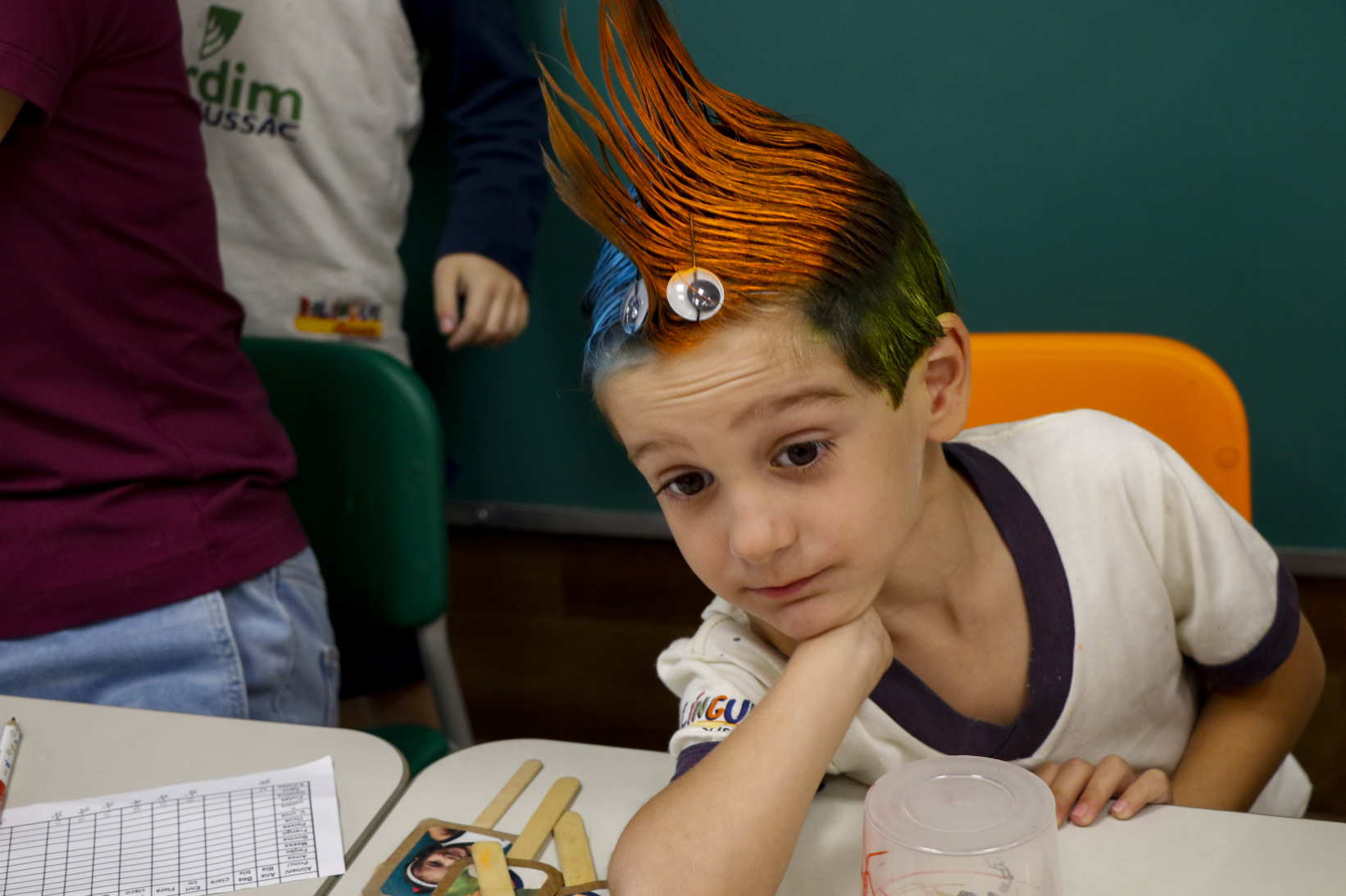Assim, dialogando com as propostas pedagógicas, nossos alunos do Projeto tiveram um dia especial: baseada no livro “Crazy Hair”, de Neil Gaiman, a proposta do Crazy Hair Day era soltar a imaginação ao decorar os cabelos com adereços divertidos, incentivando não só a criatividade, mas também o respeito às diferenças e a prática da Língua Inglesa de forma lúdica.