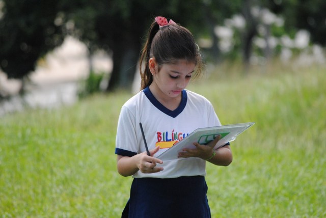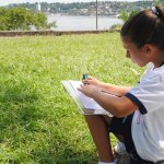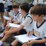 Após a atividade, os alunos escreveram um report contando sobre a saída e os aspectos observados: “We went to Parque Anchieta. There we can see the view from Niteroi. We can see the bay and the mountains. We can see Christ, the Redeemer and we drew the beautiful view. There were many boats on the water and a paragliding in the air. We saw a helicopter also. There are many ants in Parque Anchieta. They are very strong, they can carry big leaves. The sky was blue but there were clouds. In Niteroi there is Baía de Guanabara and in Cardiff there is a bay too, Cardiff bay.”