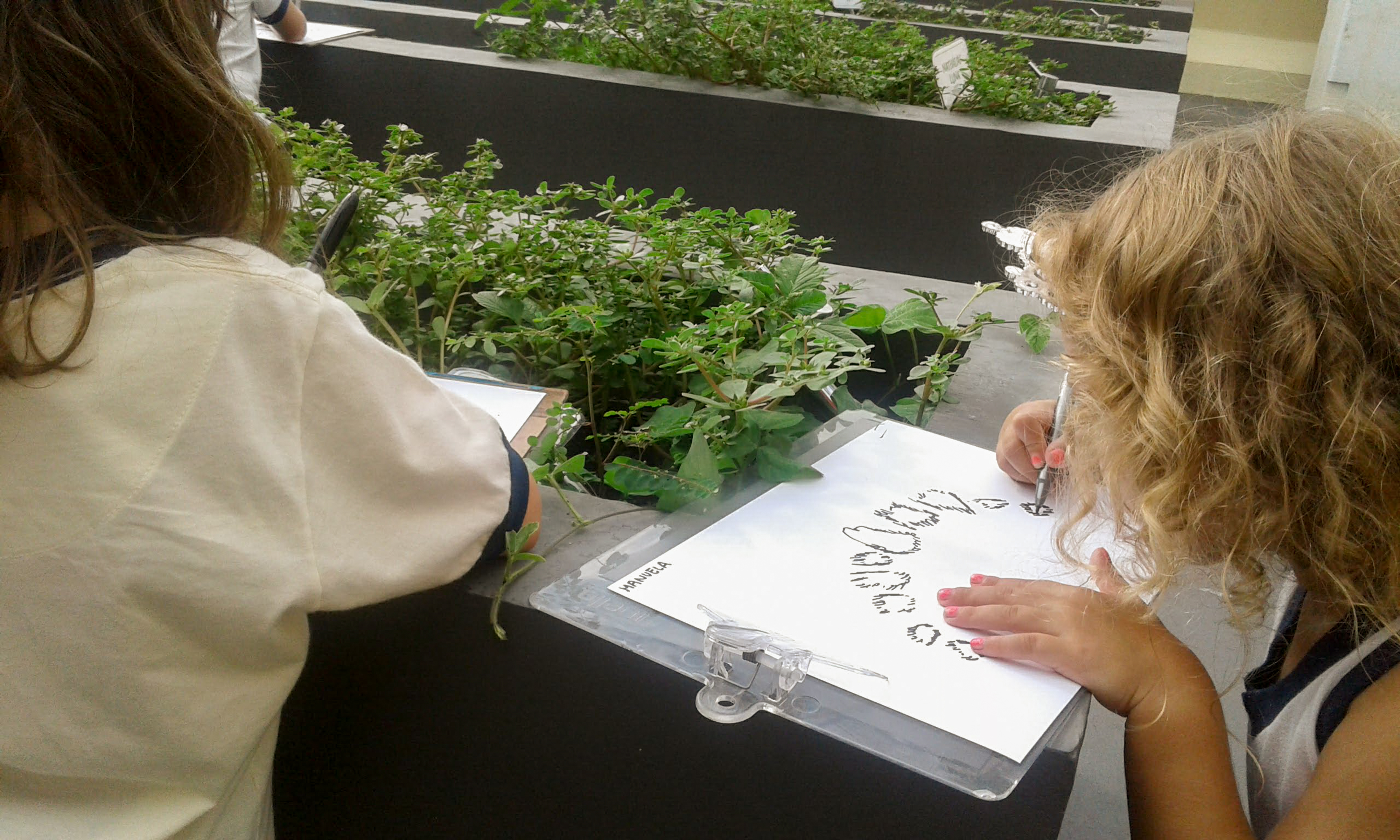 “Como está a nossa horta?”, indagou Bernardo Moreira, da J2T1. Na volta às aulas, a turma J2T1 foi até a horta e percebeu que ali havia crescido muitas plantas diferentes. Depois de tocar, sentir o cheiro e observar atentamente cada detalhe, descobriram que aquelas plantas não eram comestíveis, que ninguém as havia plantado e que foram germinadas durante as férias. Após as constatações, os alunos discutiram que tipos de alimentos poderiam existir ali. Eles contam: “Alimentos de comer! Verdura, legumes, temperos… Fruta que nasce em árvore grande não dá”.
